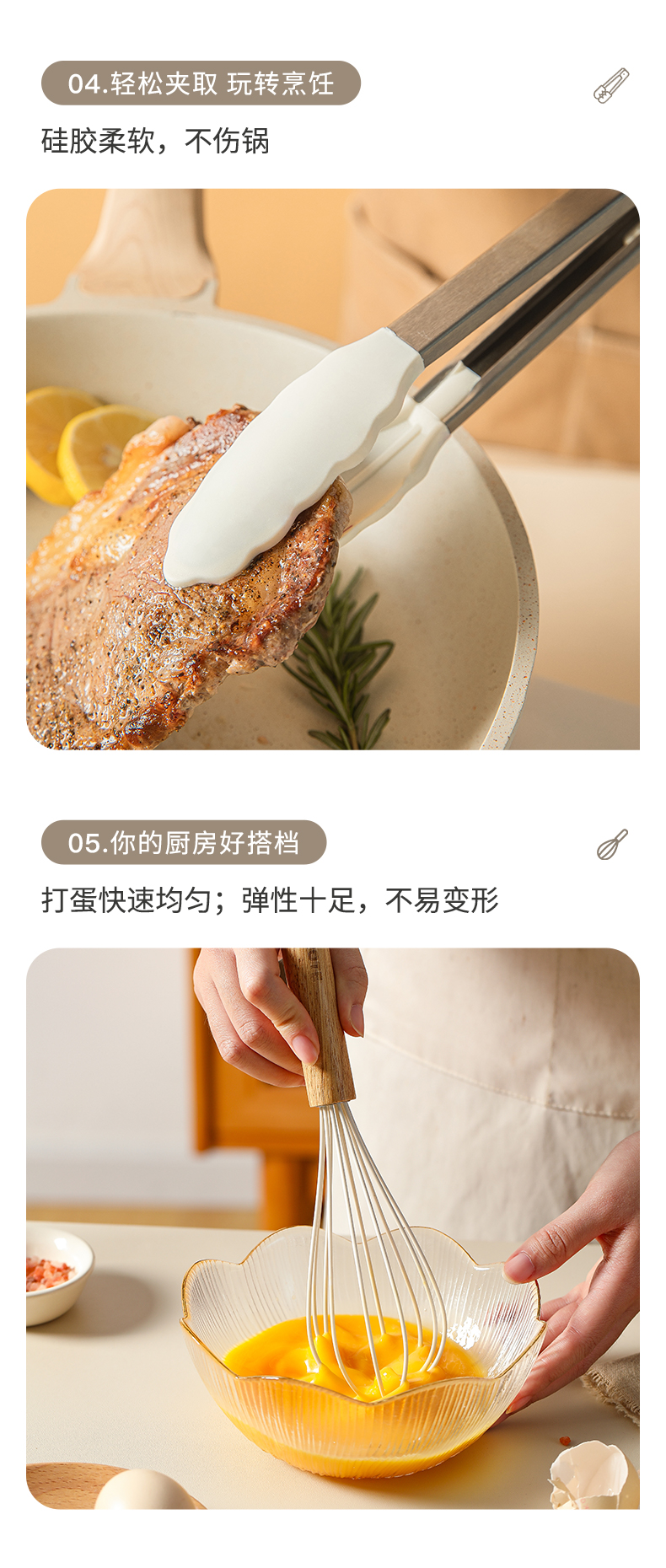 • 나무 손잡이가 달린 실리콘 주걱(흰색)