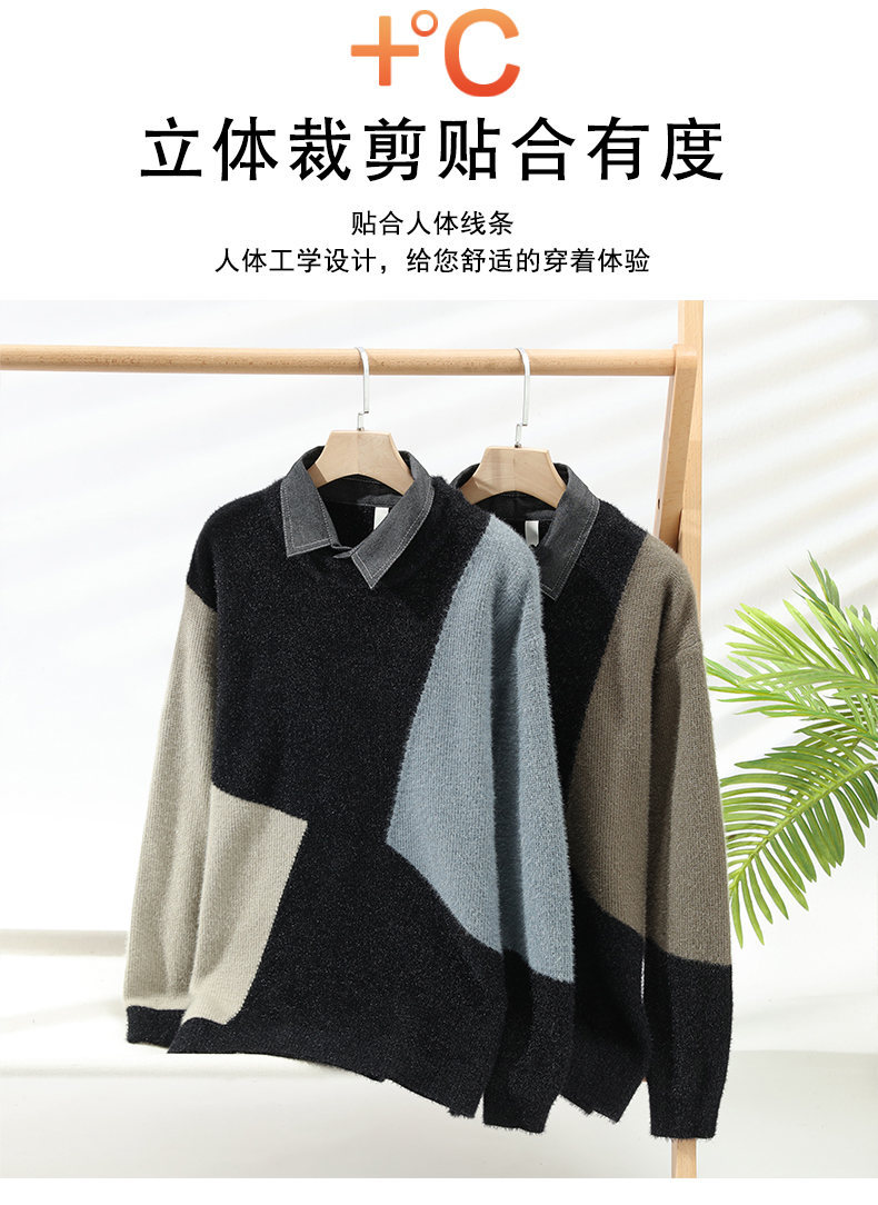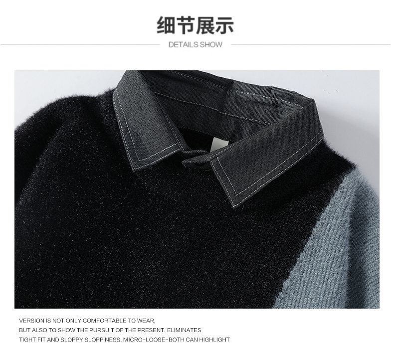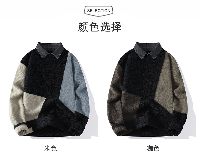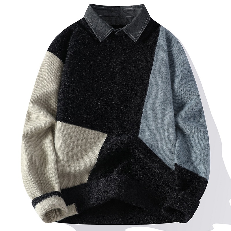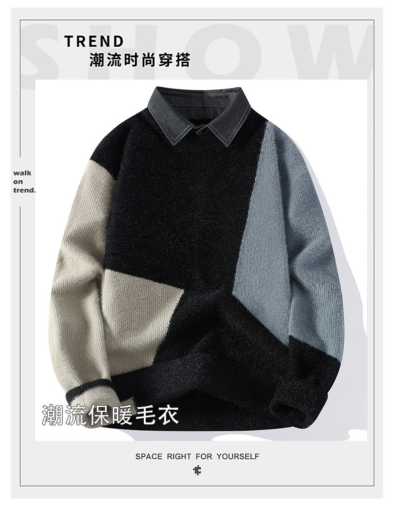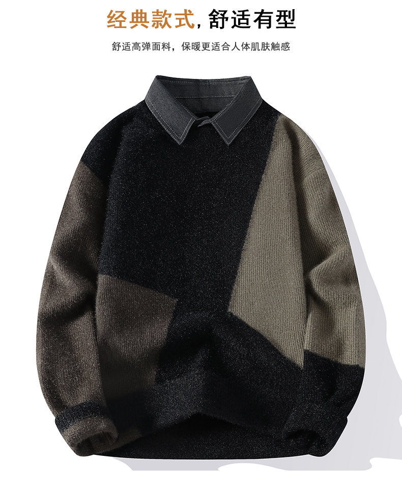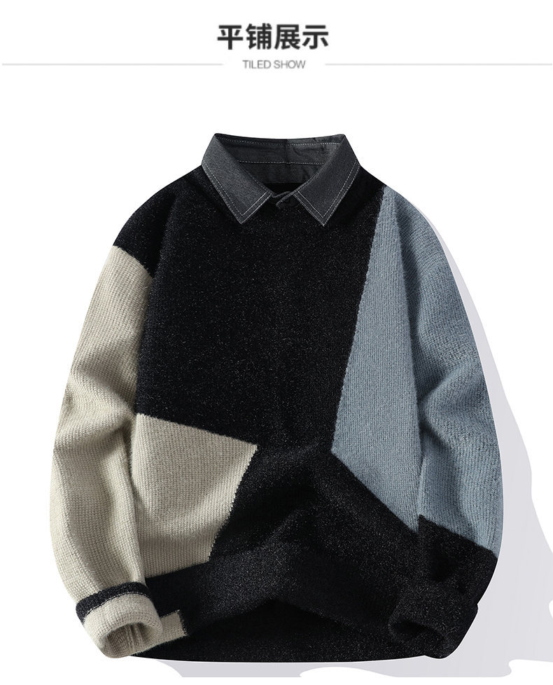 국경 간 대외 무역 세대 AliExpress 폭발 남성 스웨터 캐주얼 가짜 두 셔츠 칼라 풀오버 스웨터 가을과 겨울스토어 가기