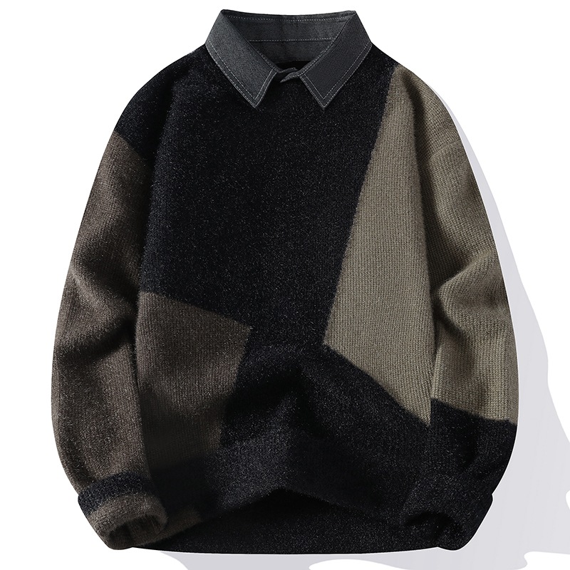국경 간 대외 무역 세대 AliExpress 폭발 남성 스웨터 캐주얼 가짜 두 셔츠 칼라 풀오버 스웨터 가을과 겨울