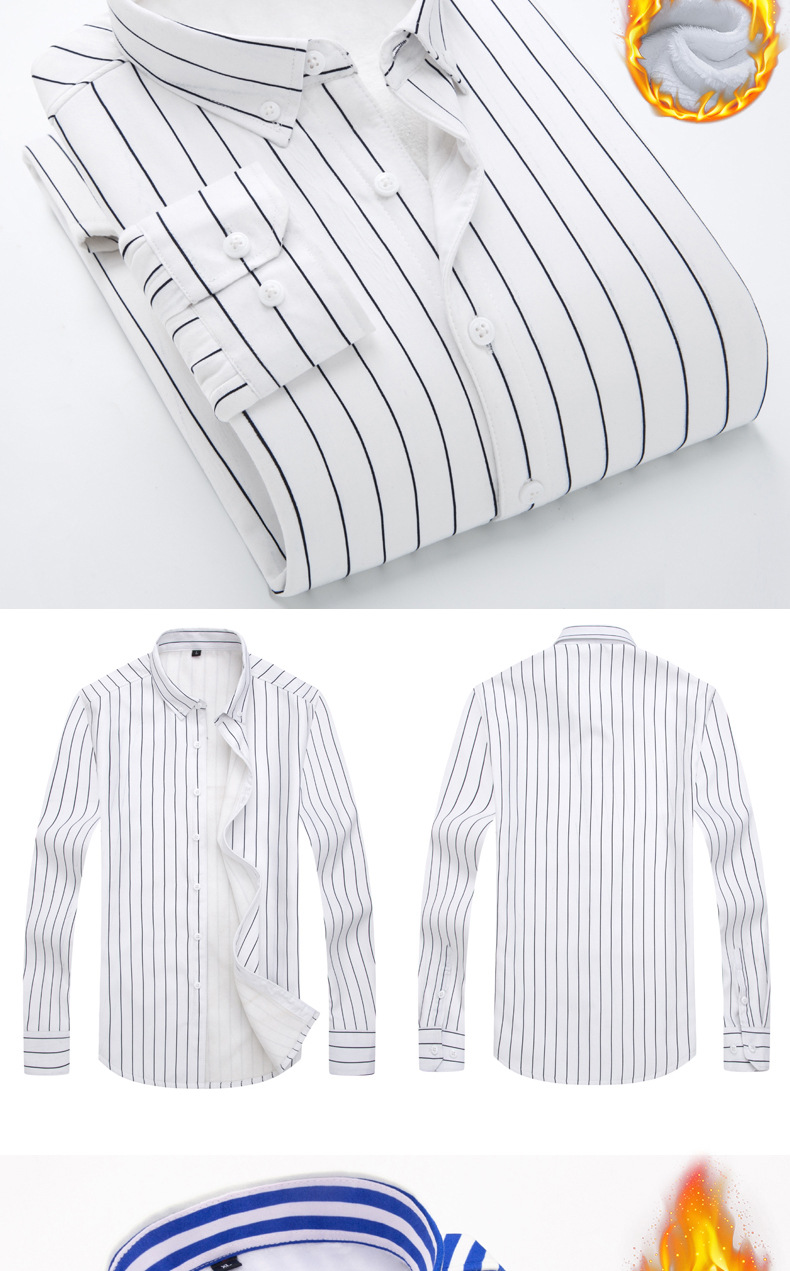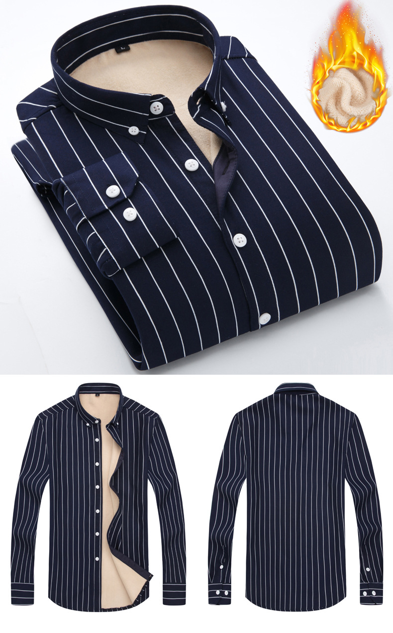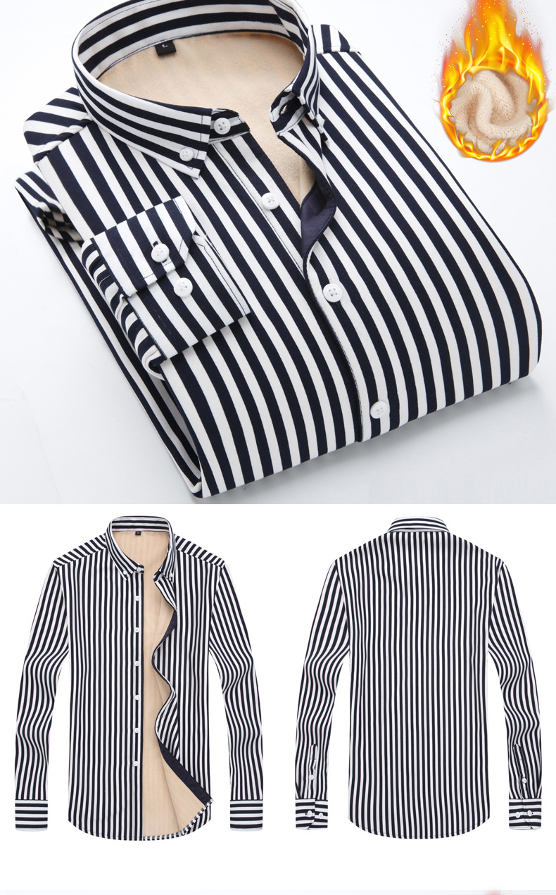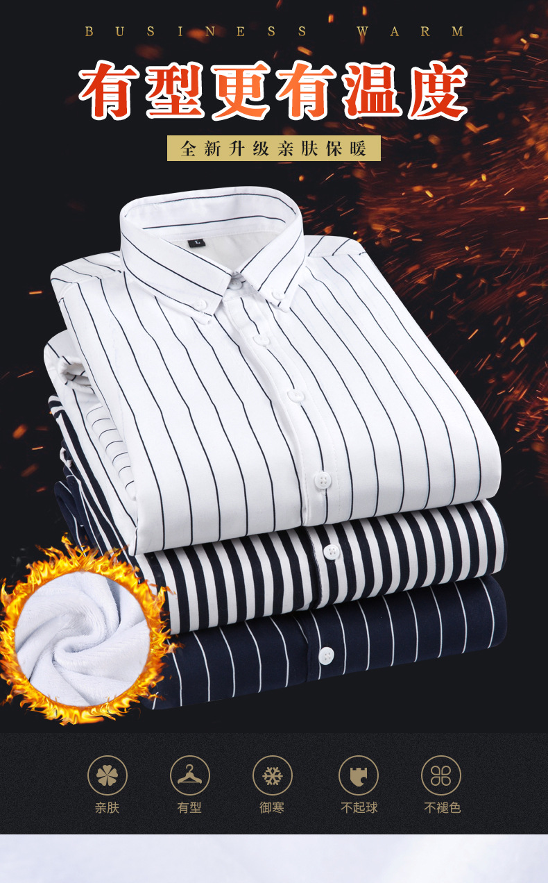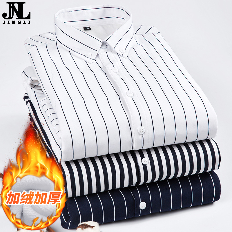 남성용 기모 셔츠 따뜻한 긴팔베이스 셔츠 유행 줄무늬 슬림핏 최고 비즈니스 통근 두꺼운 셔츠