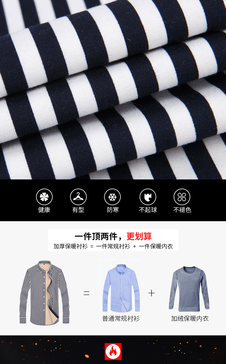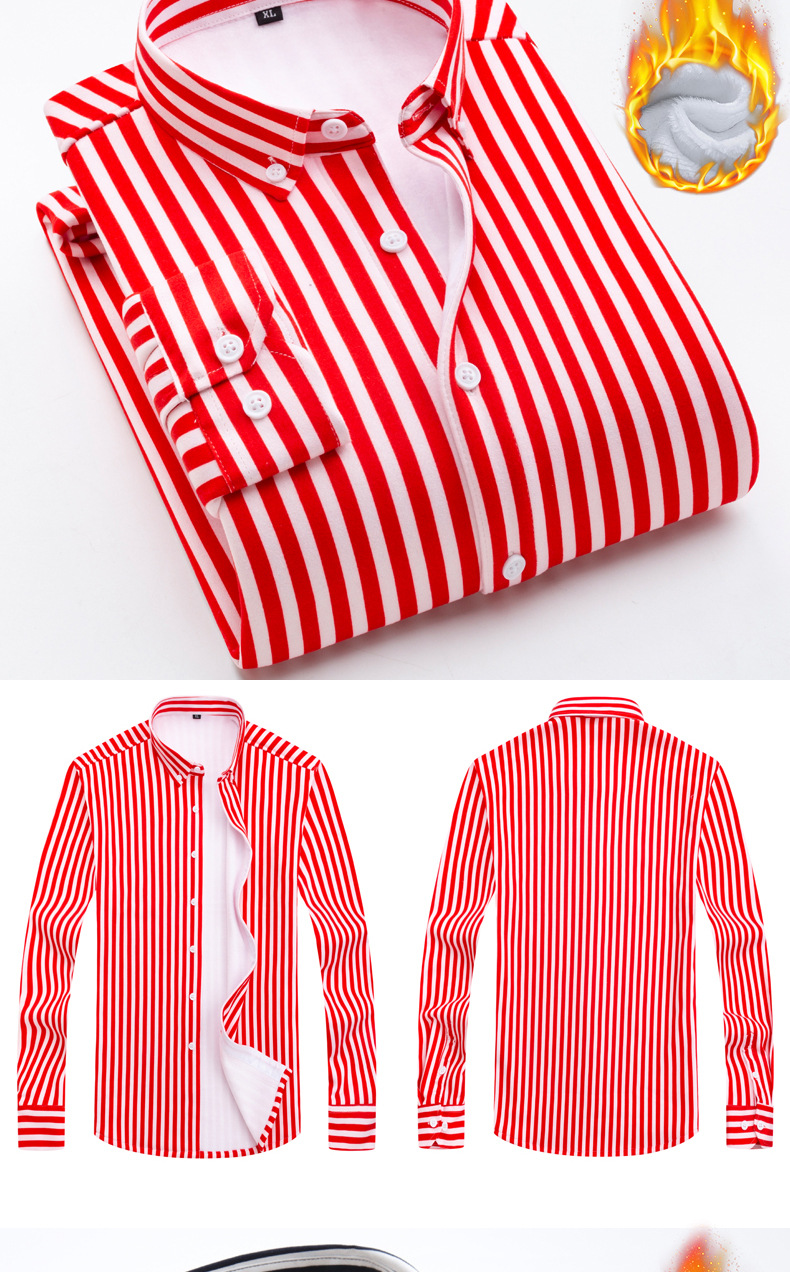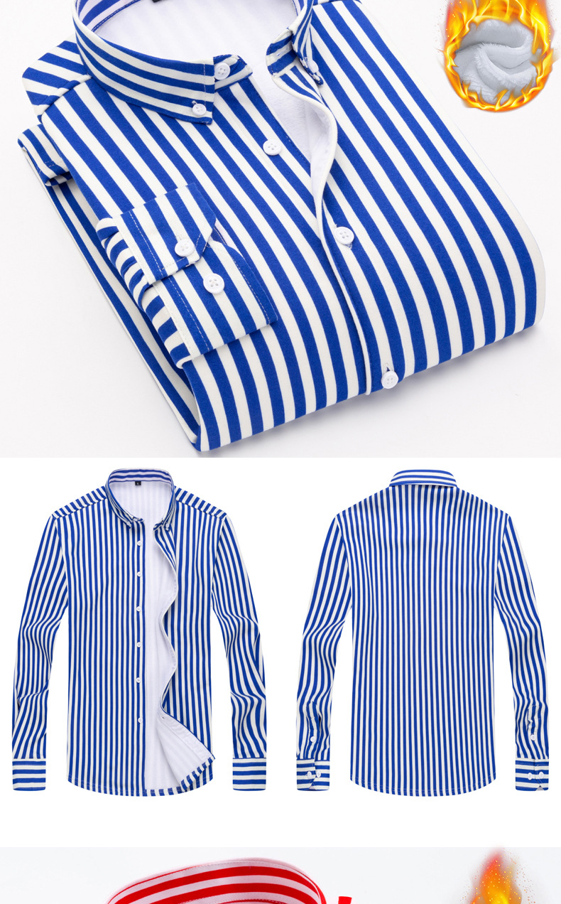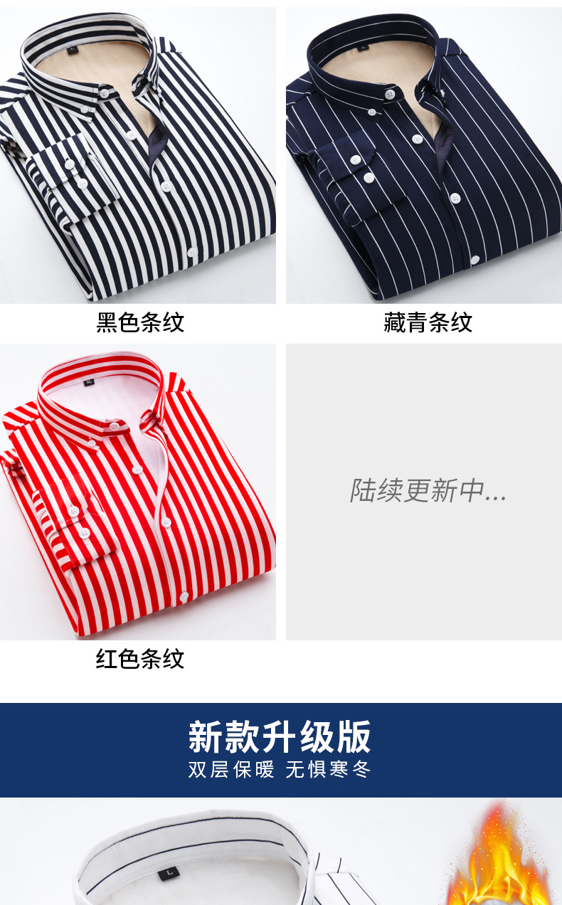 남성용 기모 셔츠 따뜻한 긴팔베이스 셔츠 유행 줄무늬 슬림핏 최고 비즈니스 통근 두꺼운 셔츠