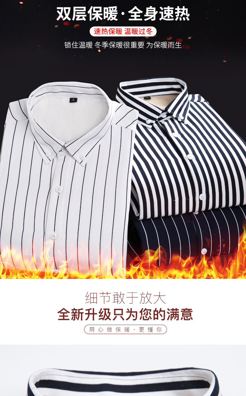 가을 겨울 남성용 두꺼운 셔츠 플리스 안감 긴팔 이너웨어 트렌디한 스트라이프 슬림핏 상의 비즈니스 출퇴근 셔츠스토어 가기