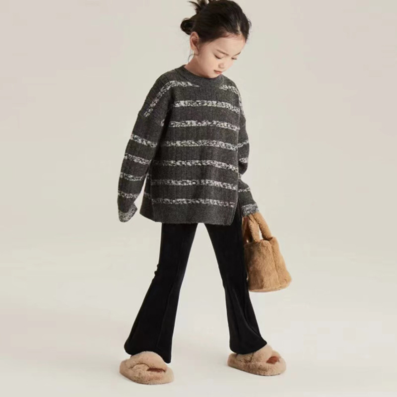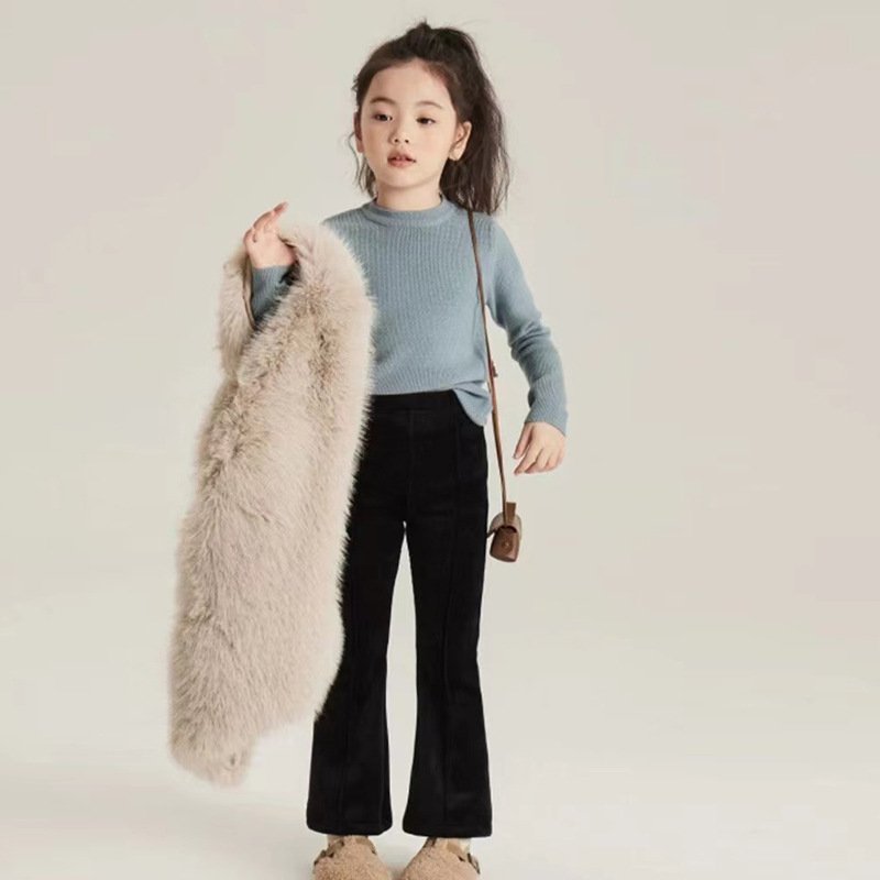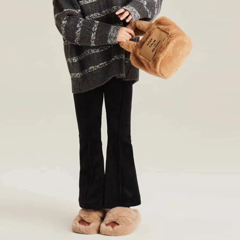 소녀 바지 봄과 가을 외부 착용 마이크로 플레어 바지 2024 새로운 어린이 캐주얼 바지 외국 스타일 슬리밍 높은 허리 유행 바지스토어 가기