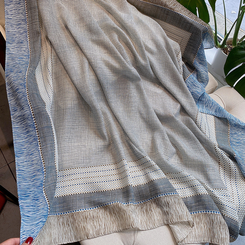 작은 격자 무늬 리넨 스카프 여성 여름 2024 새로운 선 스크린 대형 스퀘어 얇은 실크 스카프 에어컨이 설치된 방 외부 목도리