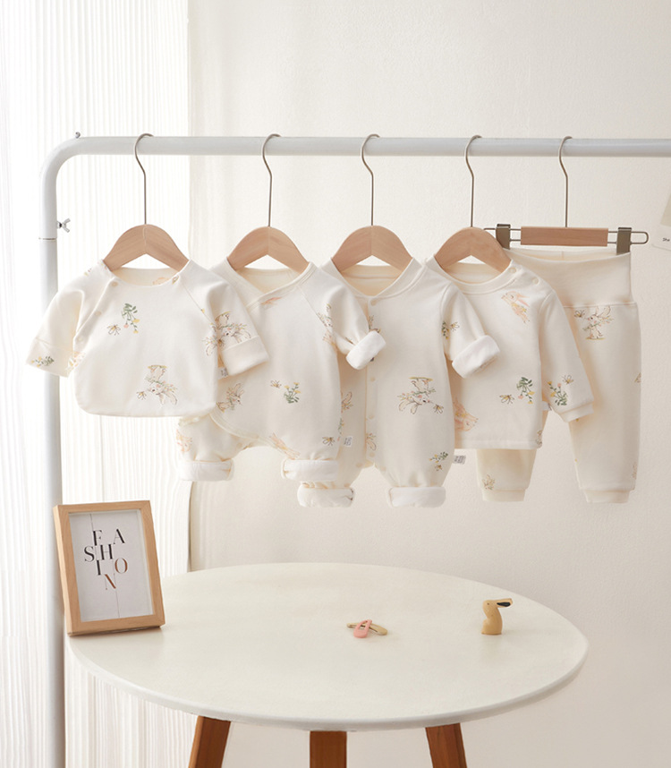 어린이 속옷 세트 퀼트 소년의 얇은 면 가을 옷 아기의 높은 허리 따뜻한 집 옷 어깨 열려있는 아기 옷