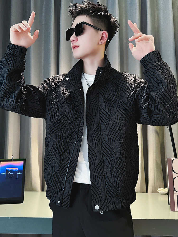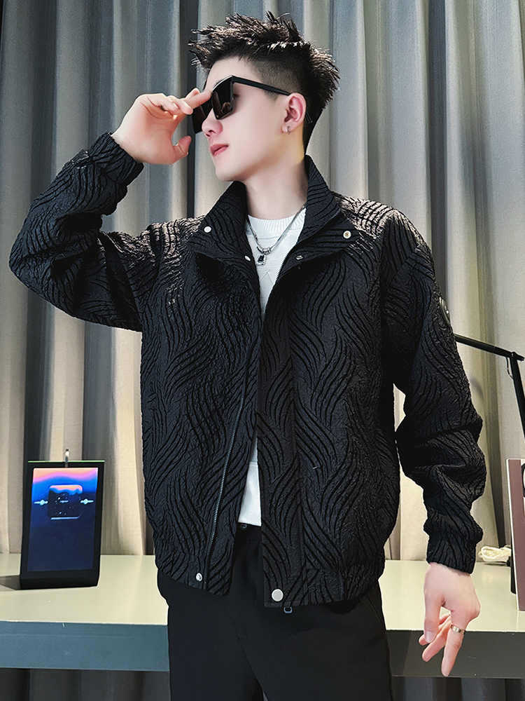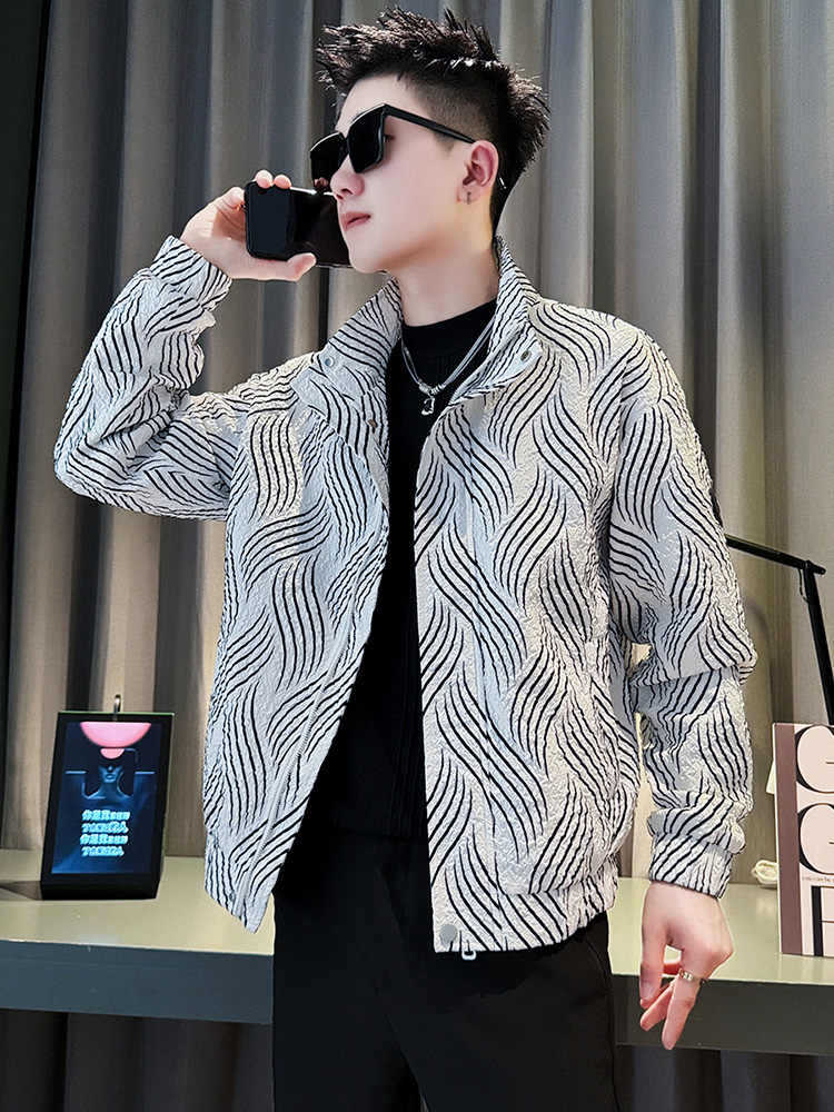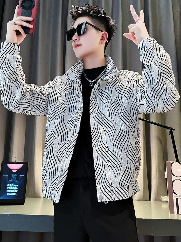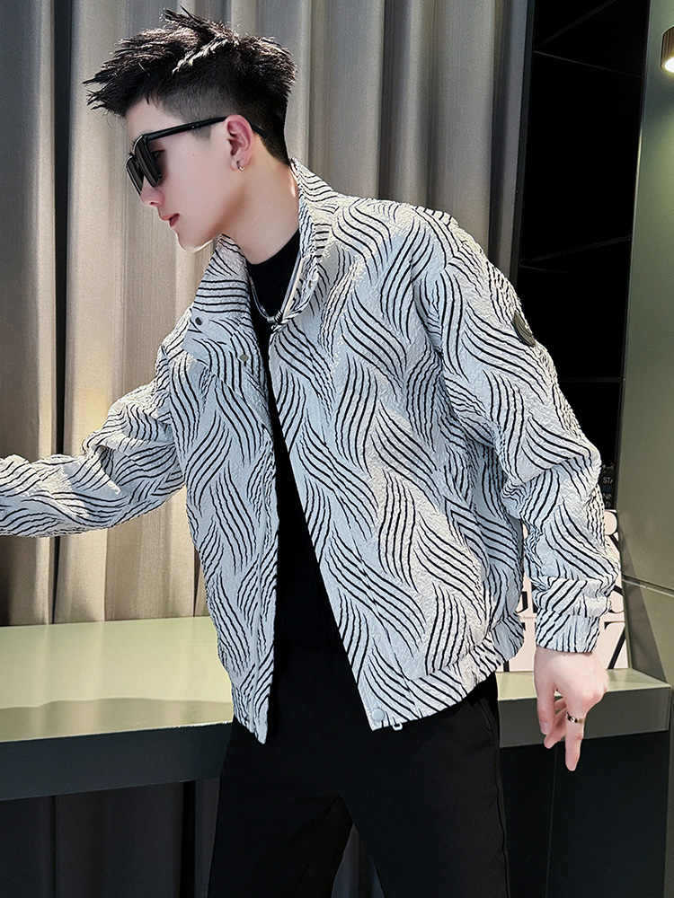 트렌디 한 브랜드 부치 핸섬 재킷 남자의 봄과 가을 유행 캐주얼 질감 줄무늬 재킷 2024 새로운 도착 남자의 가을 탑