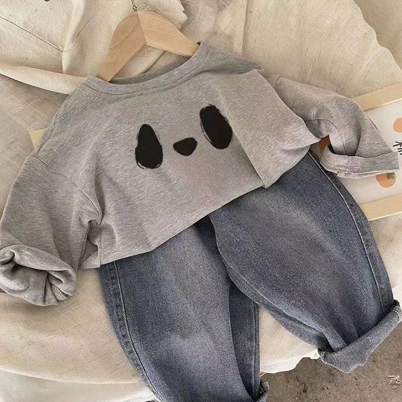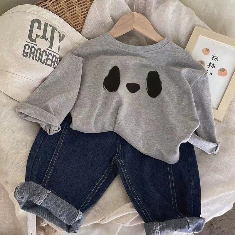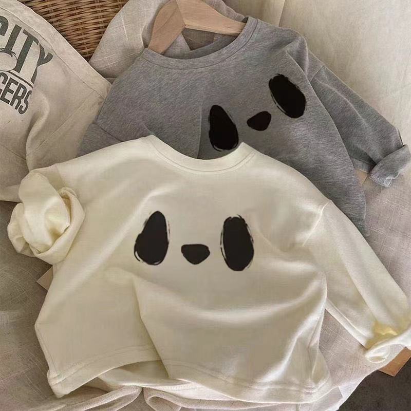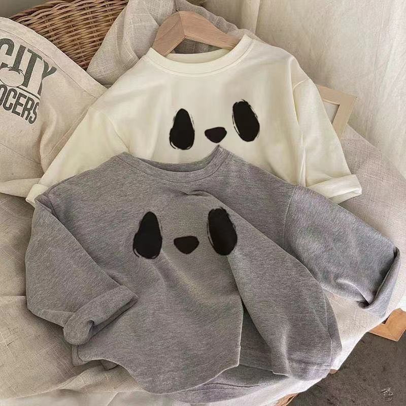 봄과 가을 새로운 외국 스타일 만화 팬더 아우터 착용 중소 아기 긴팔 티셔츠 올매치 베이스 탑 T스토어 가기