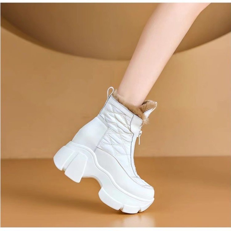 두꺼운 바닥 바느질 얼굴 큰면 여성 부츠 2023 겨울 새로운 패션 따뜻한 앞 지퍼 짧은 부츠 여성 재고 도매
