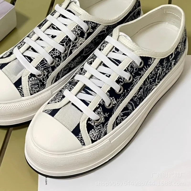 D 홈 자수 캔버스 신발 여성의 2024 새로운 사이버 축하 레이스 업 작은 흰색 신발 두꺼운 단독 강화 캐주얼 스포츠 보드 신발스토어 가기