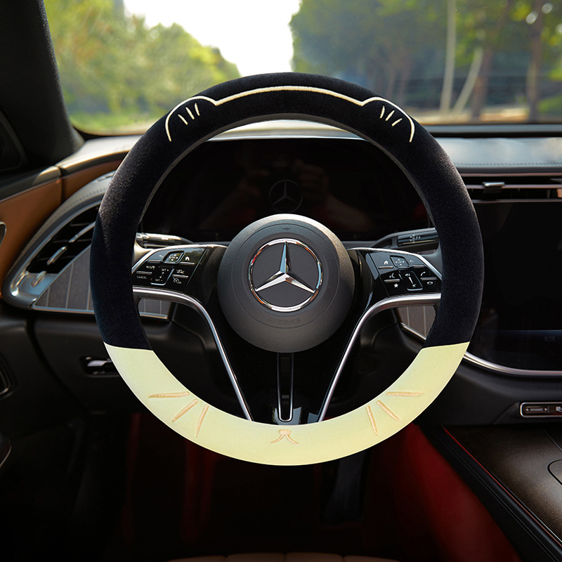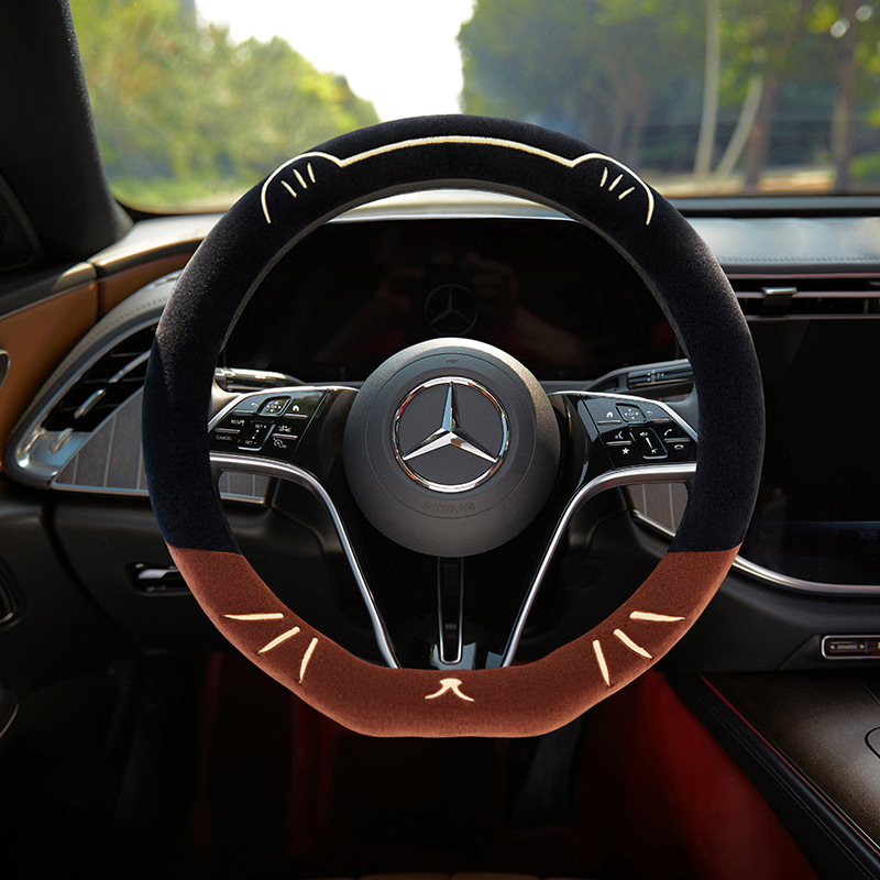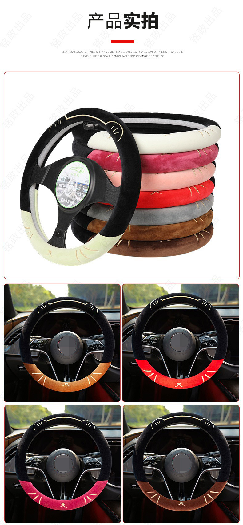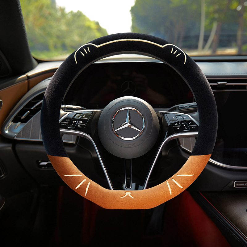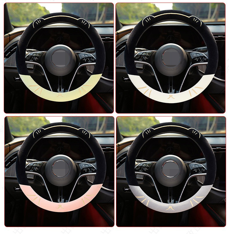 국경 도매 겨울 봉제 스티어링 휠 커버 가벼운 럭셔리 짧은 봉제 핸들 커버 여성의 겨울 따뜻한 자동차 스티어링 휠
