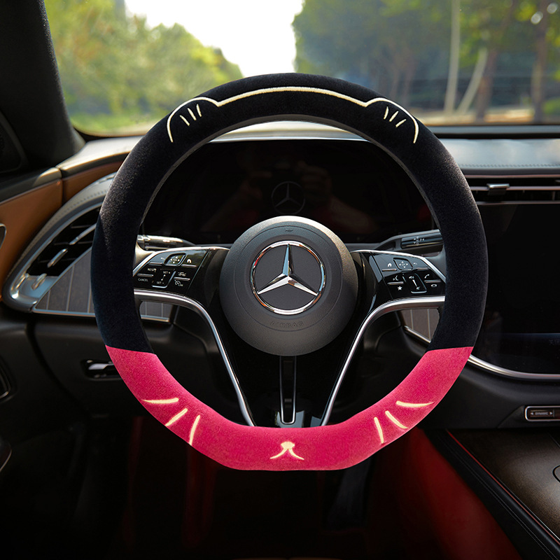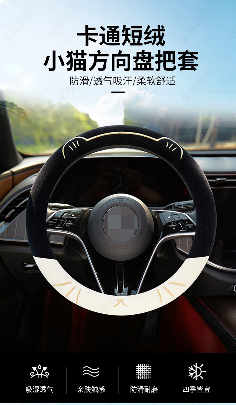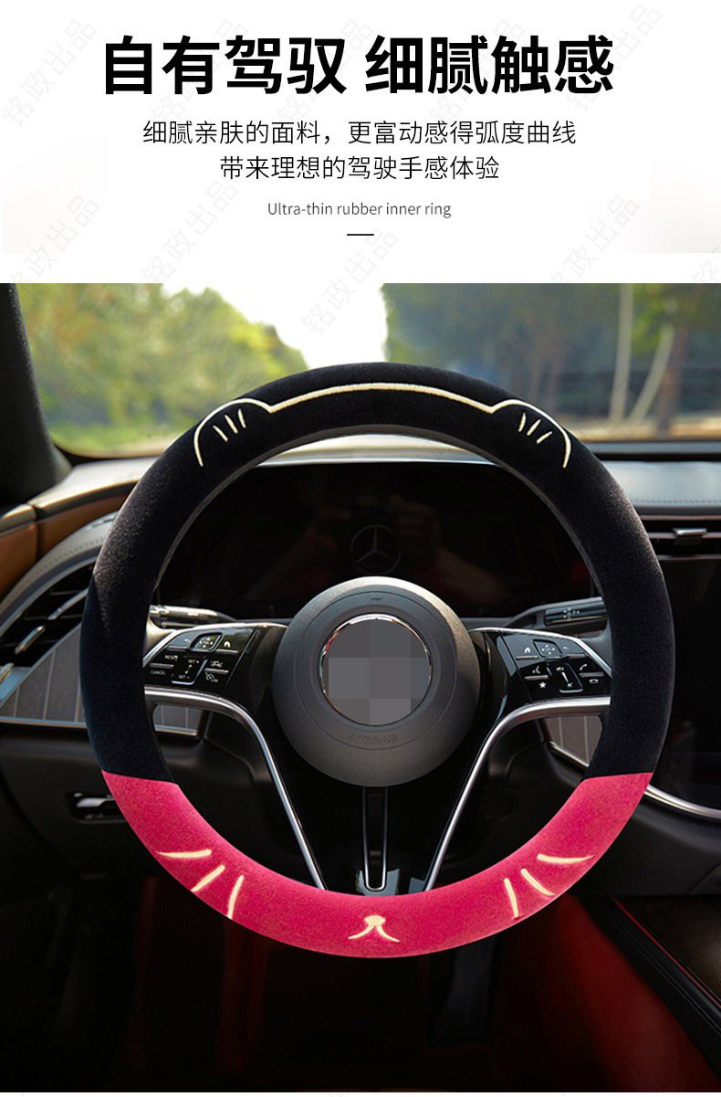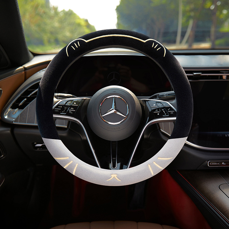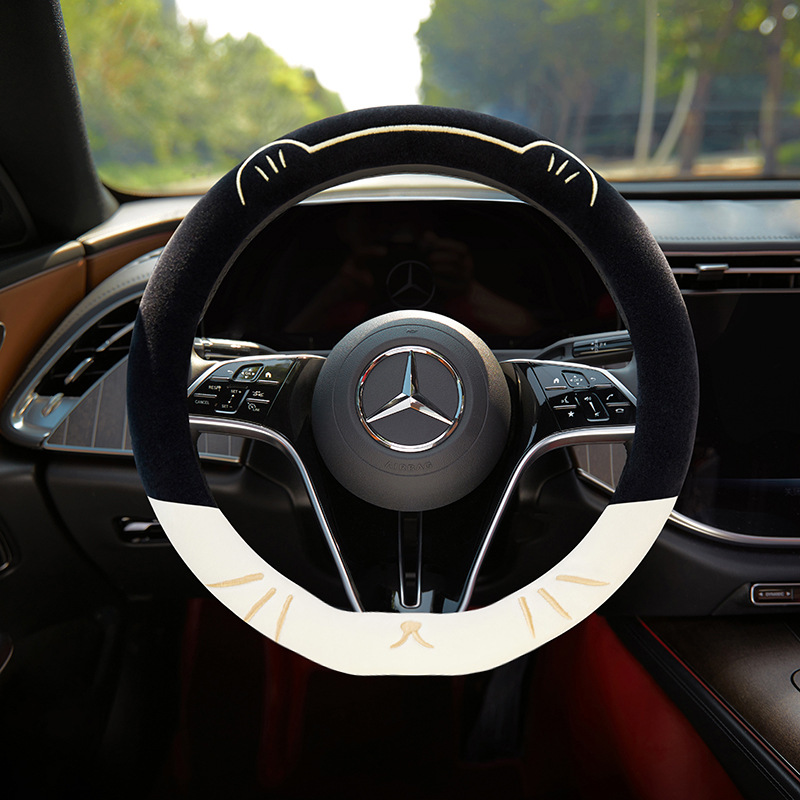 국경 도매 겨울 봉제 스티어링 휠 커버 가벼운 럭셔리 짧은 봉제 핸들 커버 여성의 겨울 따뜻한 자동차 스티어링 휠