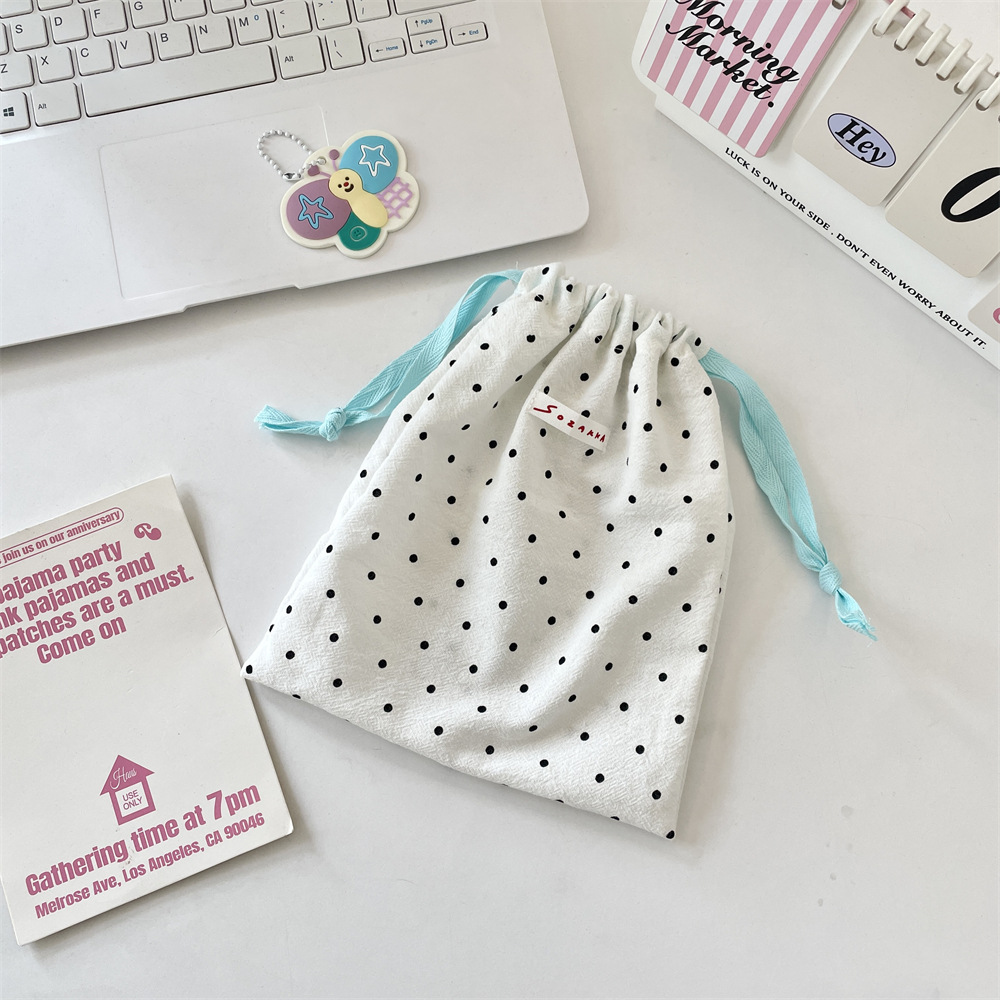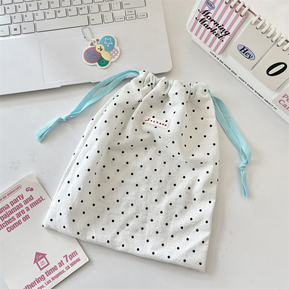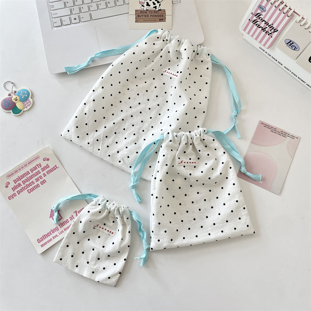 45262 3종 세트 조임끈 수납 물방울무늬 가방 화장품 휴대용 수납 가방 조임끈 천 가방 잡화 정리 가방