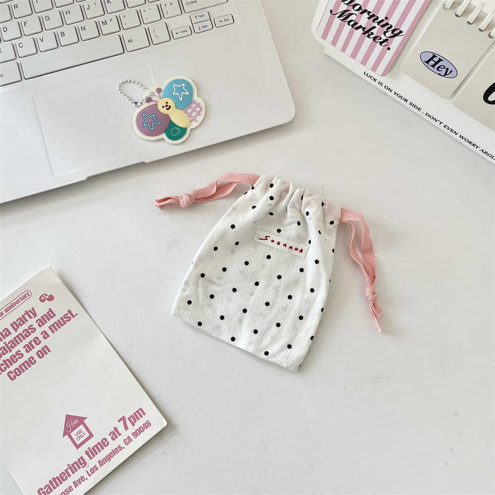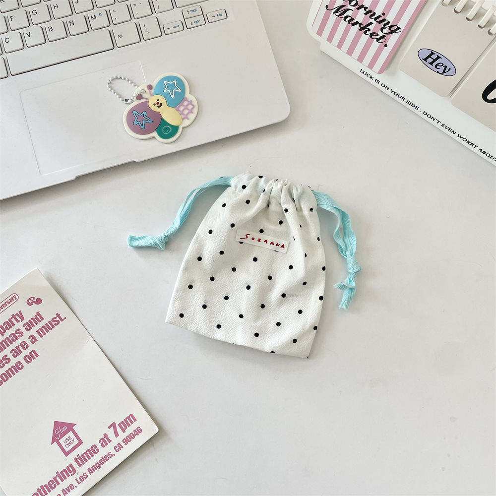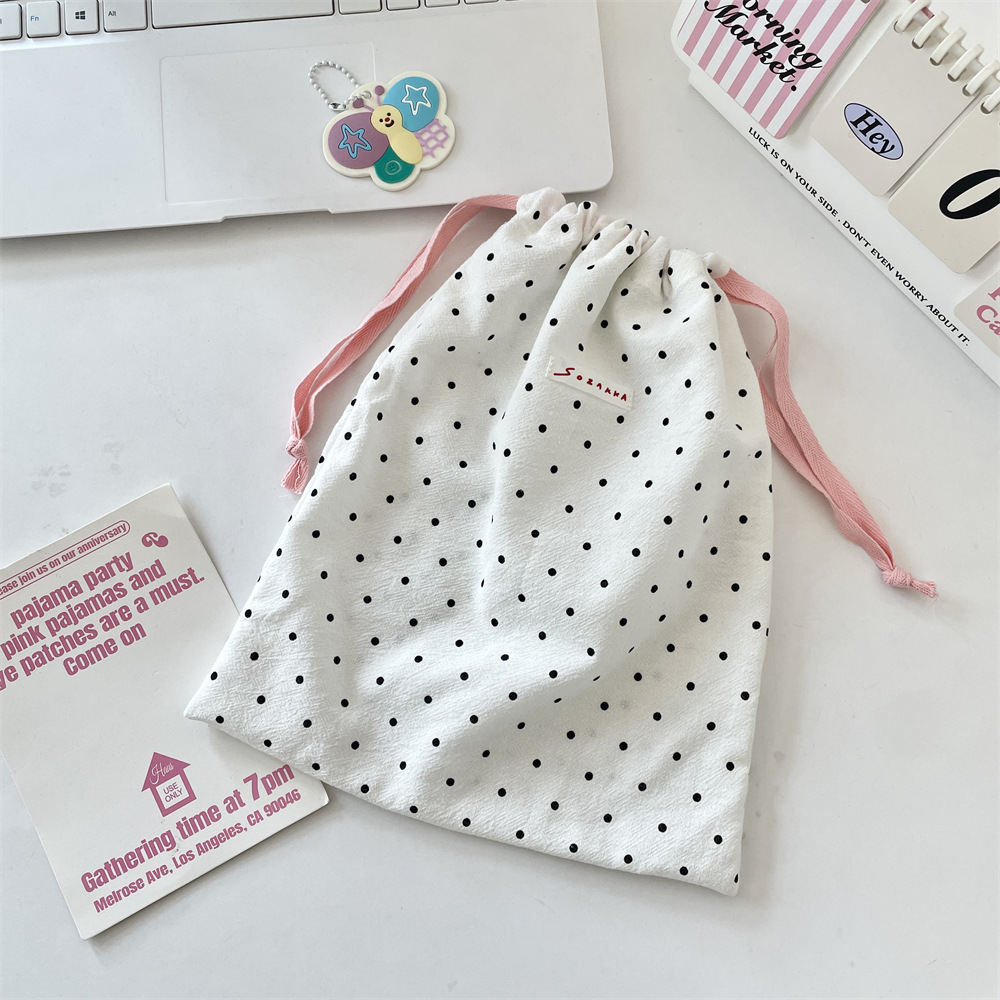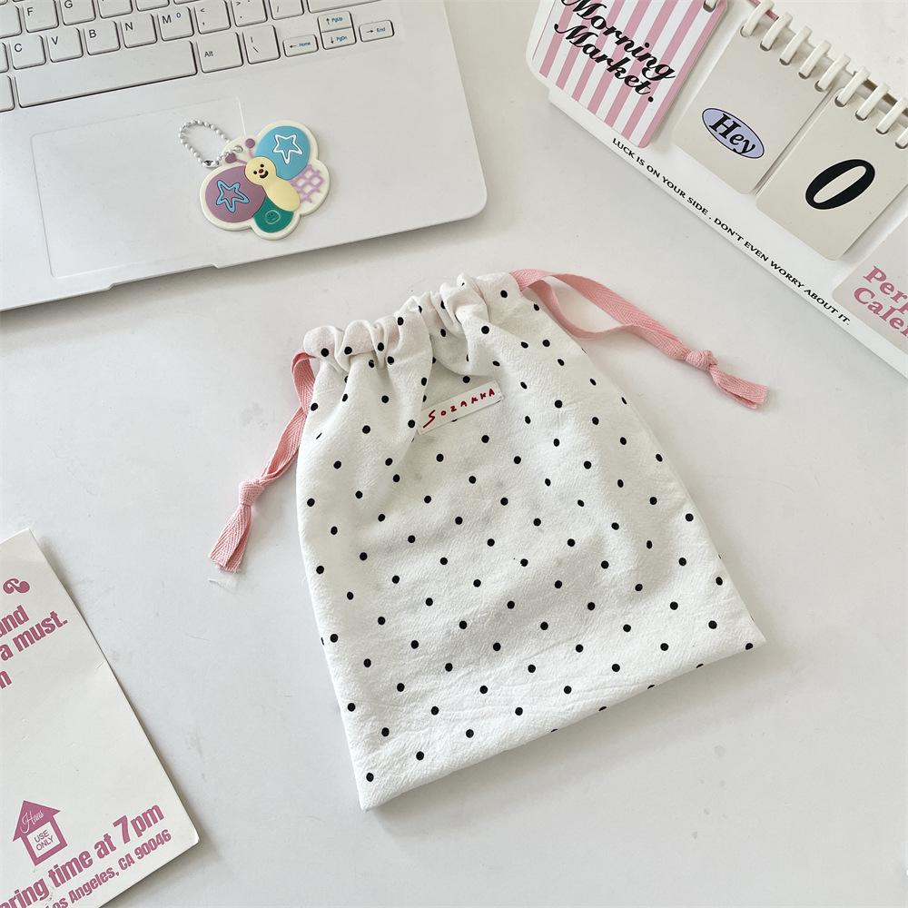 45262 3종 세트 조임끈 수납 물방울무늬 가방 화장품 휴대용 수납 가방 조임끈 천 가방 잡화 정리 가방