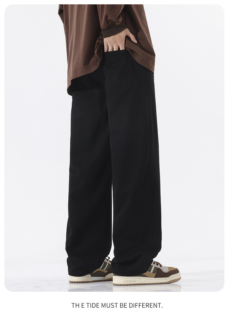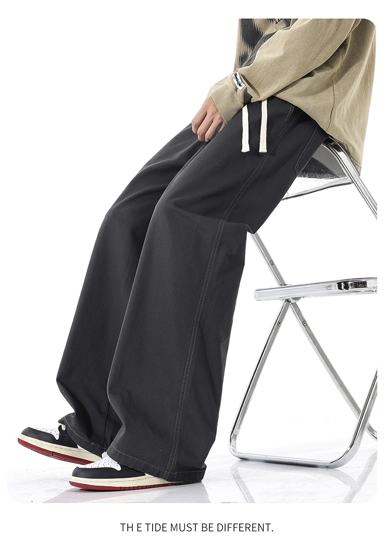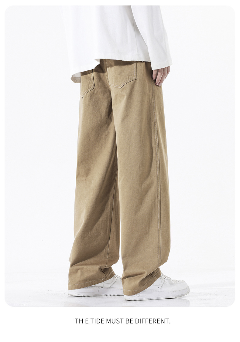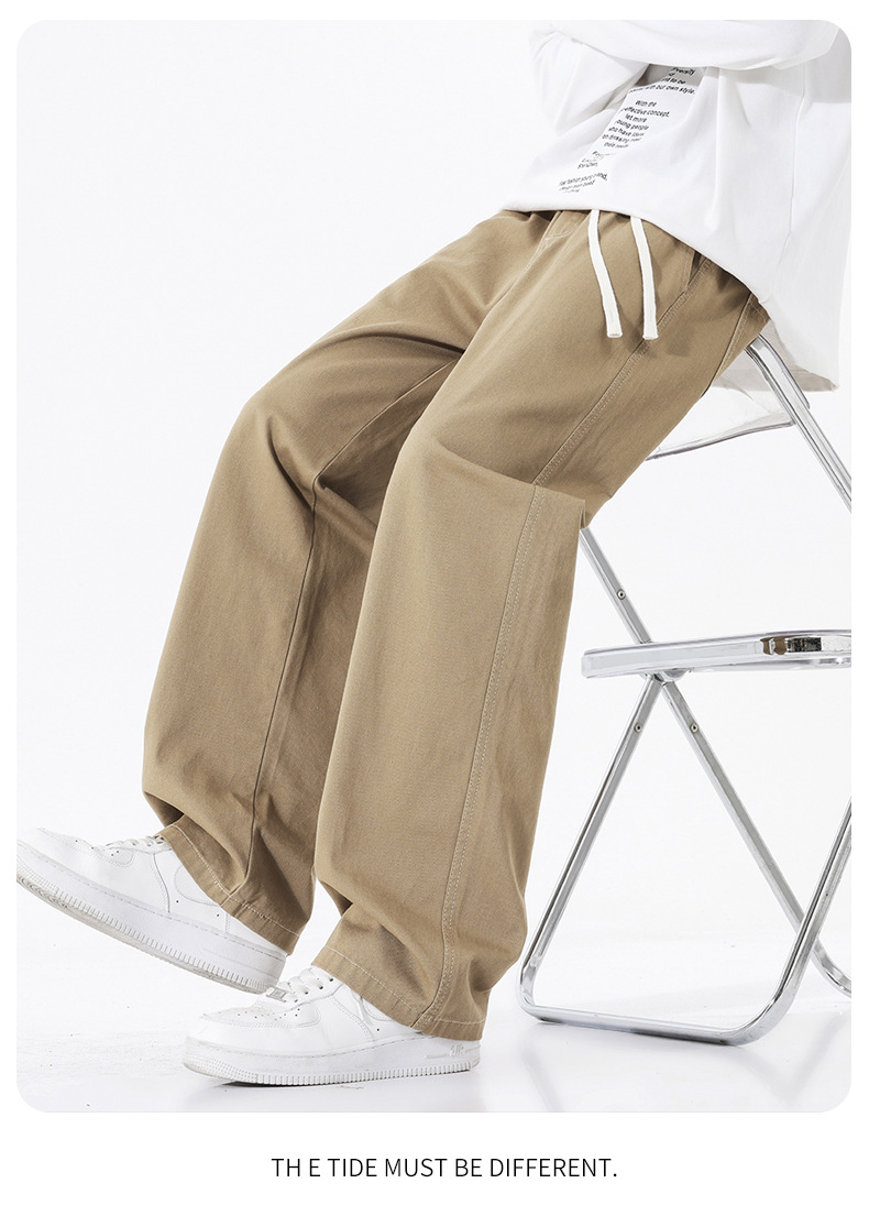 무추 남성복∣후리스 안감 두꺼운 보온 캐주얼 팬츠 남성용 아메리칸 스타일 순면 루즈핏 스트레이트 와이드 레그 워크웨어 롱 팬츠