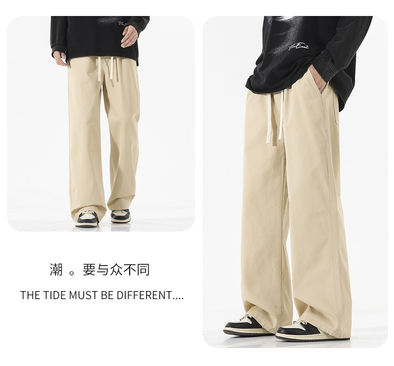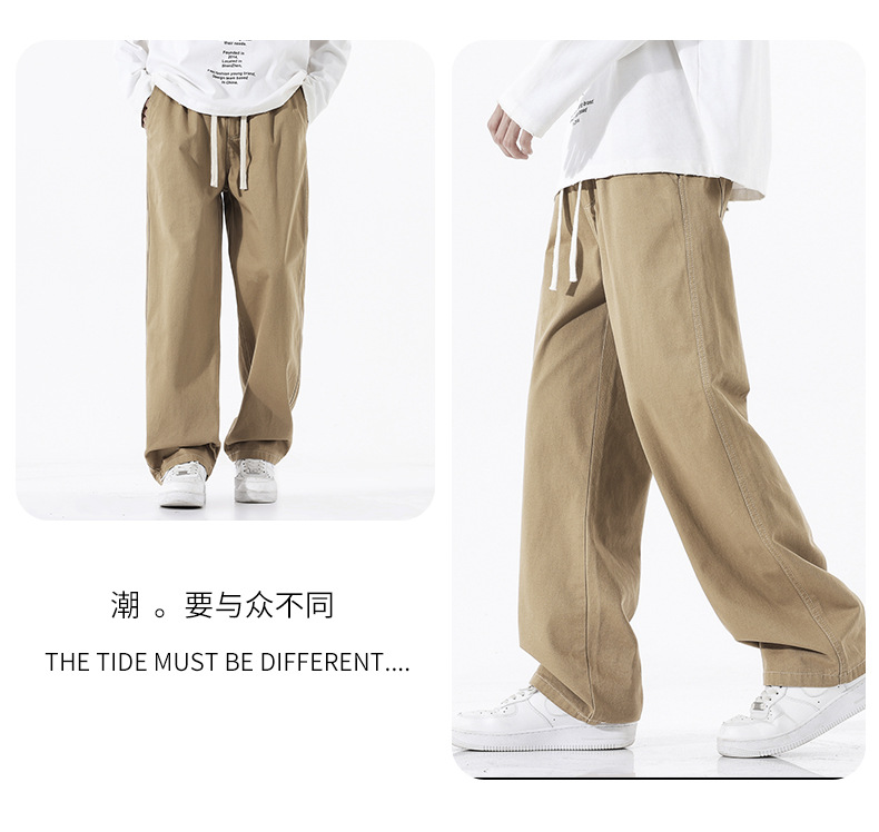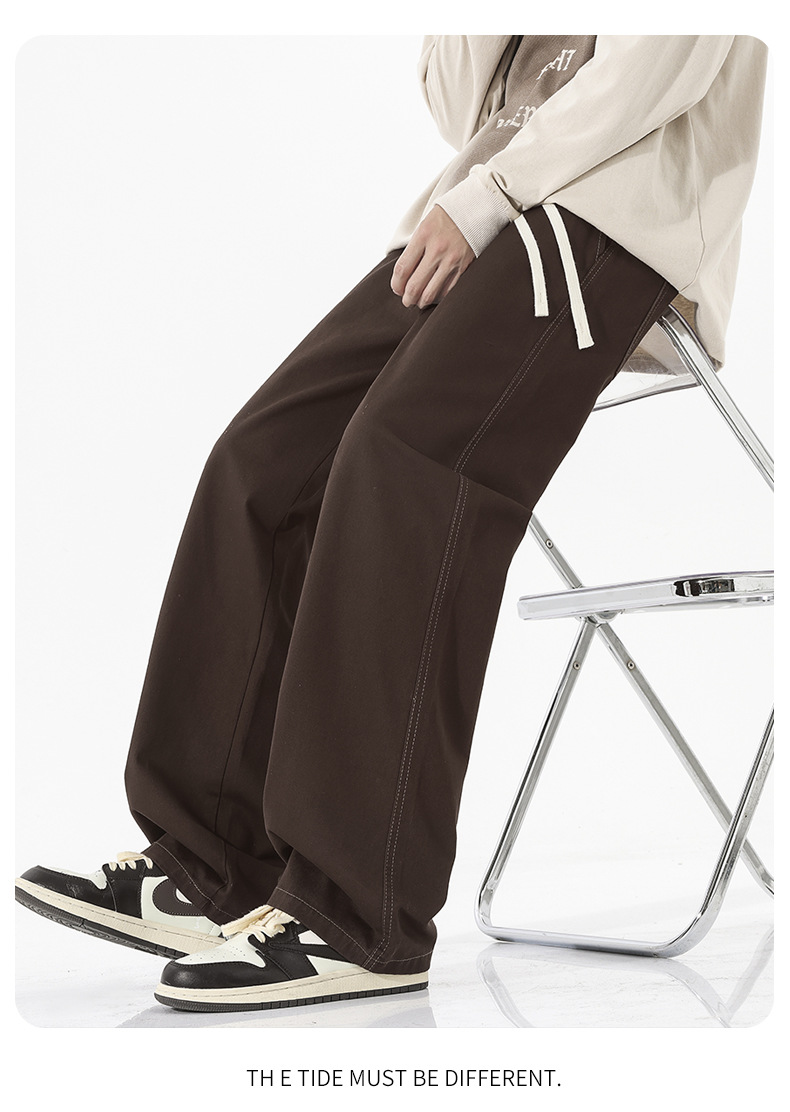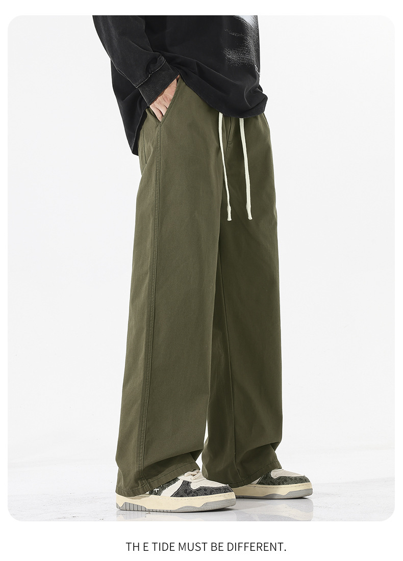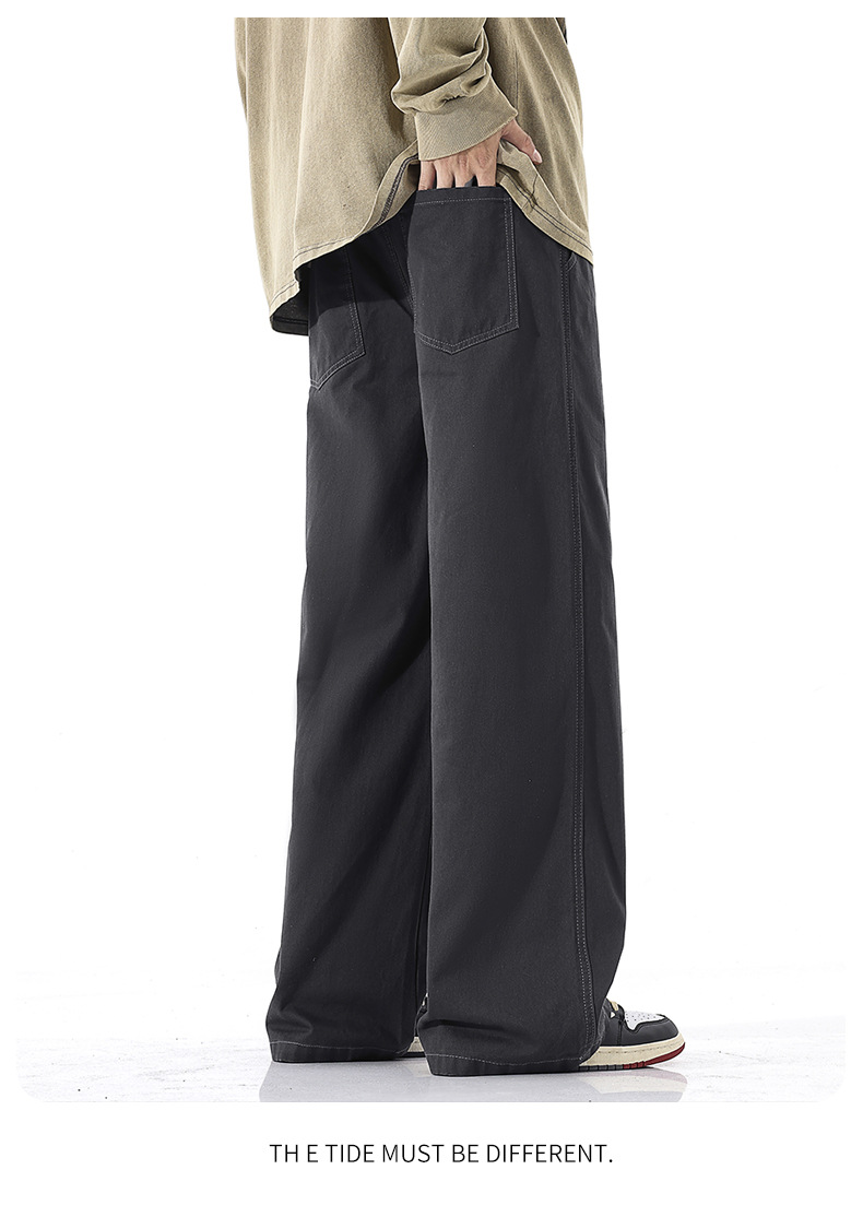 무추 남성복∣후리스 안감 두꺼운 보온 캐주얼 팬츠 남성용 아메리칸 스타일 순면 루즈핏 스트레이트 와이드 레그 워크웨어 롱 팬츠