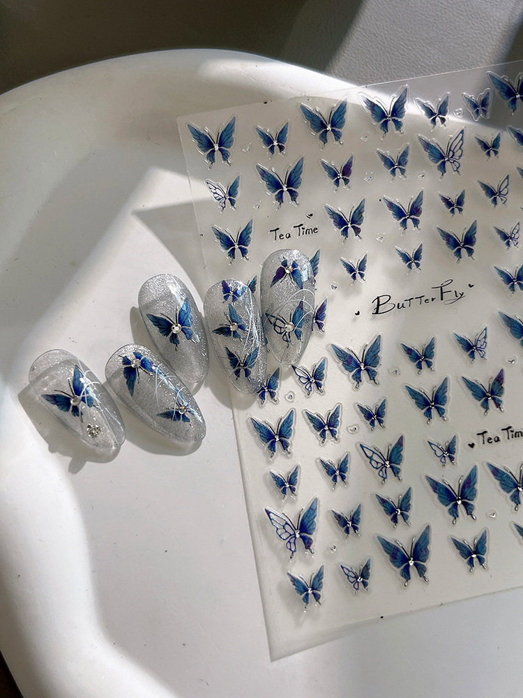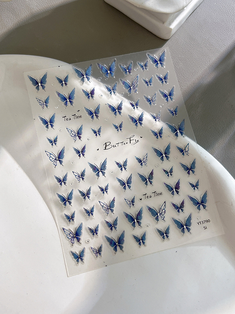 YITU 개미 그림 뜨거운 실버 블루 크리스탈 나비 네일 아트 스티커 크기 나비 스테레오 릴리프 네일 장식 스티커 YT3790스토어 가기