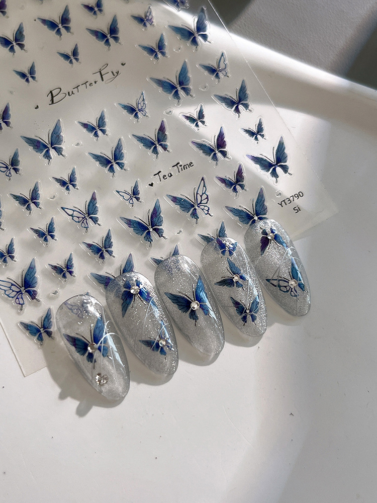 YITU 개미 그림 뜨거운 실버 블루 크리스탈 나비 네일 아트 스티커 크기 나비 스테레오 릴리프 네일 장식 스티커 YT3790