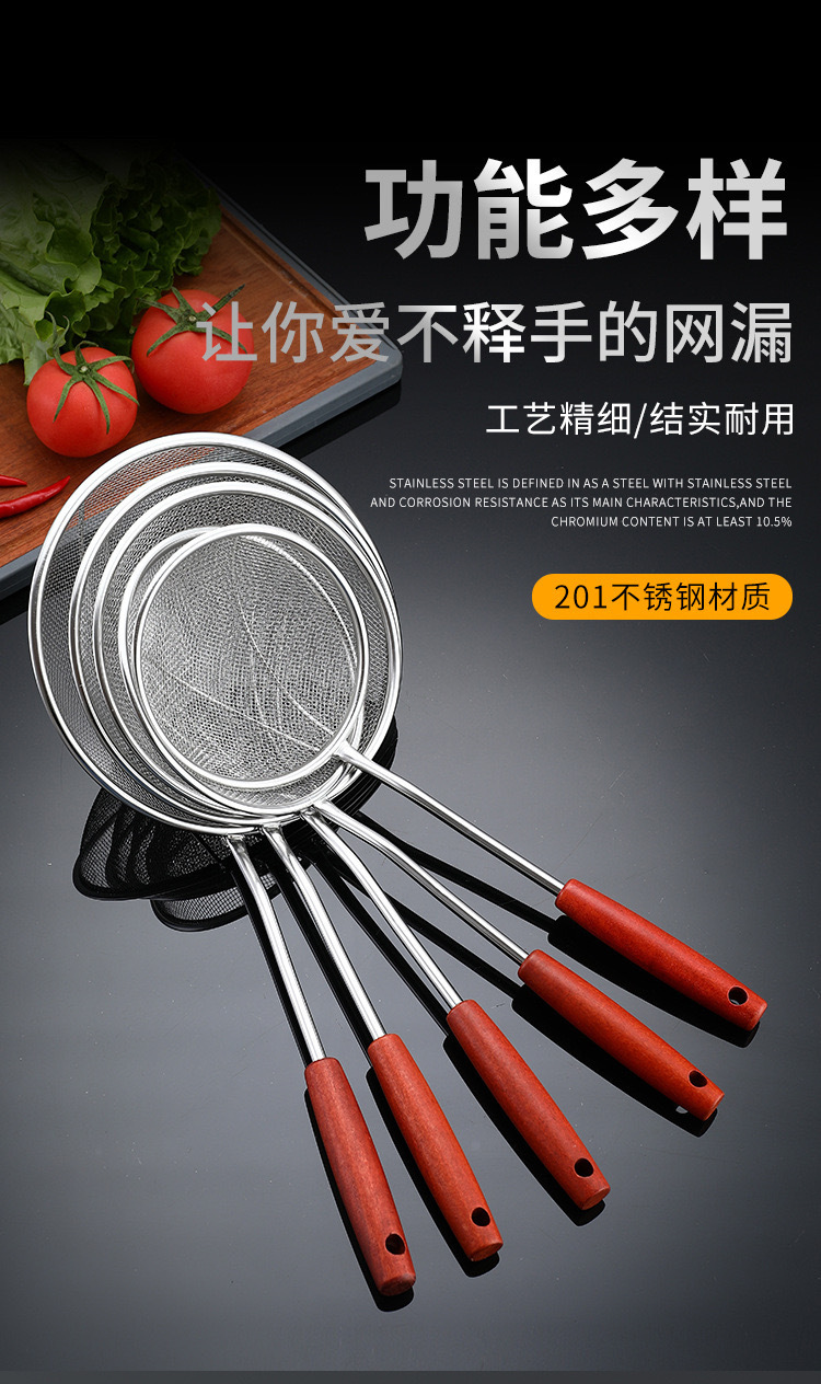 스테인레스 스틸 메쉬 배수 메시 주방 생선 국수 튀김 Malatang 필터 스푼 뜨거운 냄비 Colander 두꺼운 나무 손잡이 큰 스트레이너스토어 가기