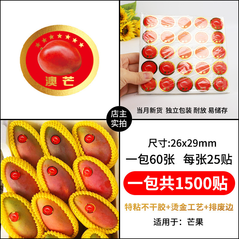 유니버설 브론 징 표현 웃는 얼굴 슈퍼 신선한 Guiqi 야생 Qingao 망고 과일 스티커 스티커 상표