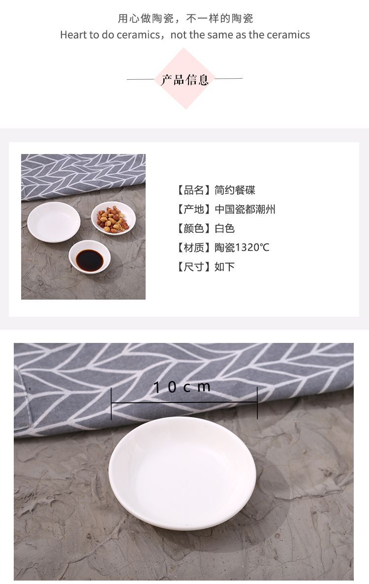 10 팩 세라믹 접시 양념 간장 식초 접시 순수한 흰색 접시 소스 뼈 접시 호텔 가정용 세라믹 Jiatai