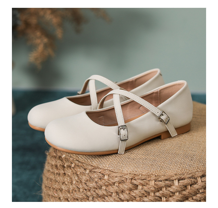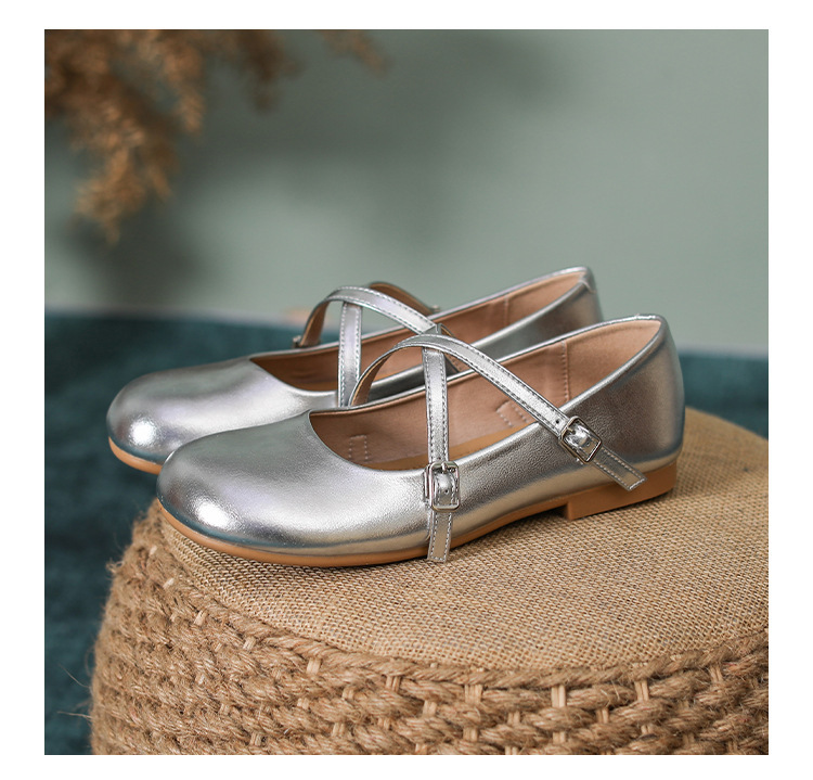 조용한 가죽 여성 싱글 레이어 신발 간단한 메리 제인 작은 가죽 신발 실버 크로스 얕은 부드러운 바닥 신발 플랫 보트 버클 라운드 헤드