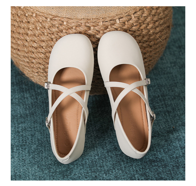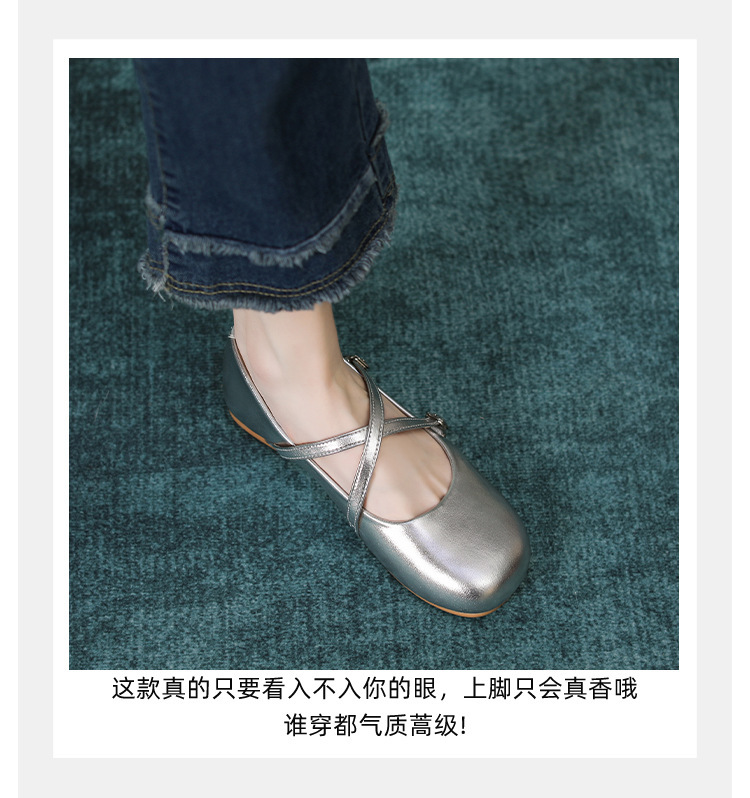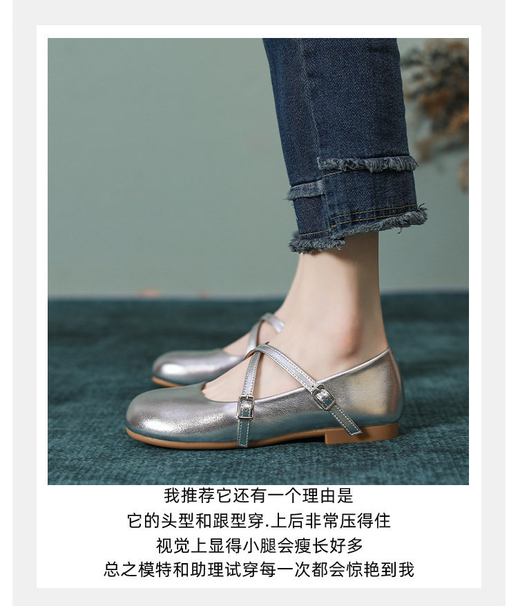 조용한 가죽 여성 싱글 레이어 신발 간단한 메리 제인 작은 가죽 신발 실버 크로스 얕은 부드러운 바닥 신발 플랫 보트 버클 라운드 헤드스토어 가기
