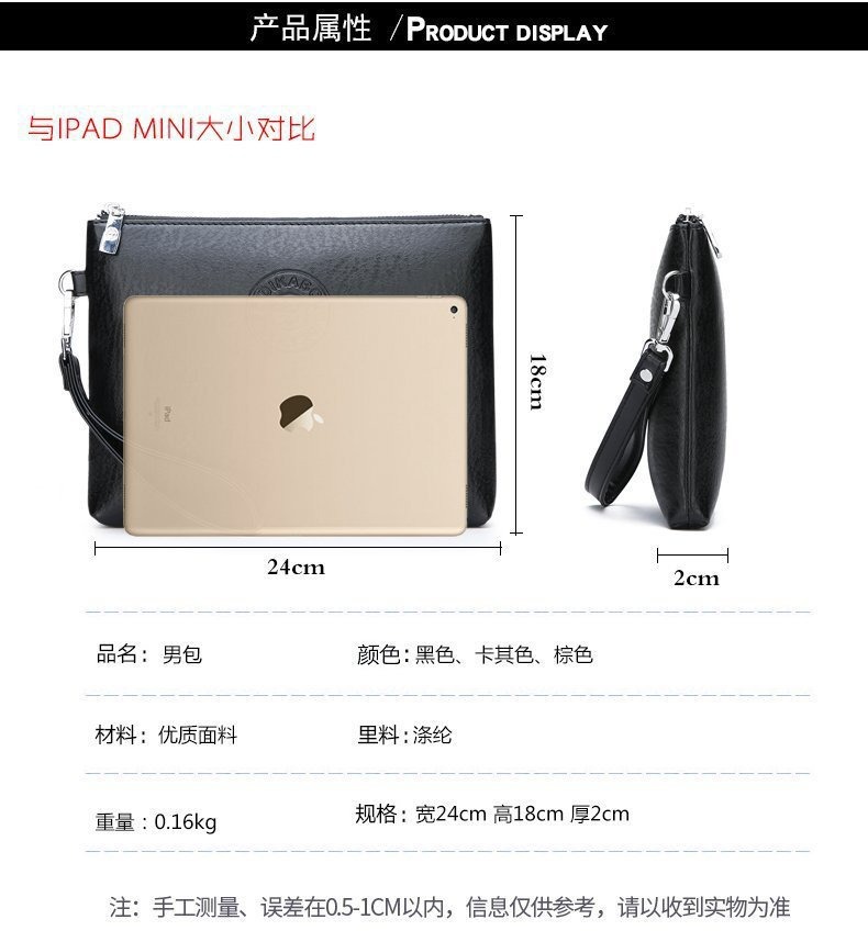 국경 간 대외 무역 2024 새로운 캐주얼 남성 클러치 백 간단한 PU 부드러운 가죽 남성 가방 휴대 전화 가방 대용량 지갑스토어 가기