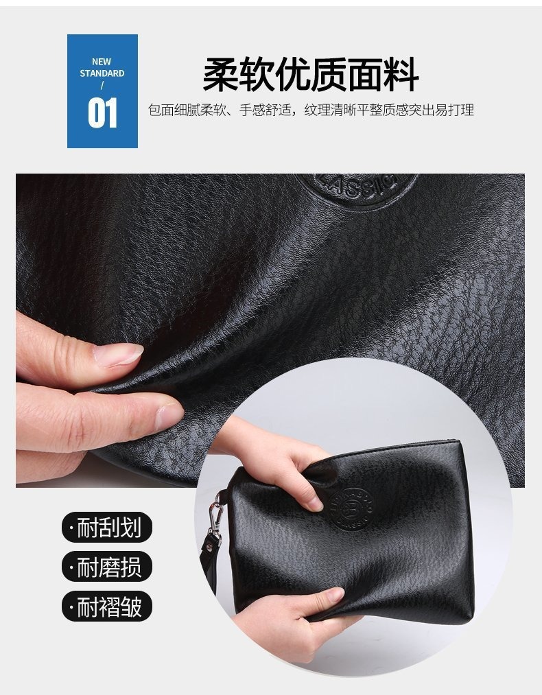 국경 간 대외 무역 2024 새로운 캐주얼 남성 클러치 백 간단한 PU 부드러운 가죽 남성 가방 휴대 전화 가방 대용량 지갑