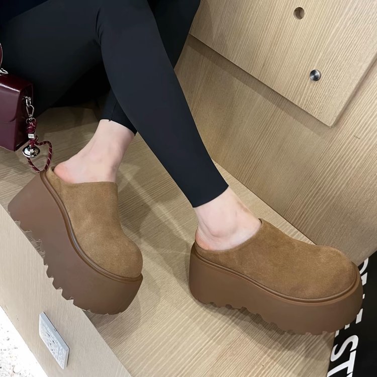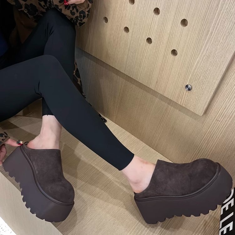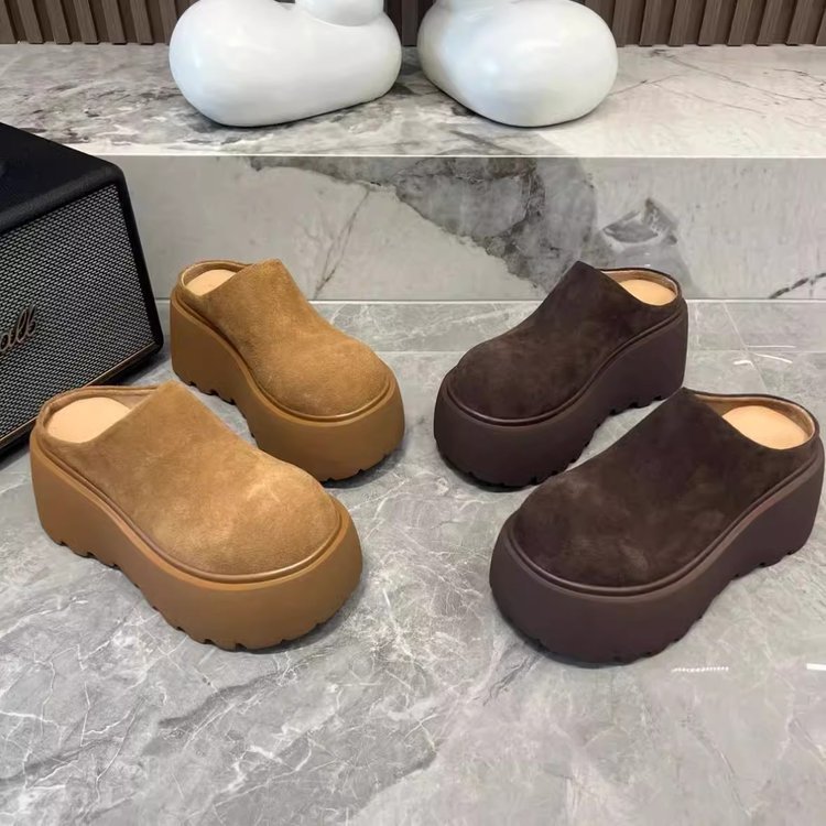 프랑스 두꺼운 밑창 Baotou 하프 슬리퍼 여성의 2024 새로운 가을 의류 작은 하이 엔드 우아한 게으른 신발스토어 가기