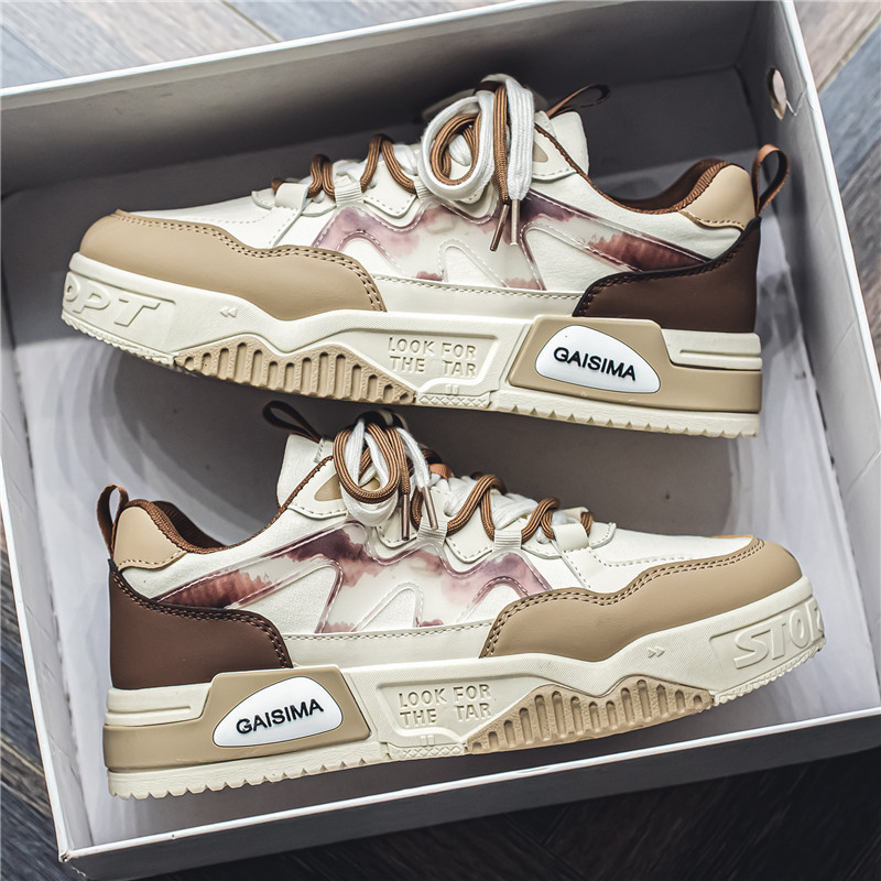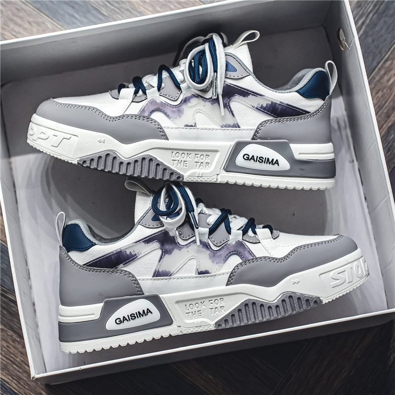 가을 새로운 남성 가죽 로우 탑 스케이트 보드 신발 학생 올 매치 스포츠 캐주얼 신발 라이브 틈새 트렌디 남성 신발
