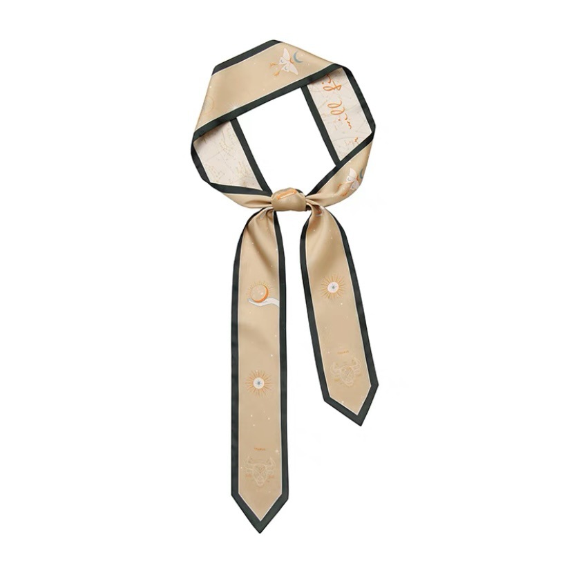 새로운 12 개의 별자리 실크 스카프 올 매치 선물 상자 장식 긴 스트립 얇은 좁은 헤어 밴드 리본 타이 백 우아한 빈티지 스카프