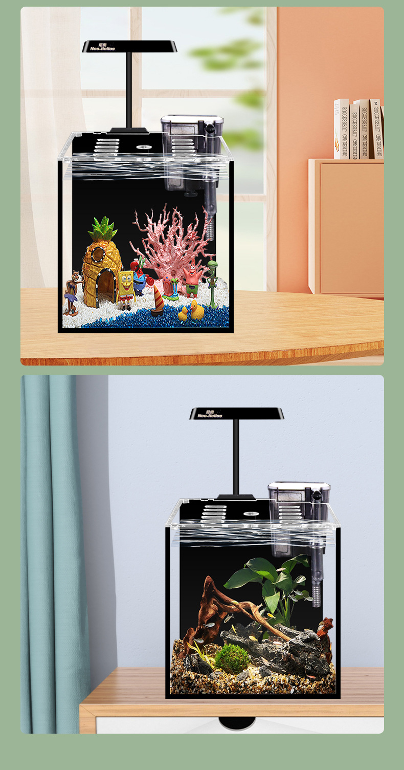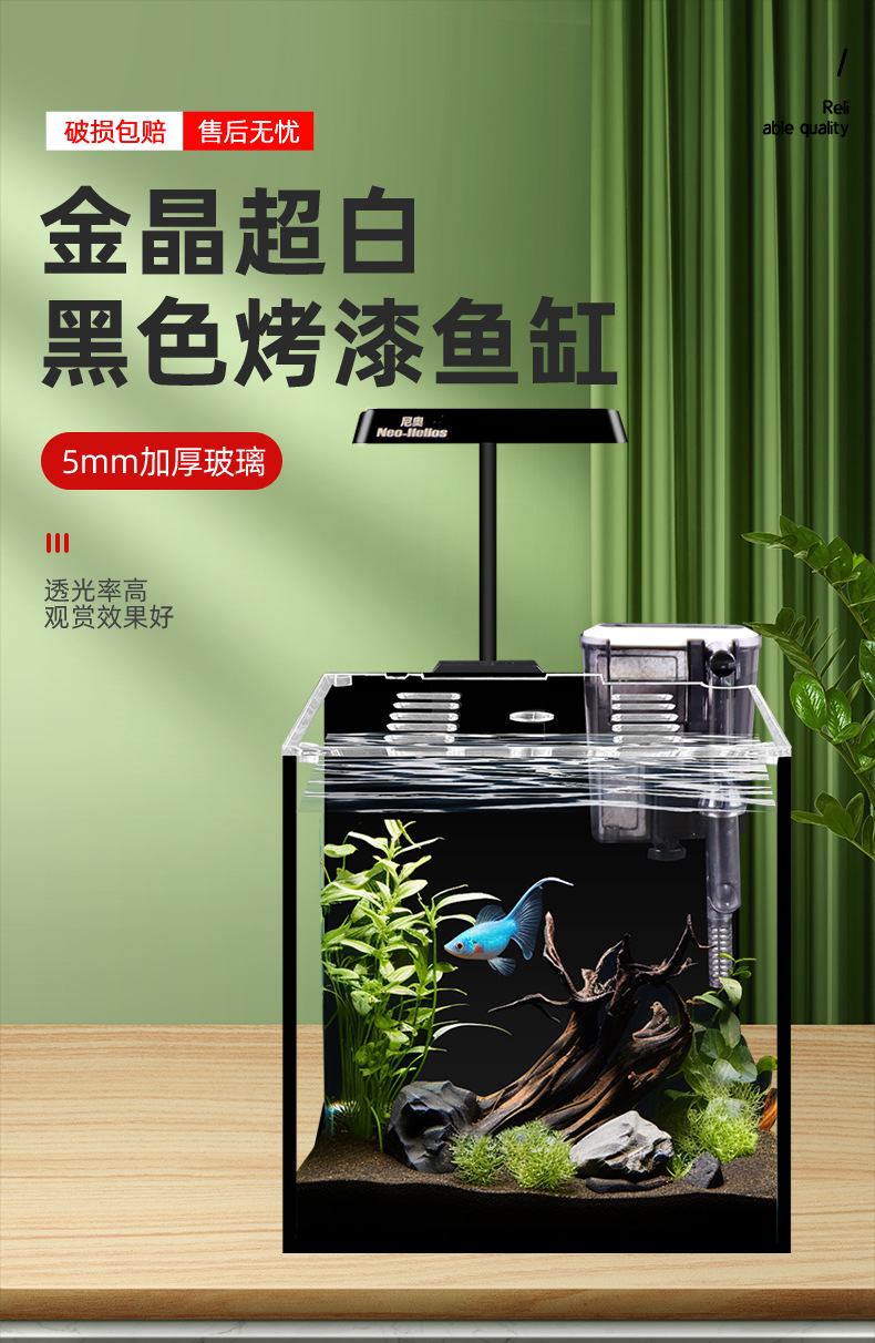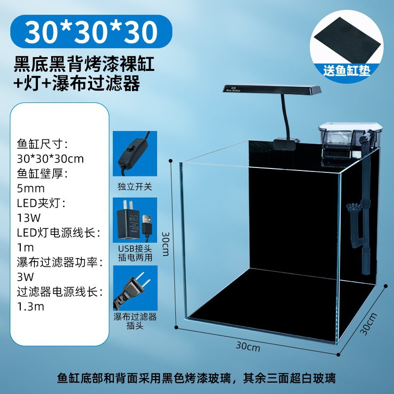 블랙 구운 페인트 물 잔디 탱크 슈퍼 화이트 작은 물고기 탱크 데스크탑 수족관 풍경 미니 가정용 블랙 하단 검은 색 다시 물고기 탱크스토어 가기