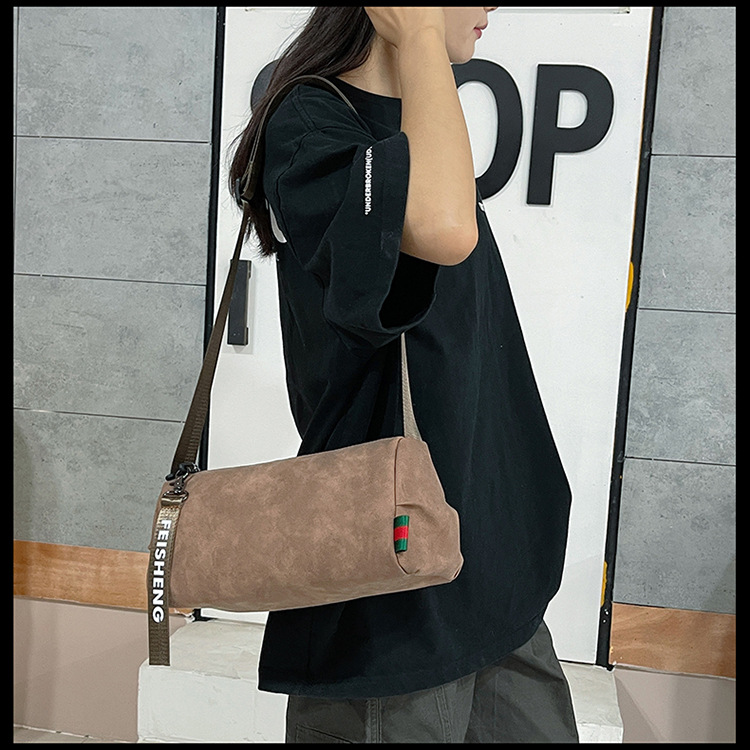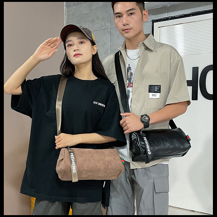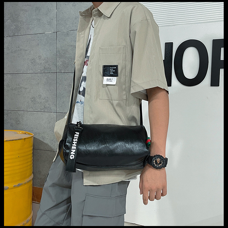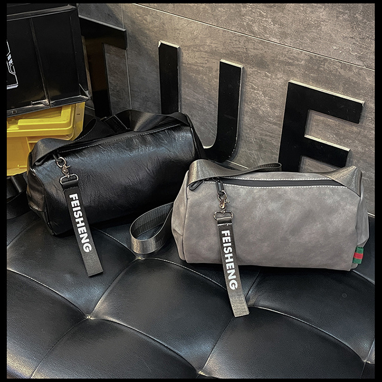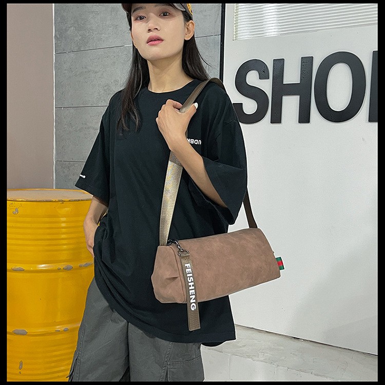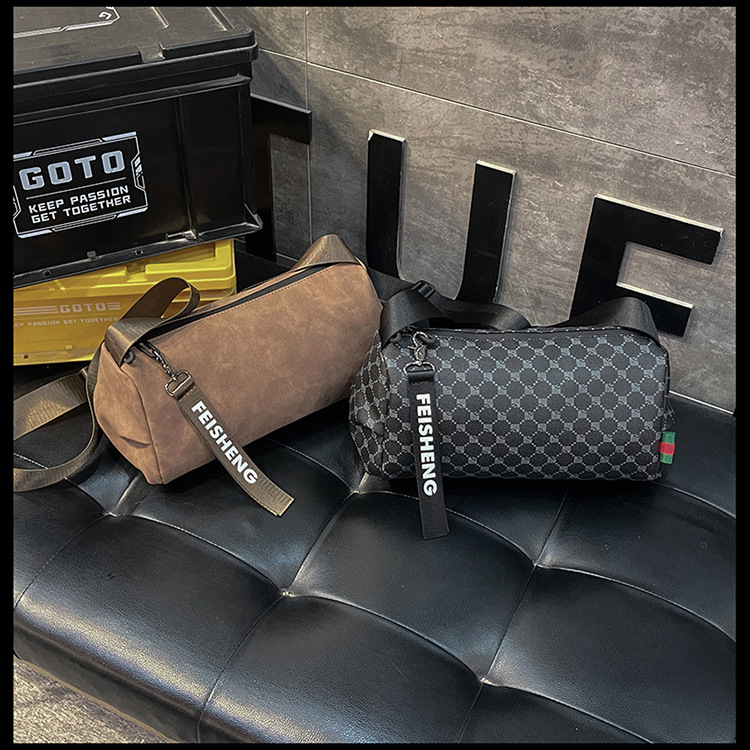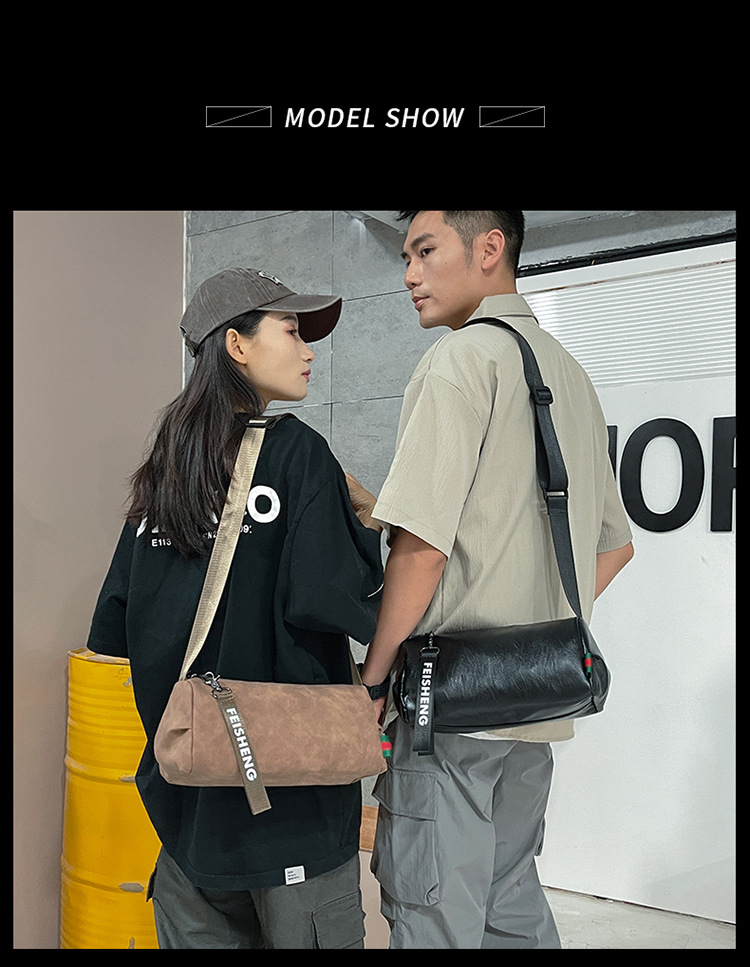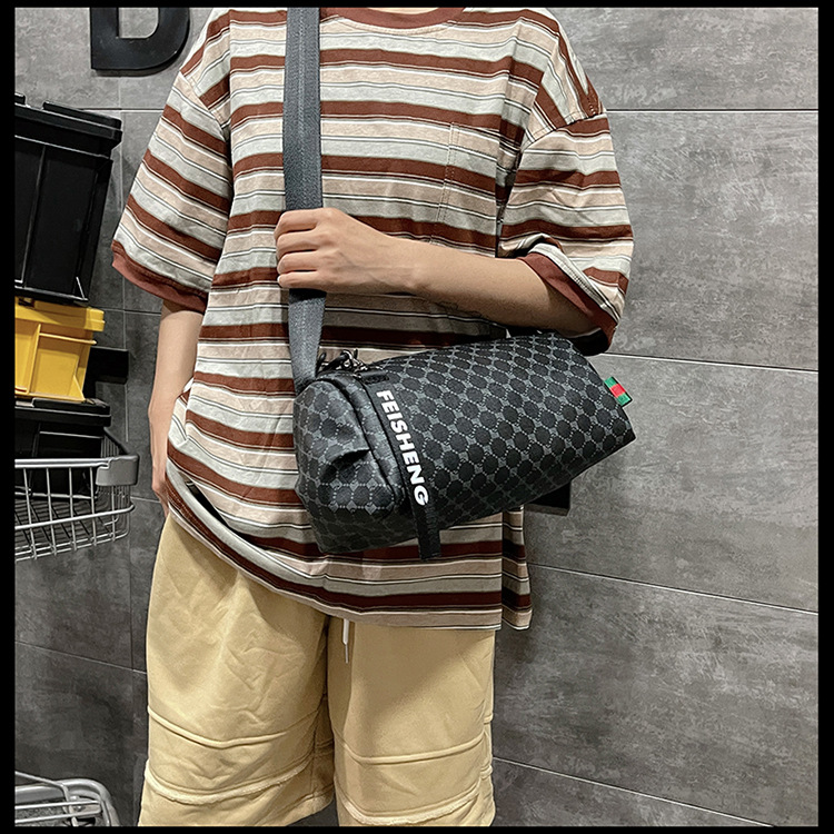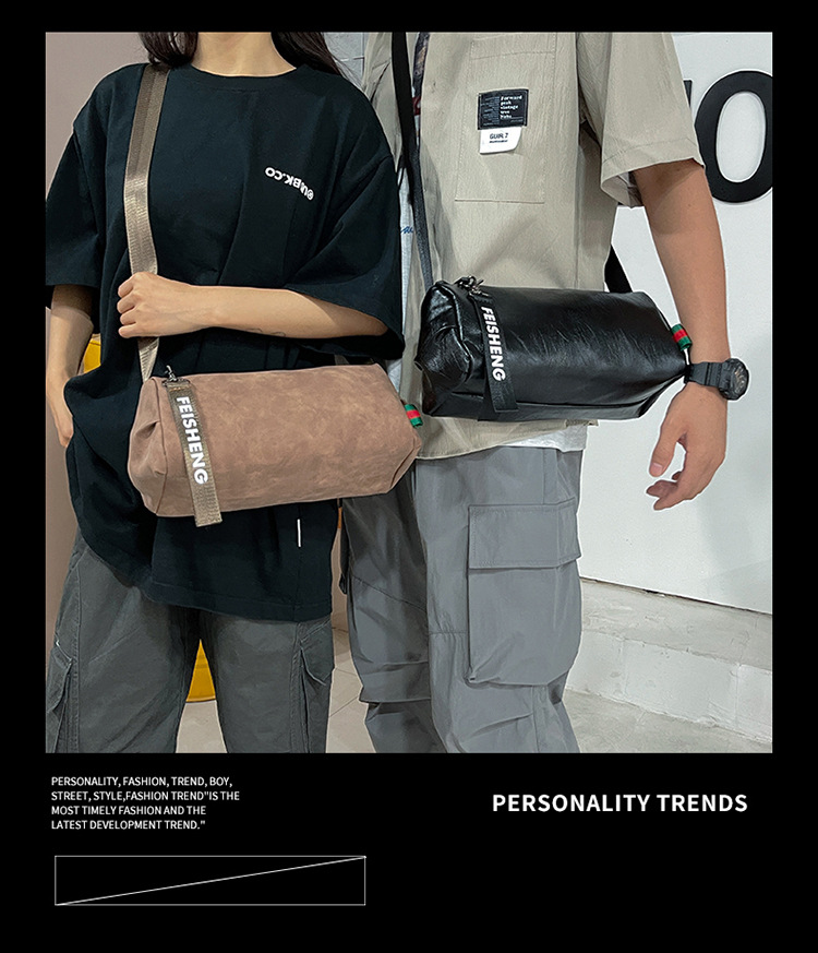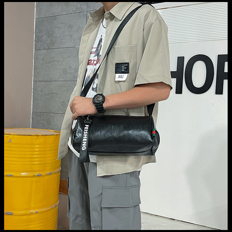 2024 새로운 실린더 가방 어깨 가방 한국 남자 가방 캐주얼 작은 가방 유행 크로스 바디 가방 거리 작은 사첼스토어 가기