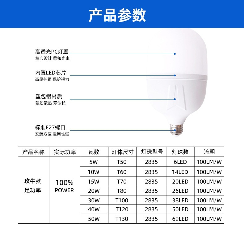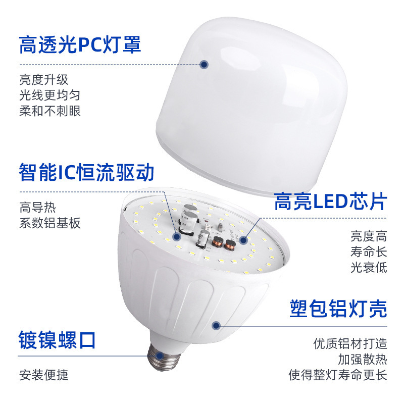 Led 전구 에너지 절약 슈퍼 밝은 원통형 전구 도매 고출력 플라스틱 알루미늄 가정용 전구 조개류로