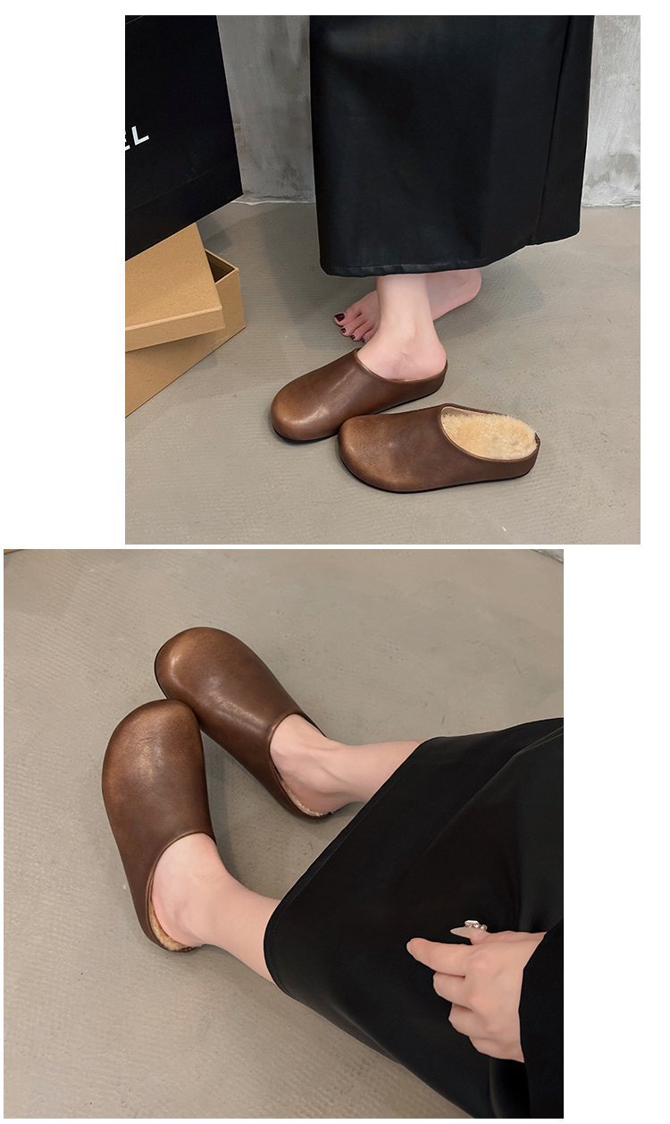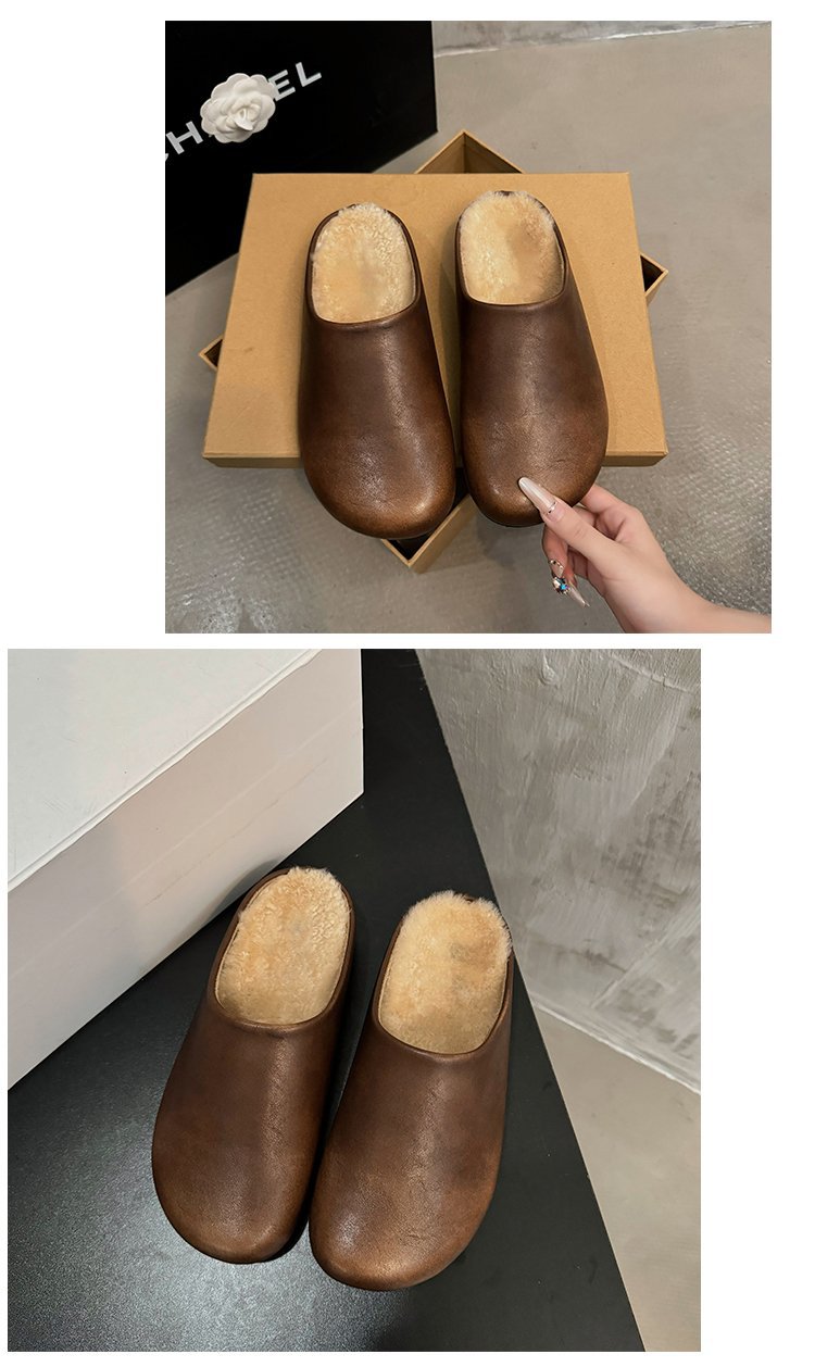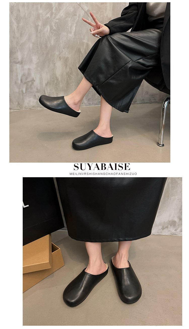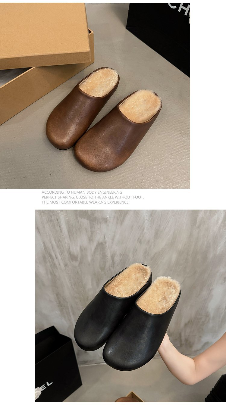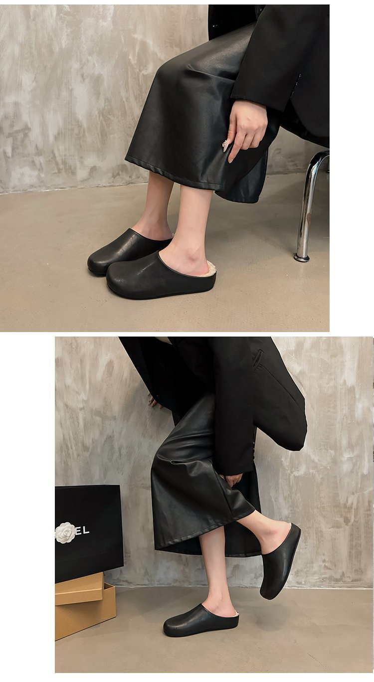 바오터우 하프 슬리퍼 여성 가을과 겨울 2024 새로운 스타일 슬립 온 게으른 신발 프렌치 레트로 소프트 하단 기모 면 슬리퍼