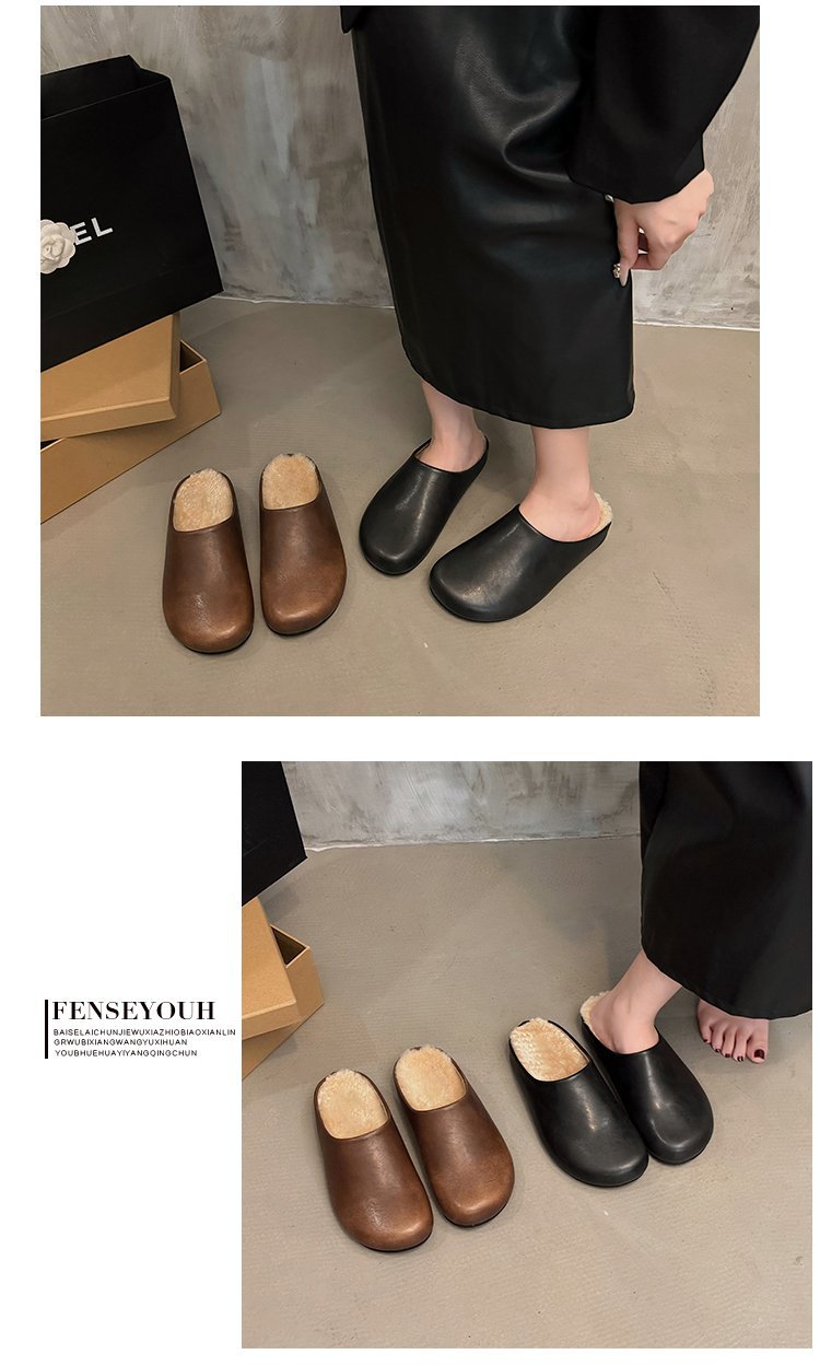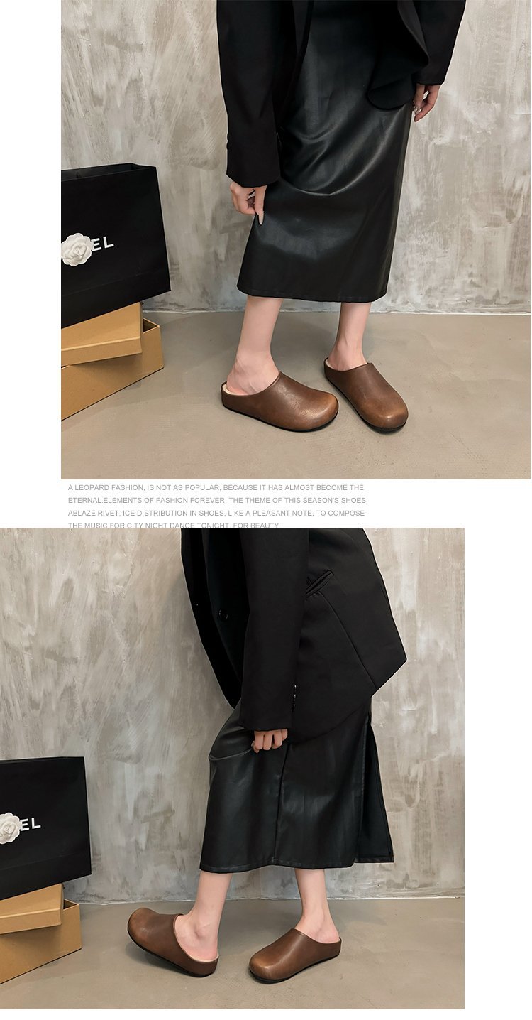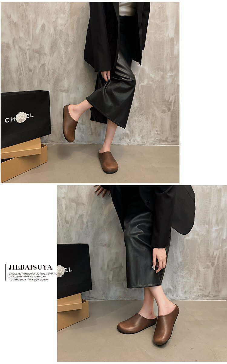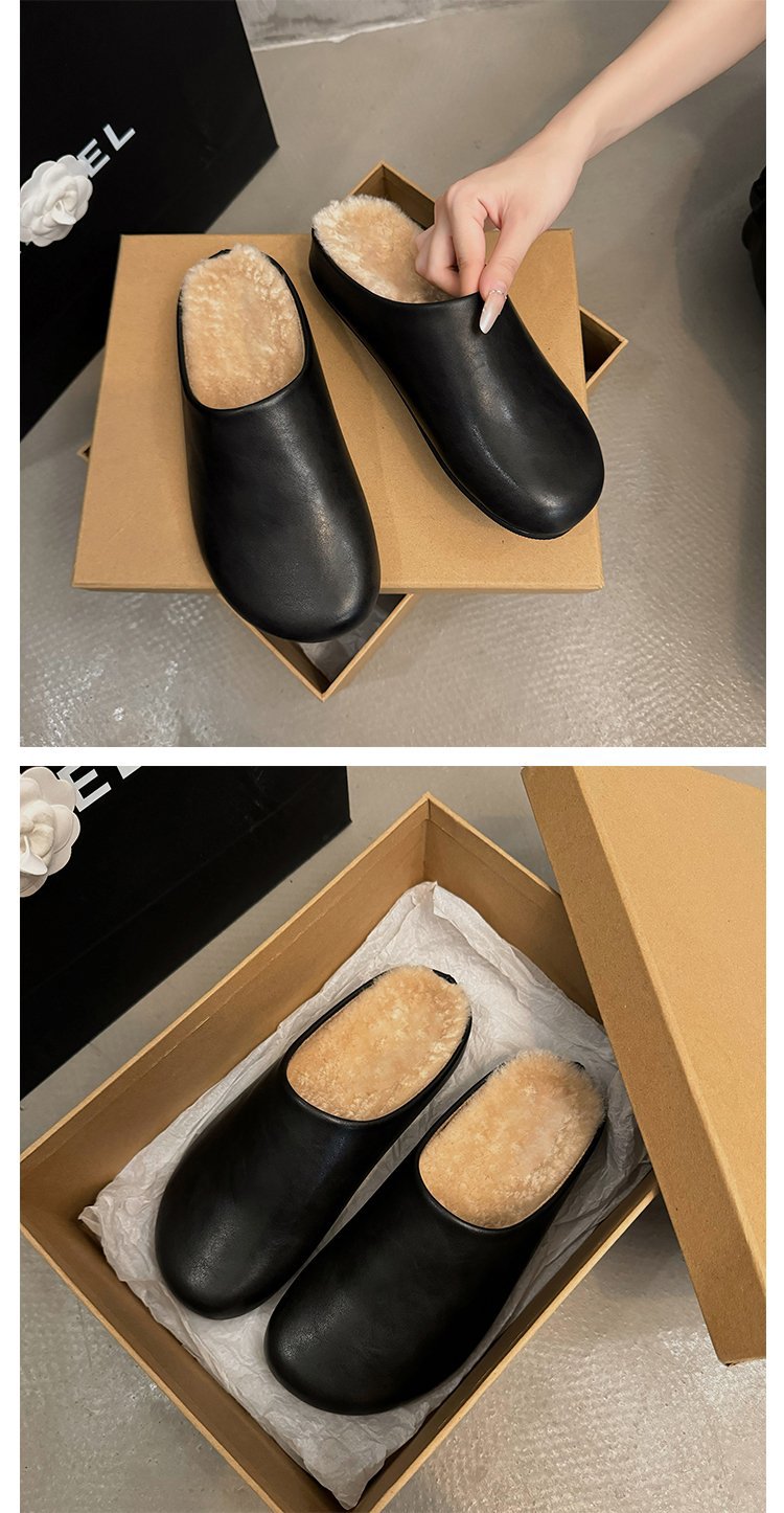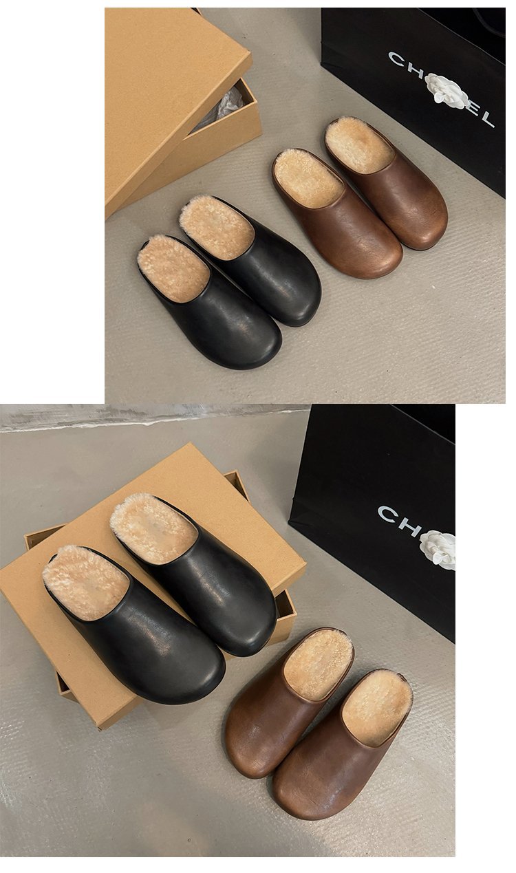 바오터우 하프 슬리퍼 여성 가을과 겨울 2024 새로운 스타일 슬립 온 게으른 신발 프렌치 레트로 소프트 하단 기모 면 슬리퍼