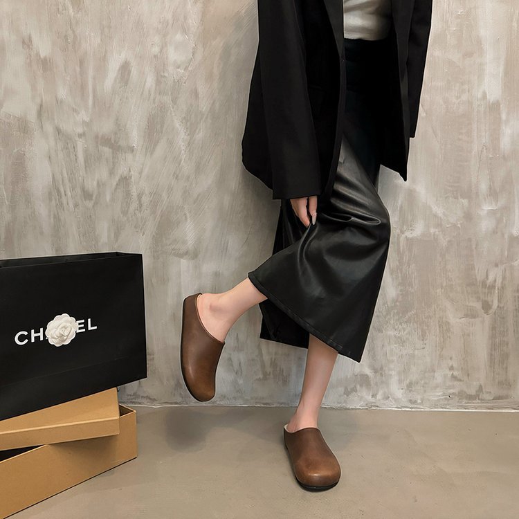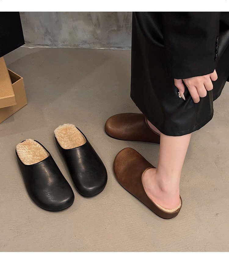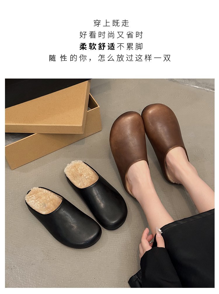 바오터우 하프 슬리퍼 여성 가을과 겨울 2024 새로운 스타일 슬립 온 게으른 신발 프렌치 레트로 소프트 하단 기모 면 슬리퍼스토어 가기
