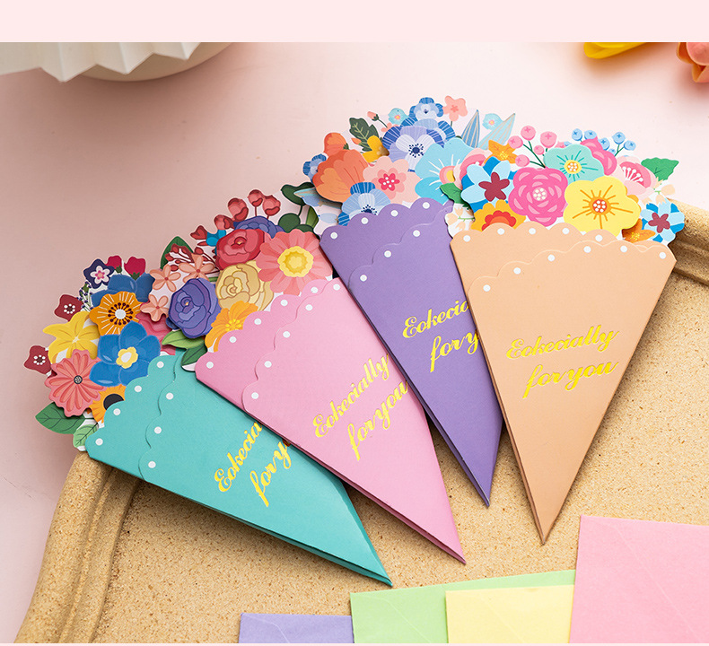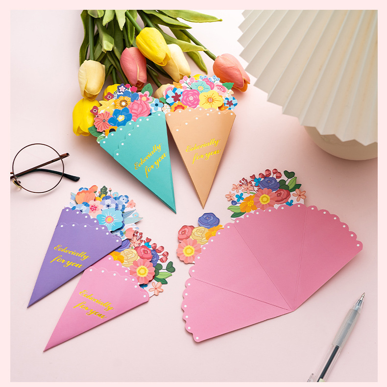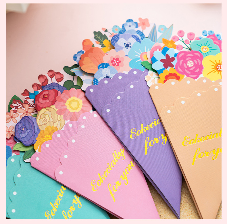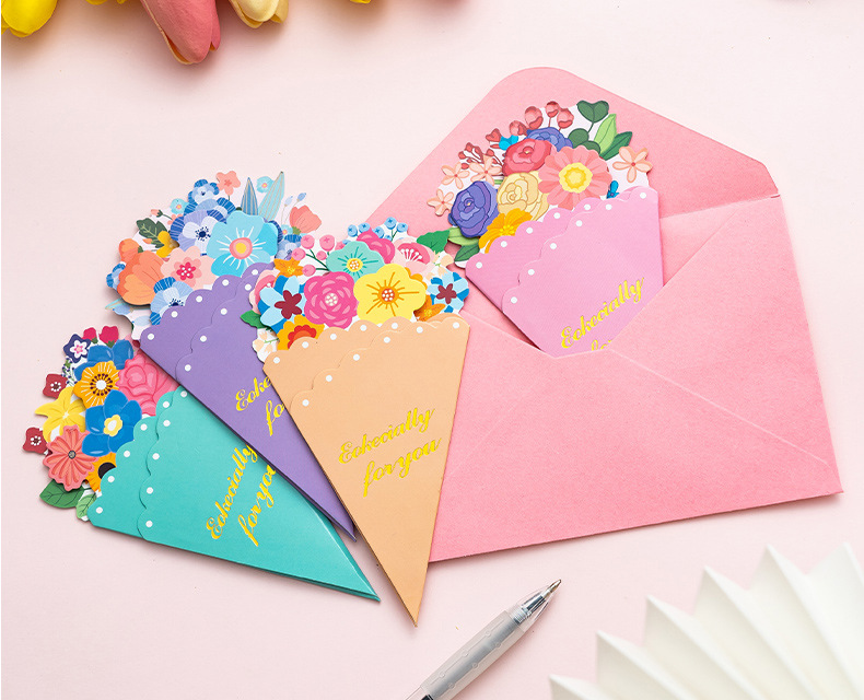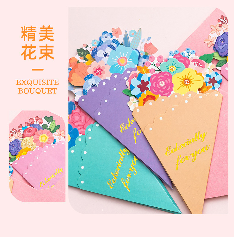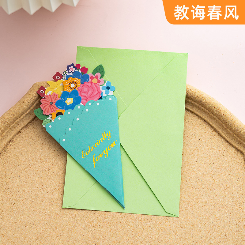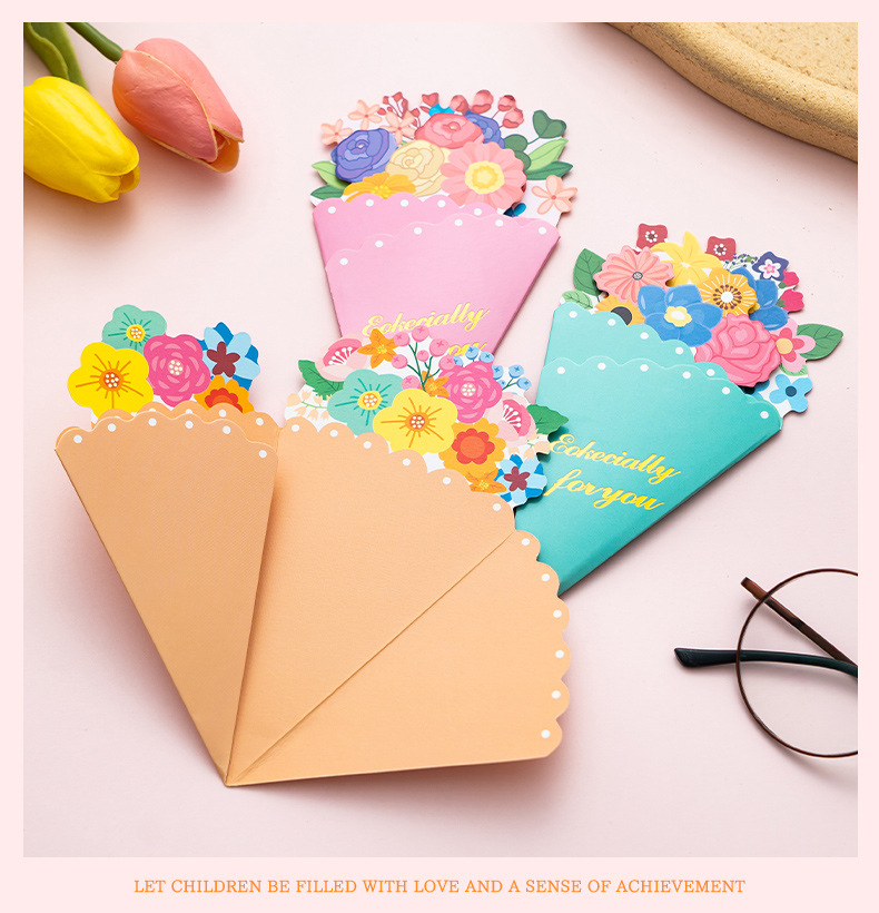 인사말 카드 맞춤형 diy 고급 감각 3 차원 꽃 꽃다발 작은 카드 교사의 날 추수 감사절 축복받은 밍신 카드 종이 봉투 세트