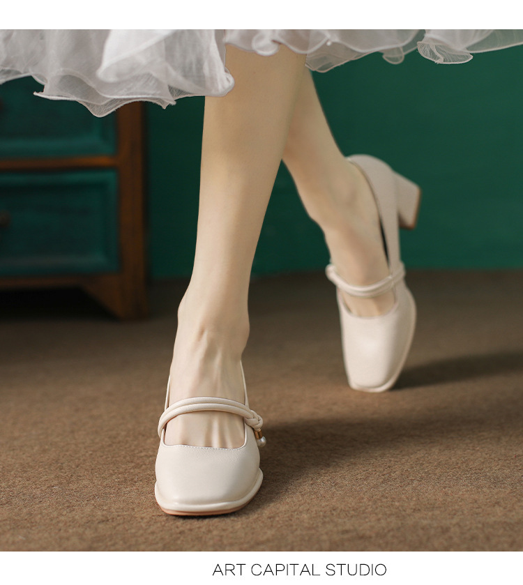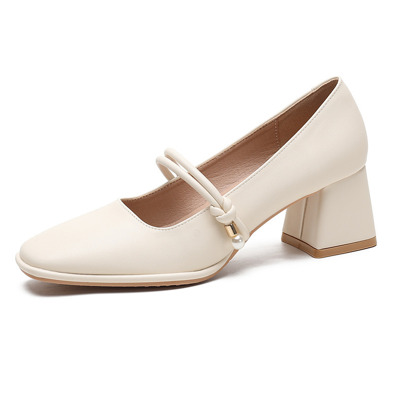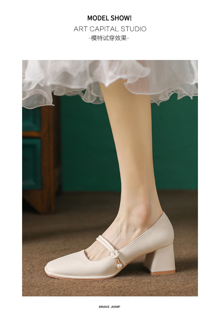 봄 가을 일상 광장 발가락 간단한 가죽 신발 한국 여성 신발 메리 제인 신발 여성 원피스 사무실 청키 힐 착용스토어 가기
