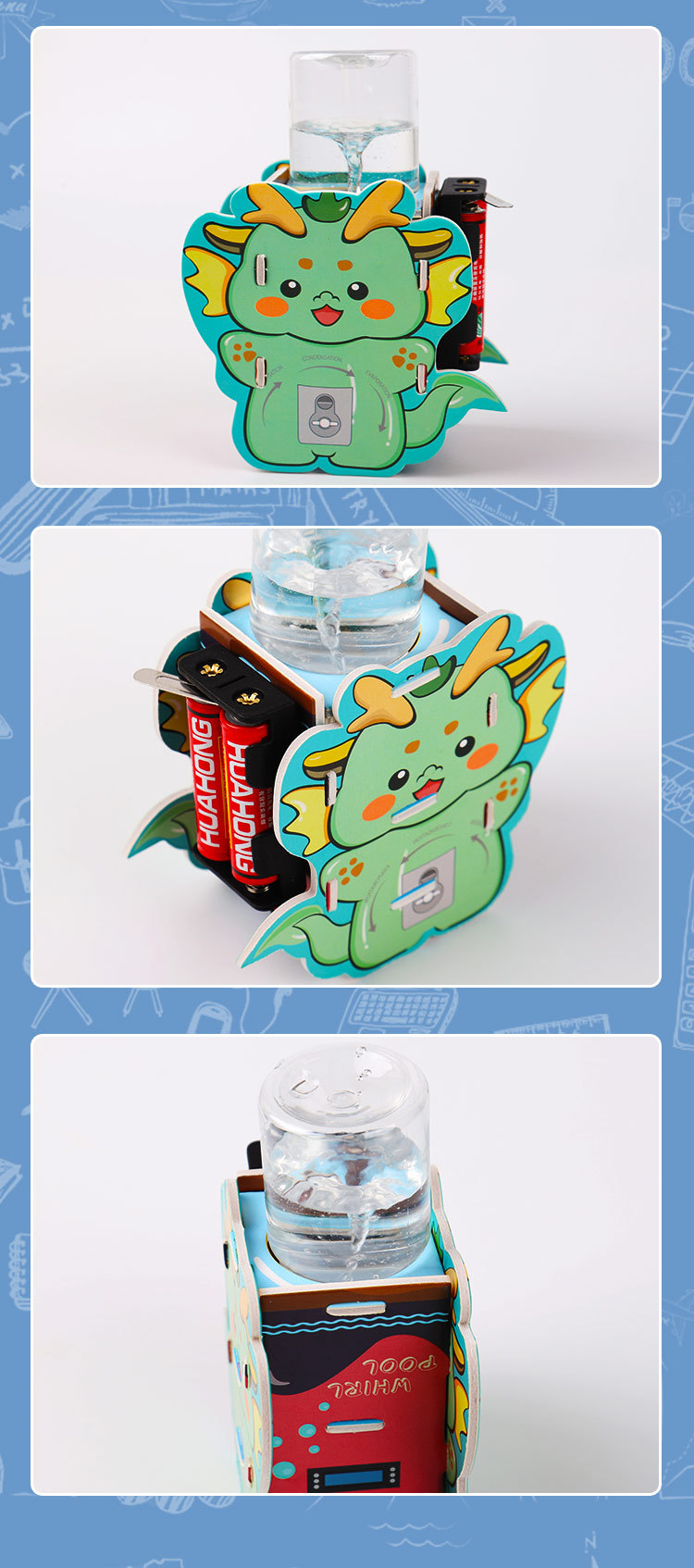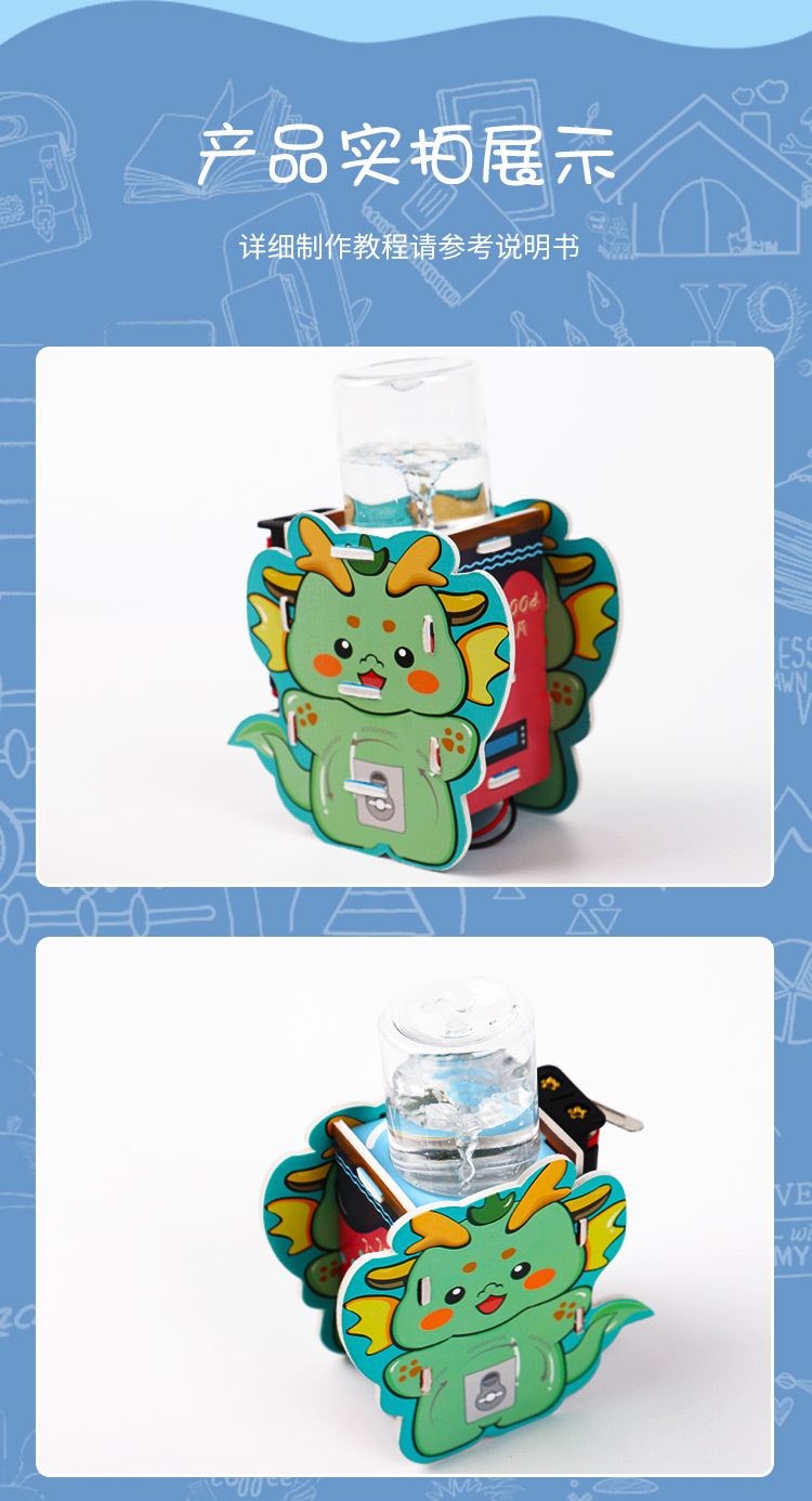 과학 작은 생산 자기 워터 호스 KT 보드 귀여운 작은 용 교육 완구 과학 및 초등 및 중등 학교 학생을위한 교육 재료 팩