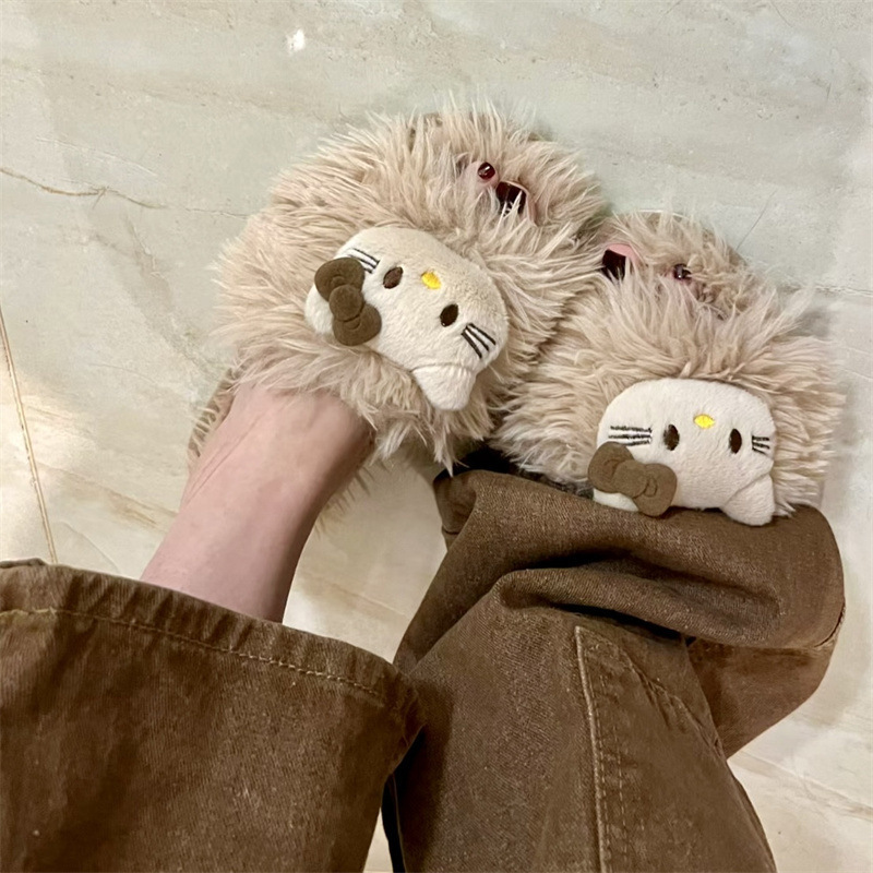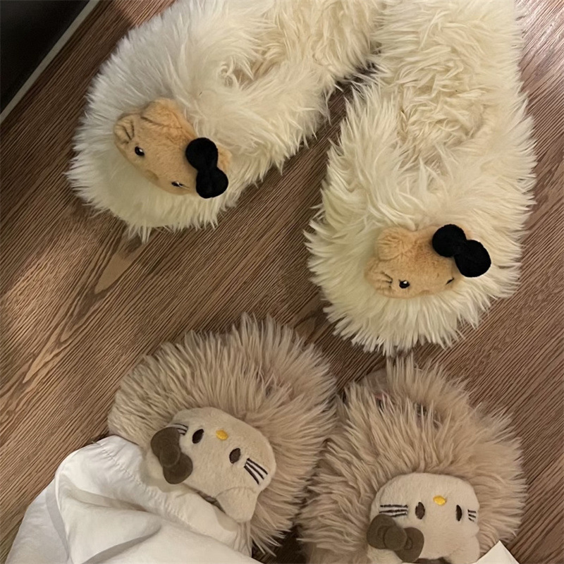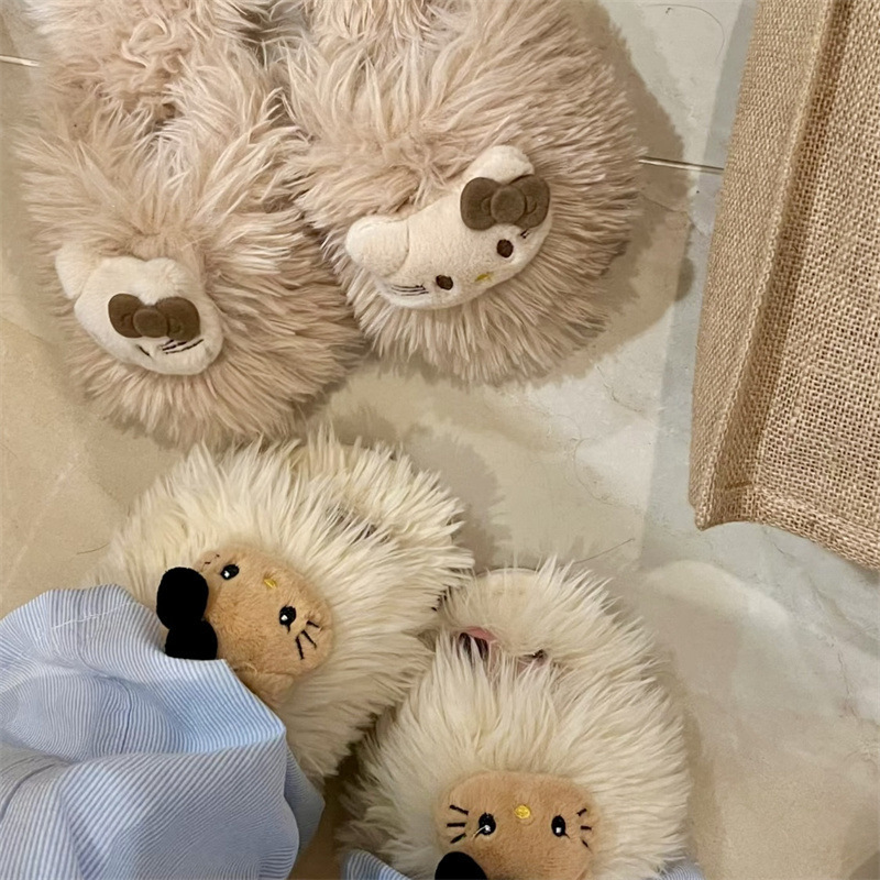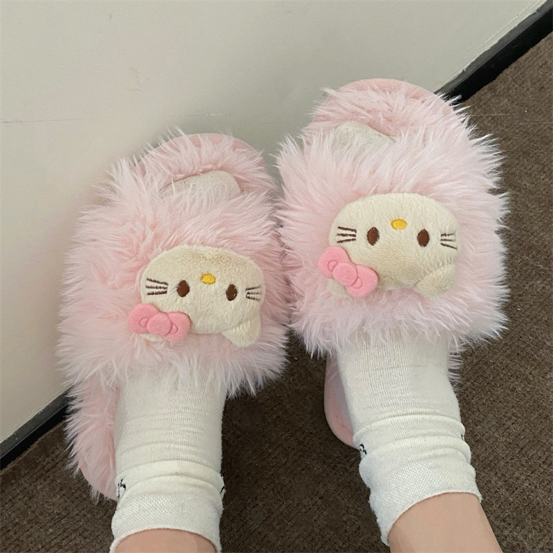 봉제 슬리퍼 튀긴 머리 홈 높은 색 가치 Kt 고양이 소녀 하트 야외 가을 겨울 헬로 키티스토어 가기