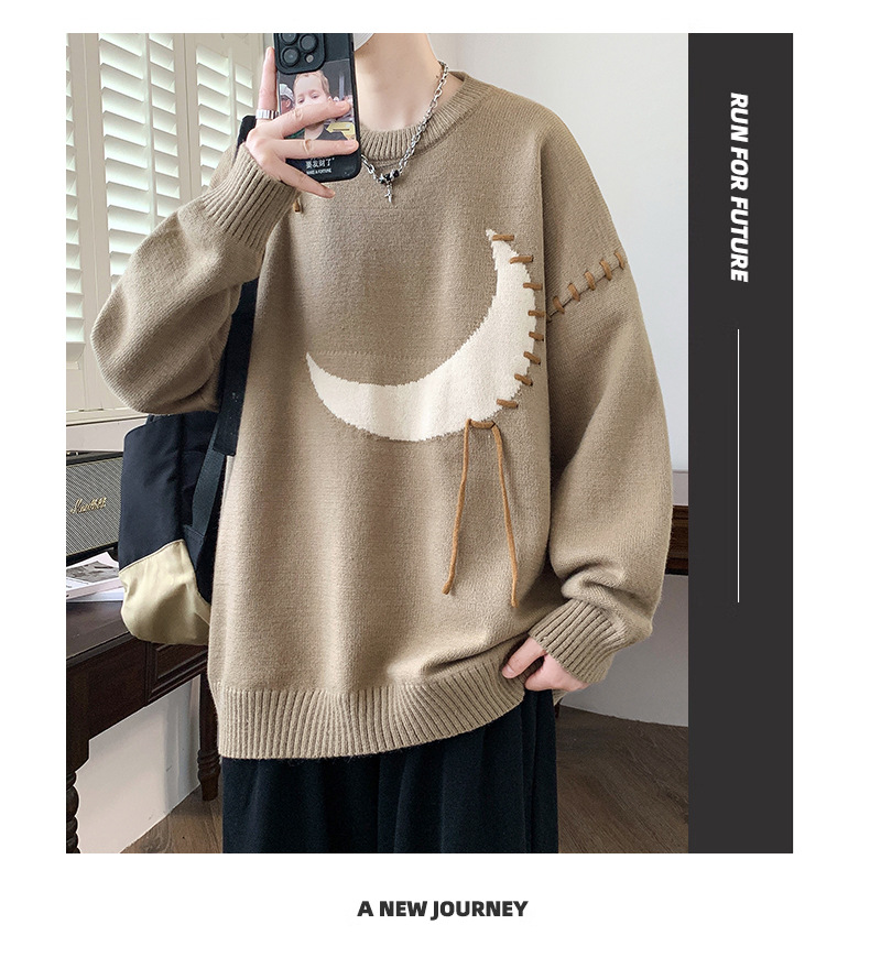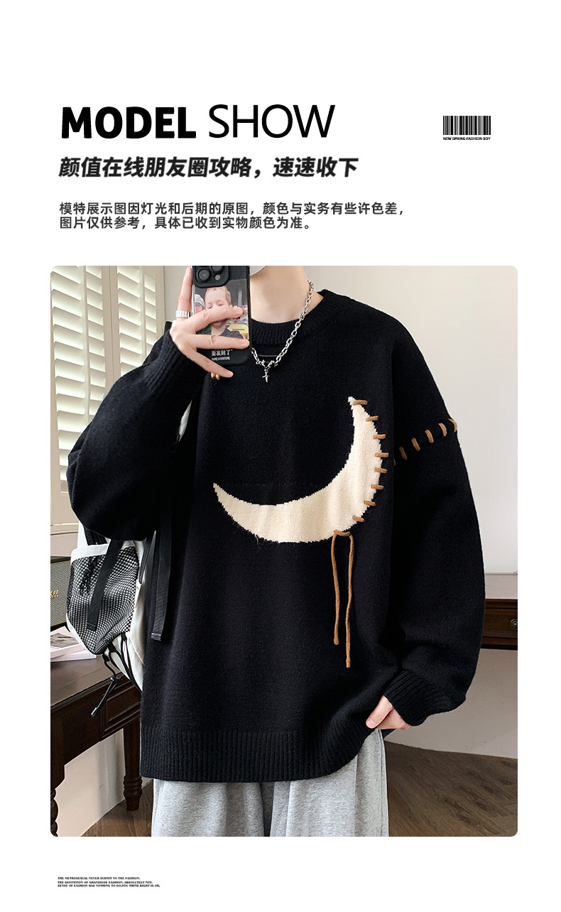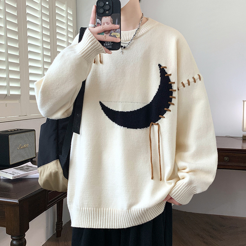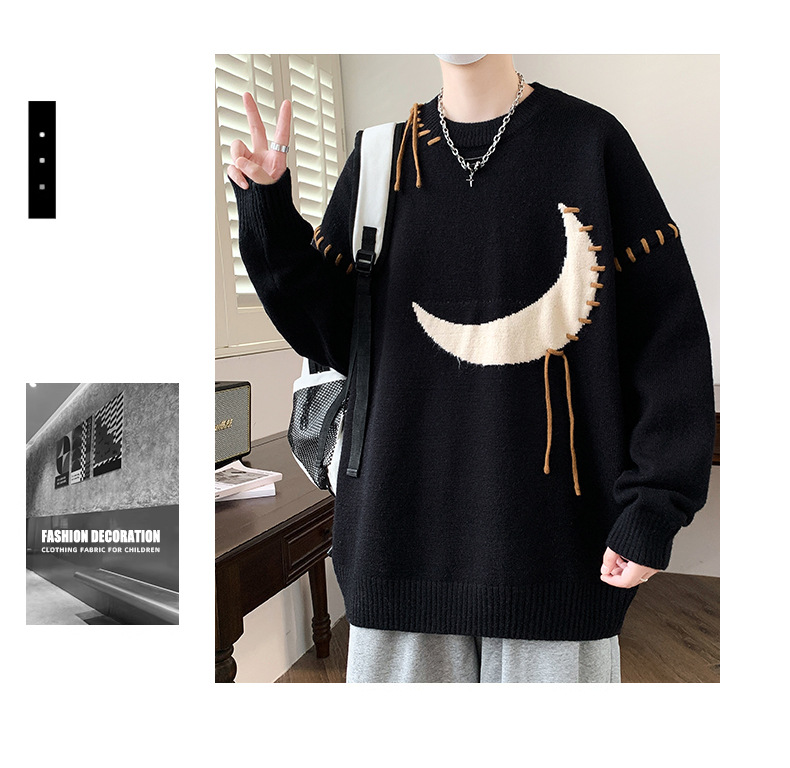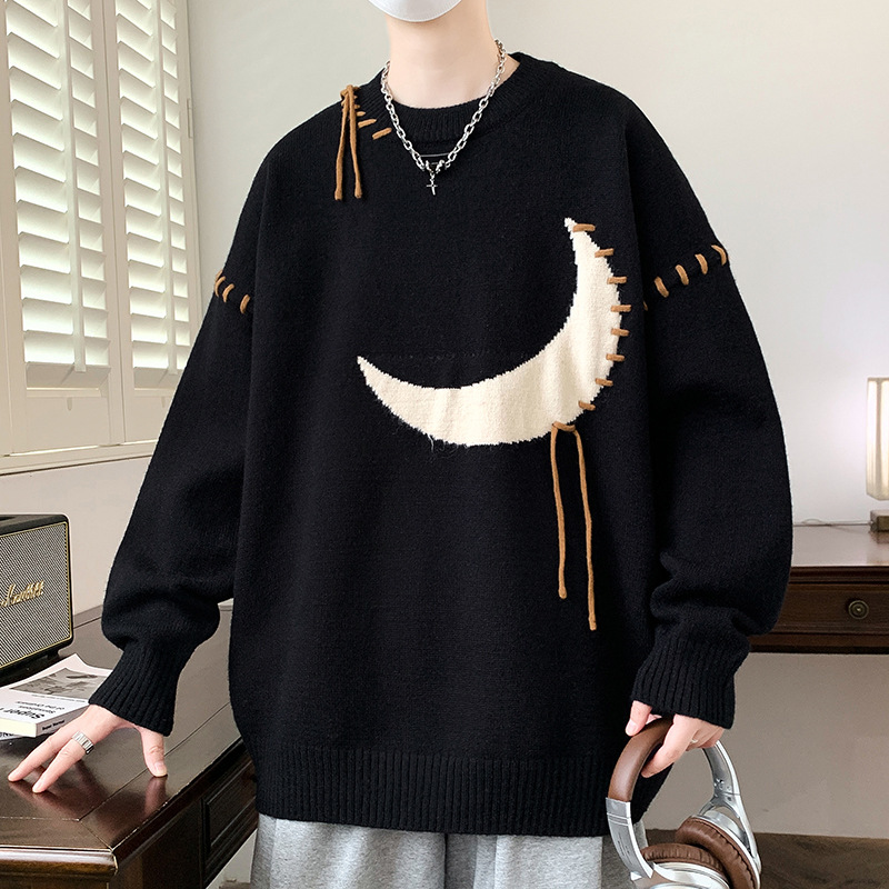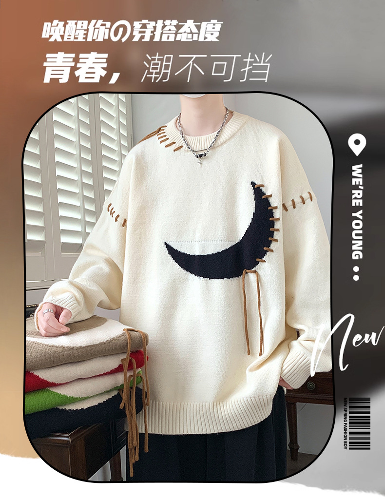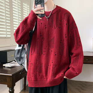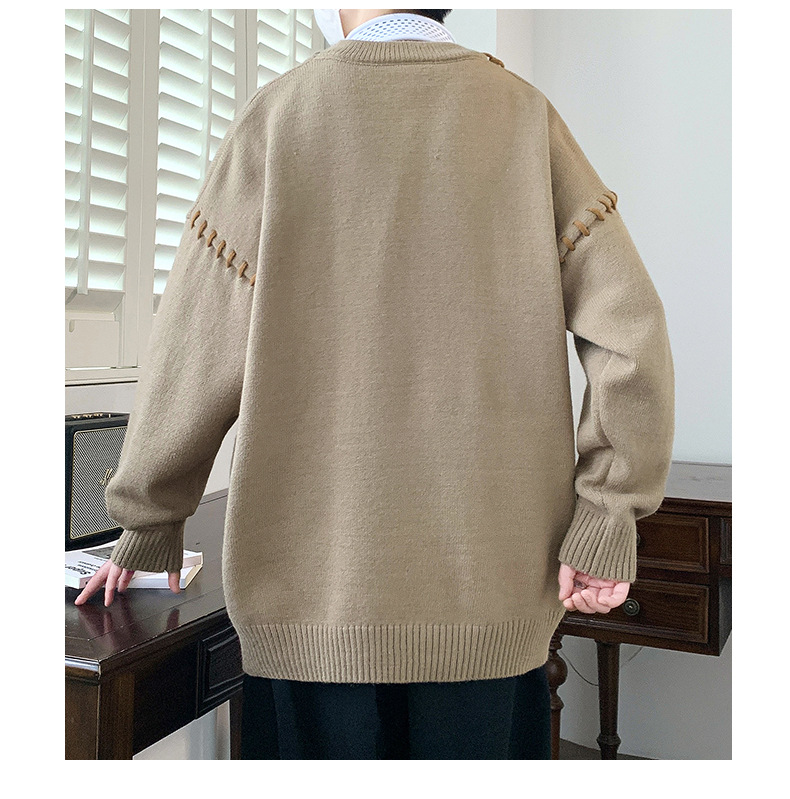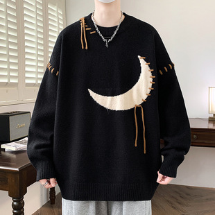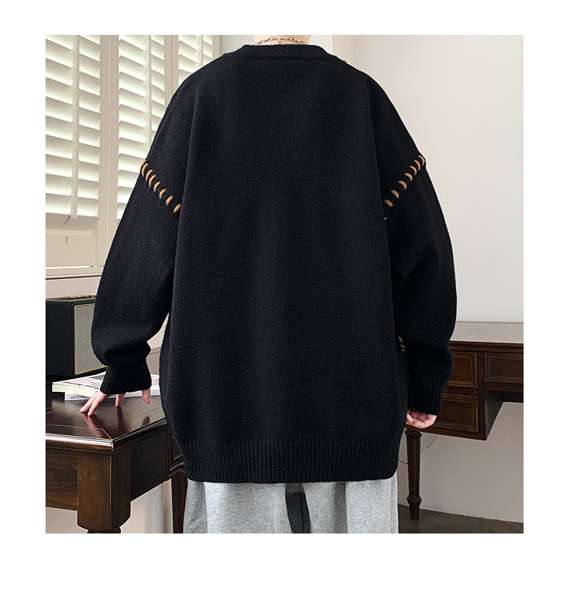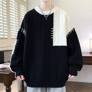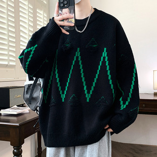 안양 크루 넥 스웨터 남자 가을과 겨울 2024 새로운 바닥 스웨터 조수 브랜드 게으른 바람 느슨한 라인 의류 도매스토어 가기