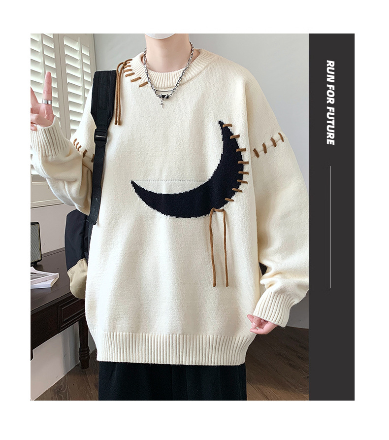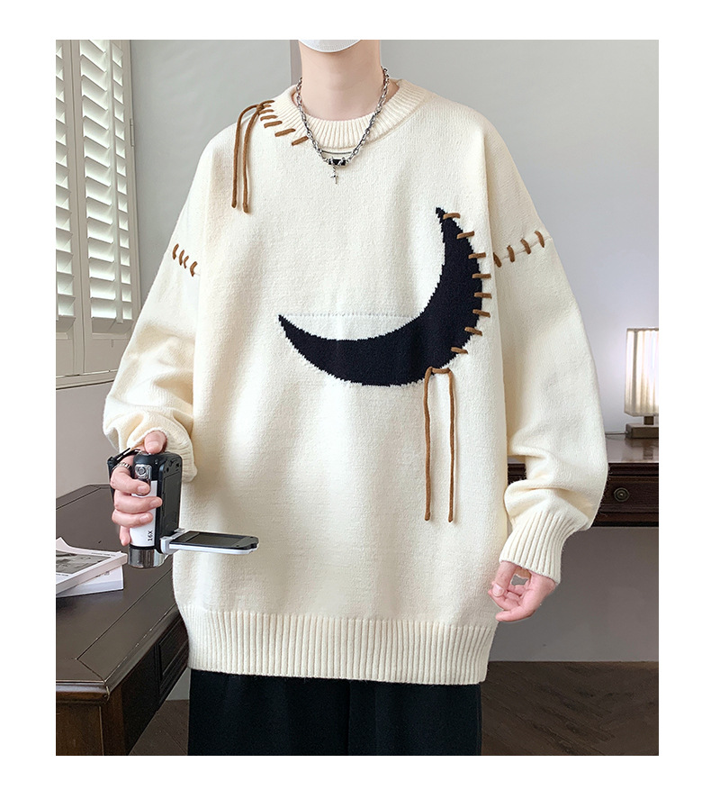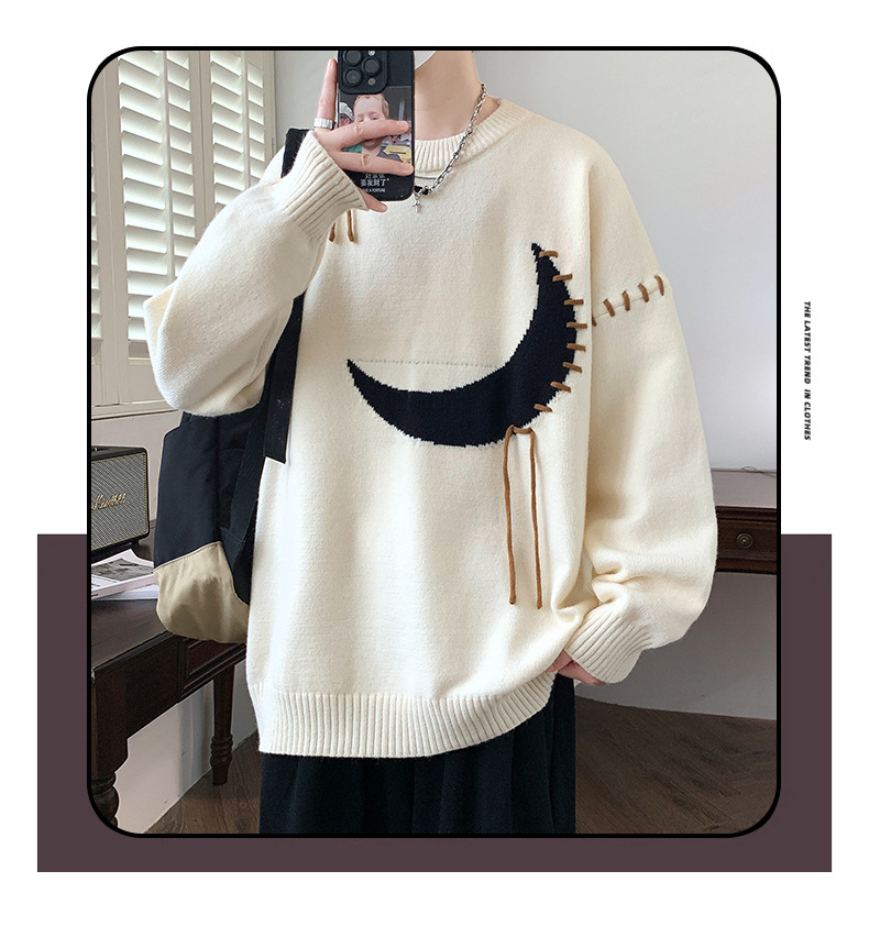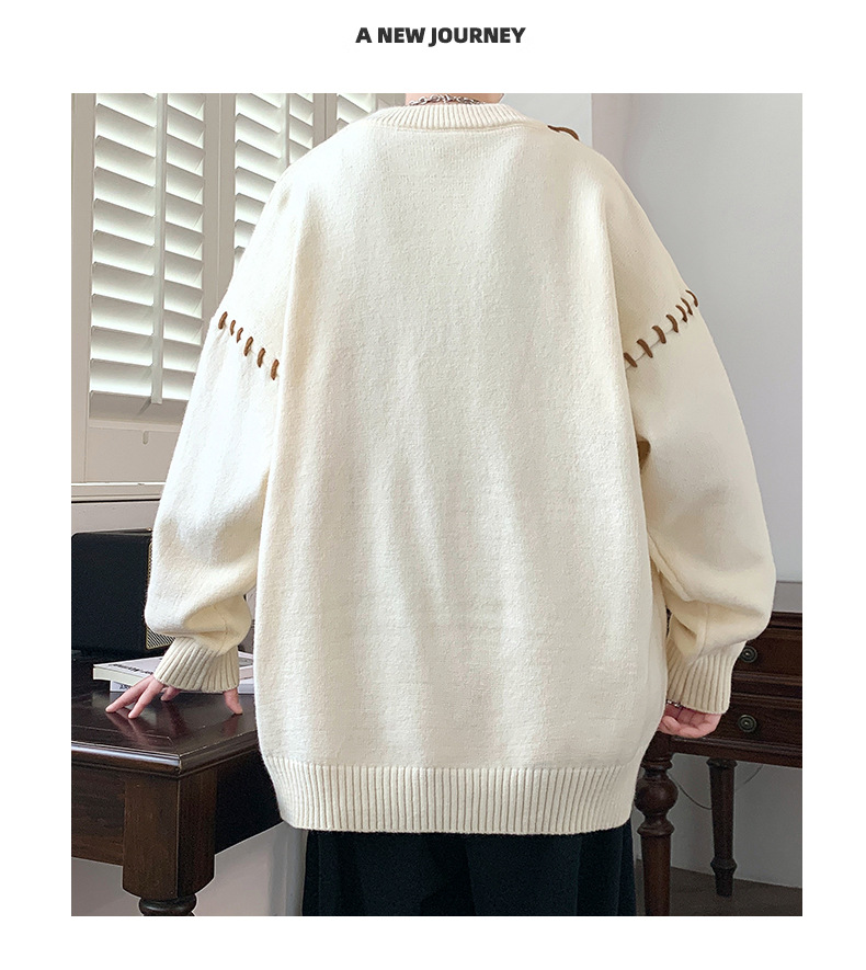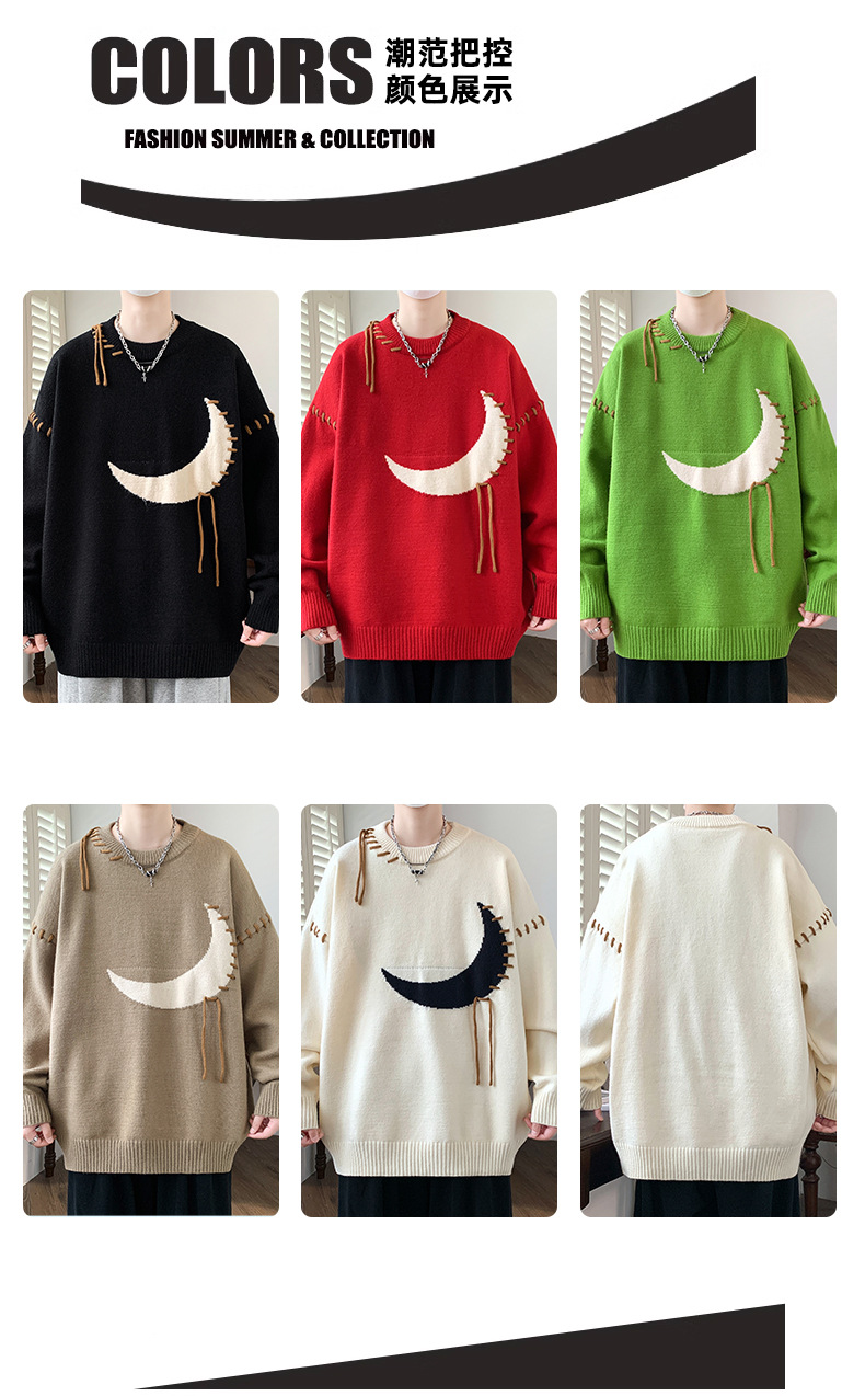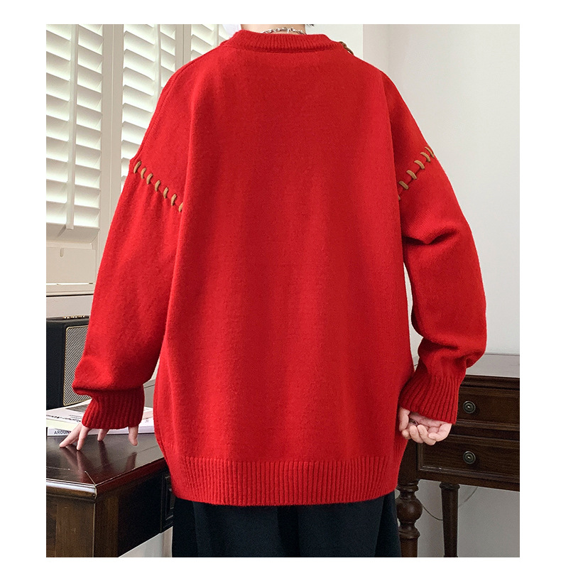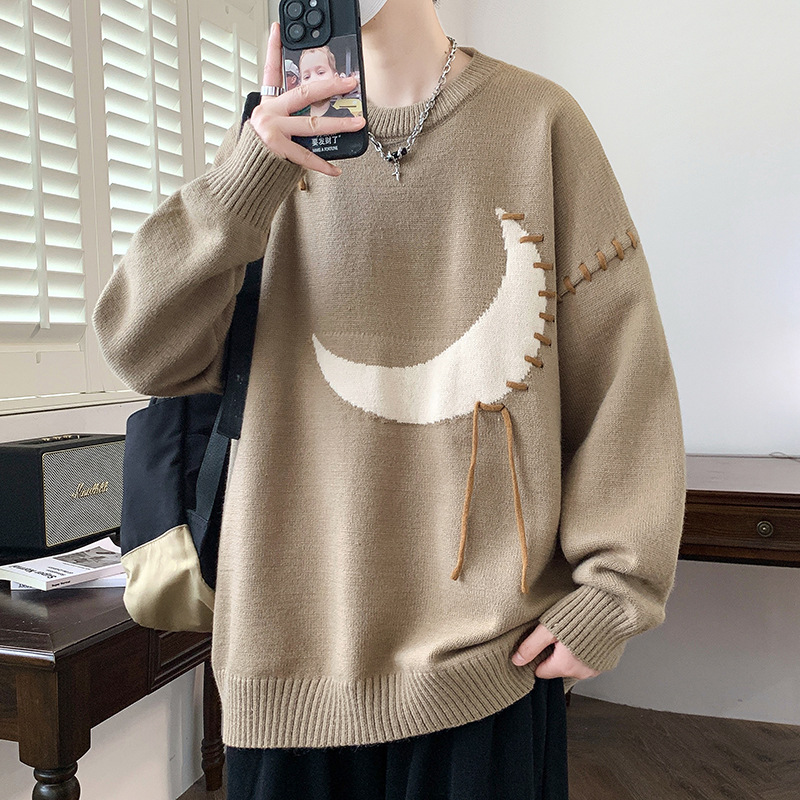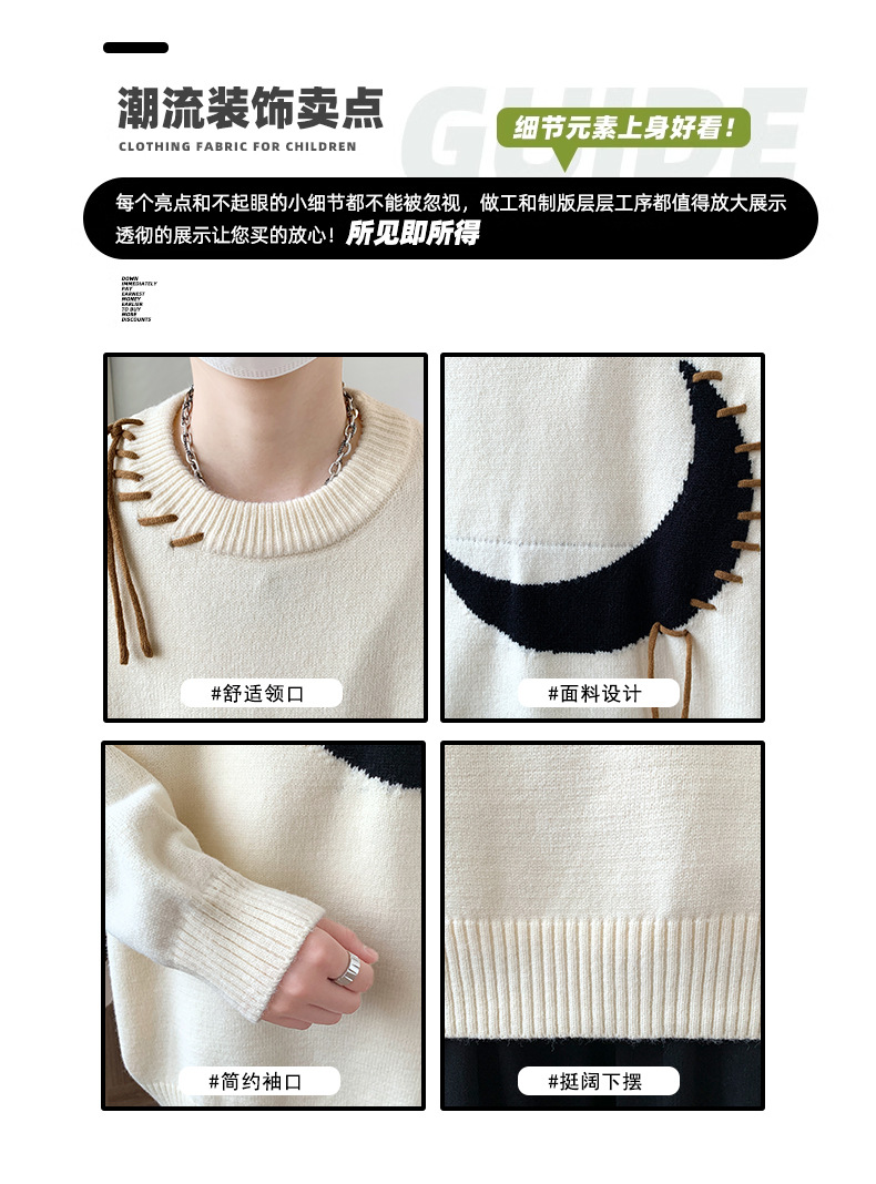 안양 크루 넥 스웨터 남자 가을과 겨울 2024 새로운 바닥 스웨터 조수 브랜드 게으른 바람 느슨한 라인 의류 도매스토어 가기