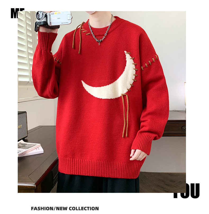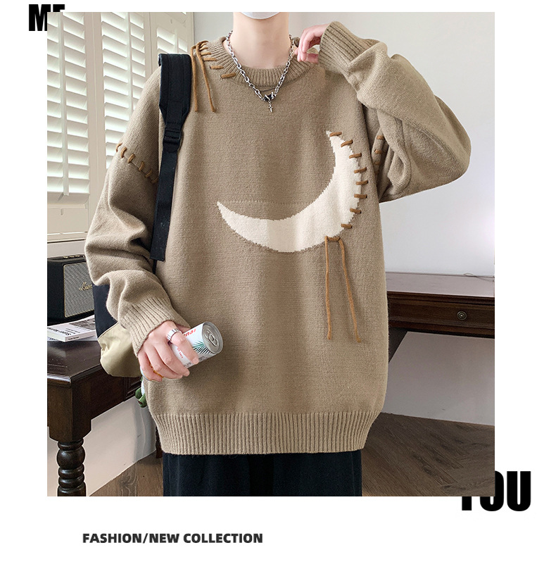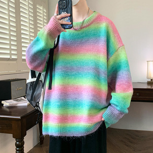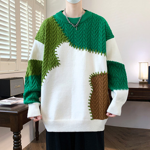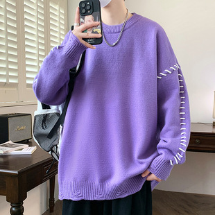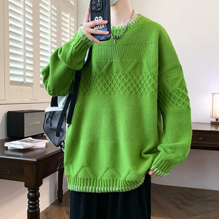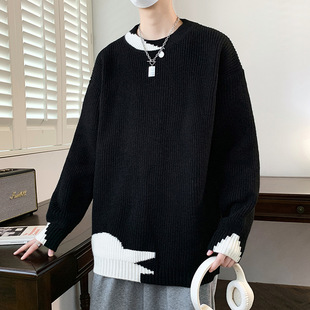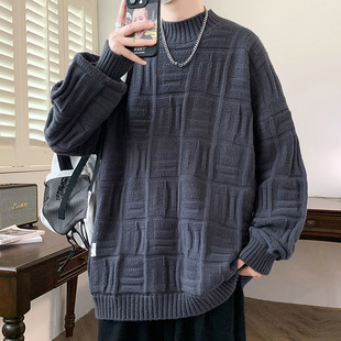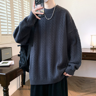 안양 크루 넥 스웨터 남자 가을과 겨울 2024 새로운 바닥 스웨터 조수 브랜드 게으른 바람 느슨한 라인 의류 도매