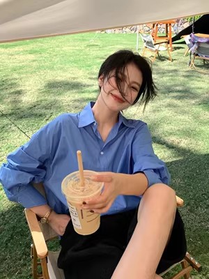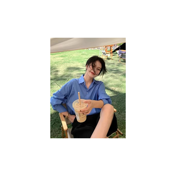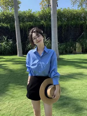 초가을 프렌치 스타일 상의 클라인 블루 셔츠 여성용 2025 신상 가을 코트 고급 셔츠스토어 가기