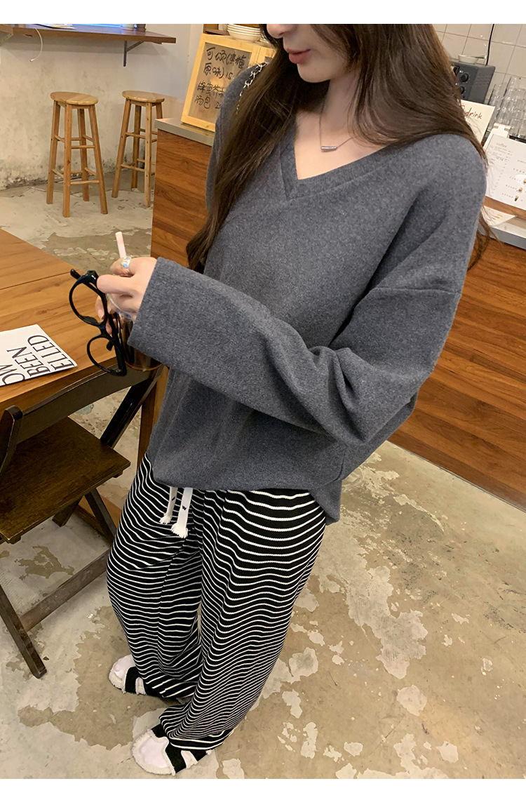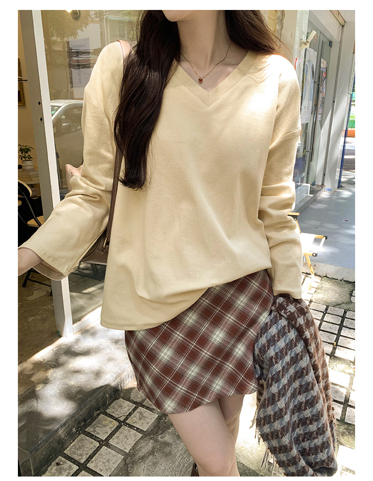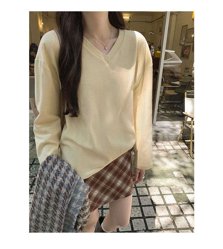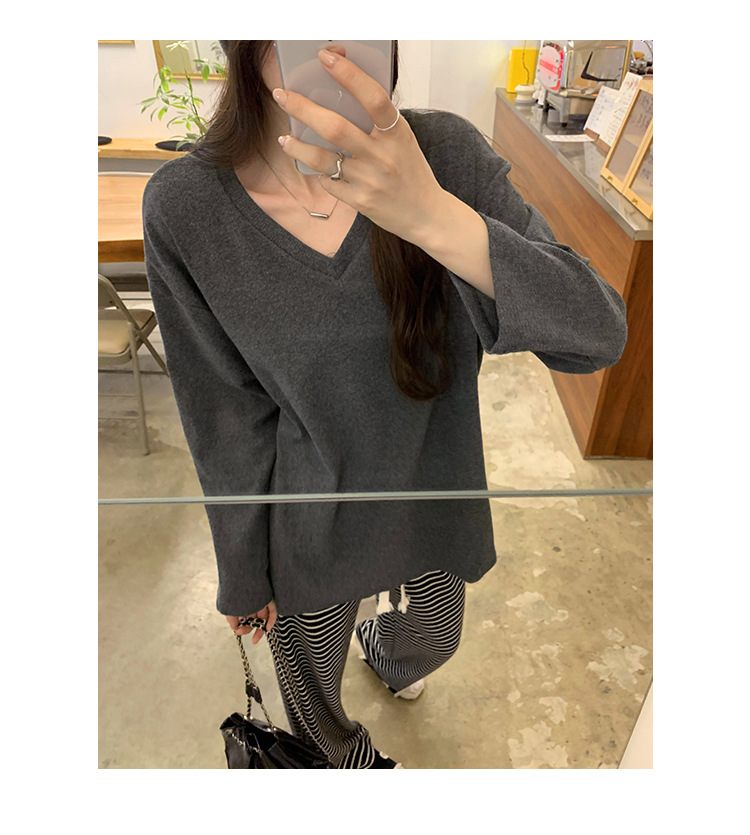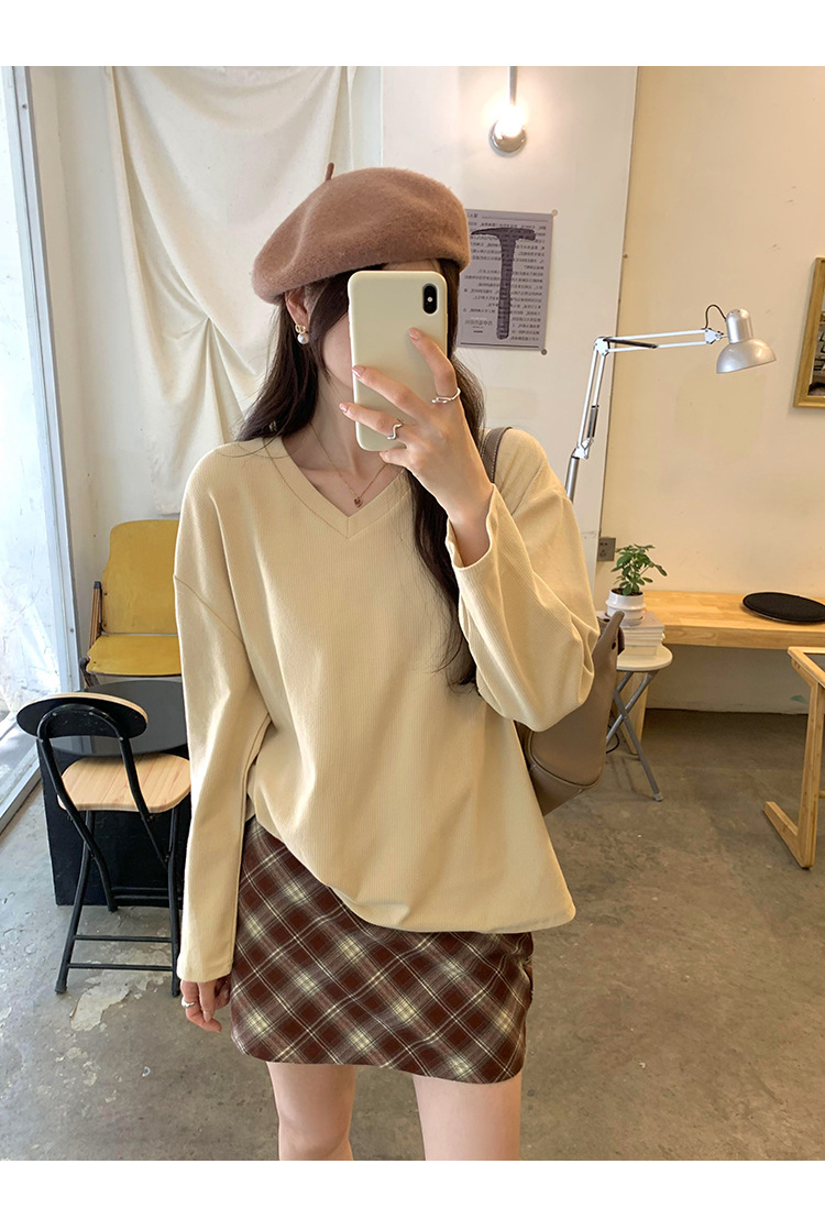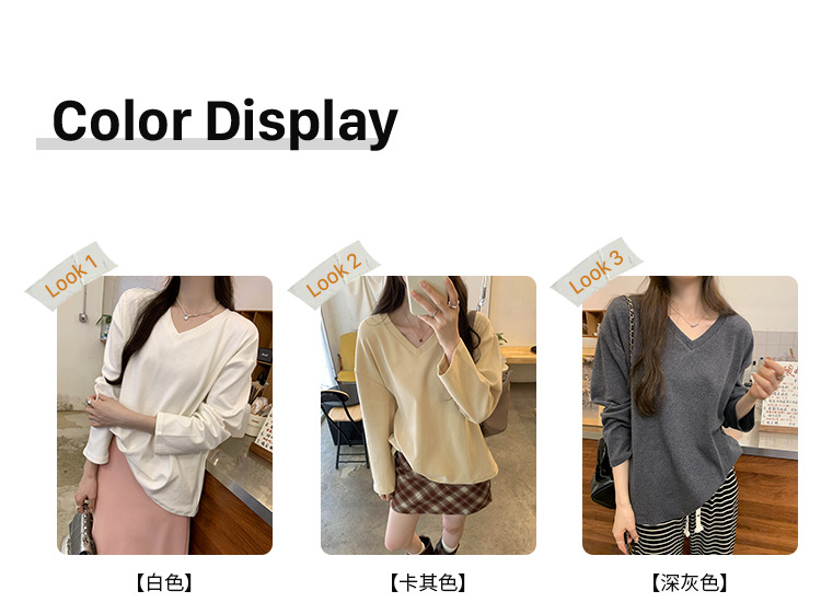 느슨한 게으르고 편안한 느낌 슈퍼 잘 생긴 V 넥 긴팔 티셔츠 여성의 2024 가을과 겨울 새로운 슬림 올 매치베이스 코트스토어 가기