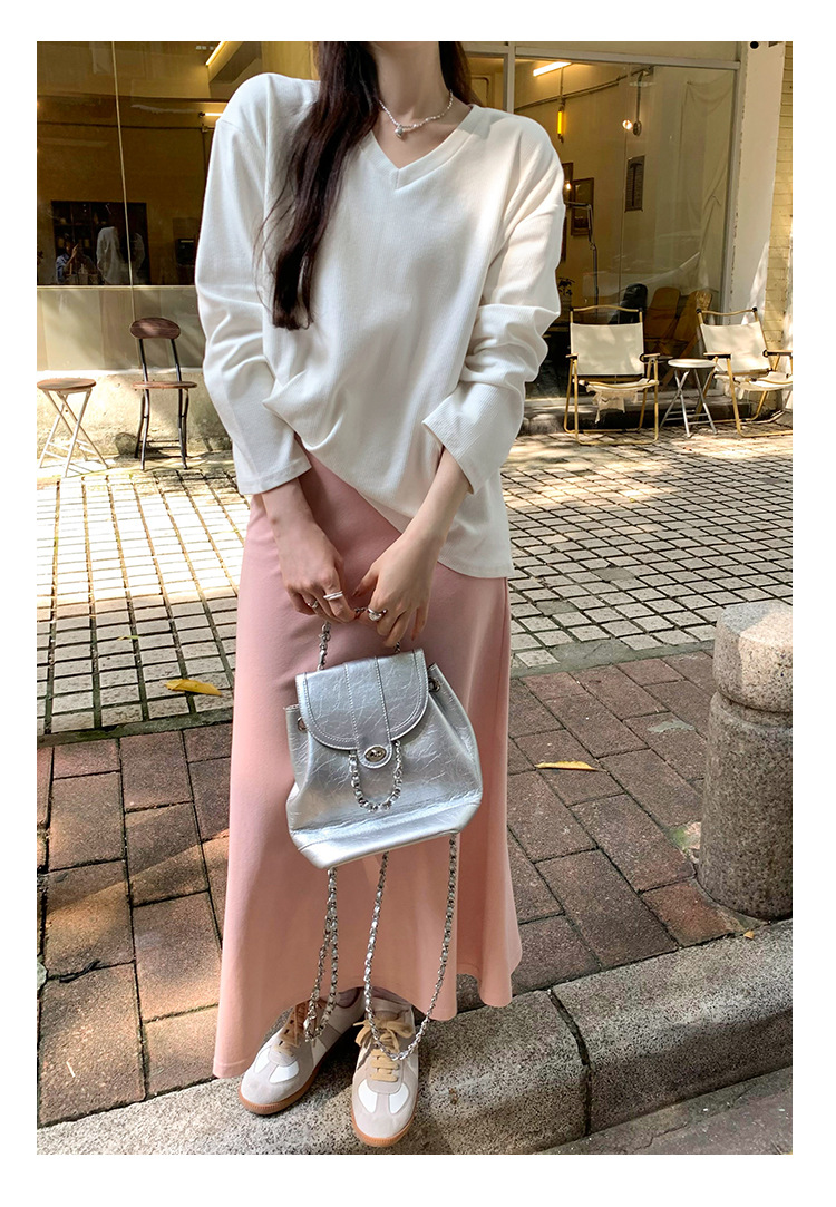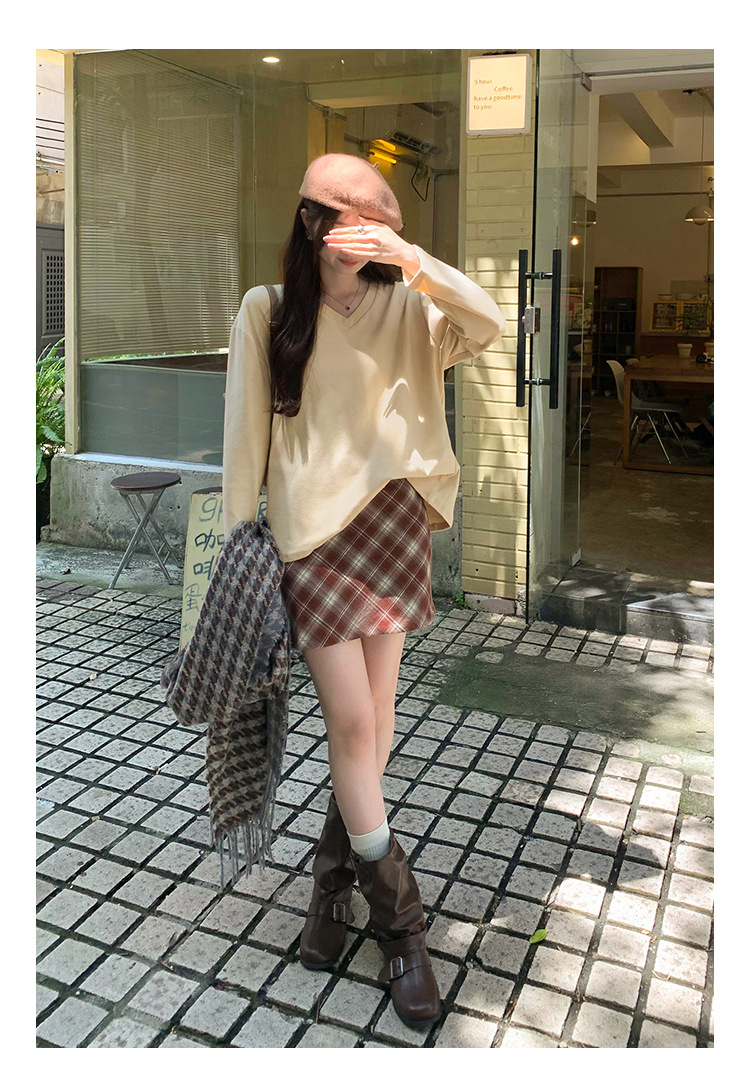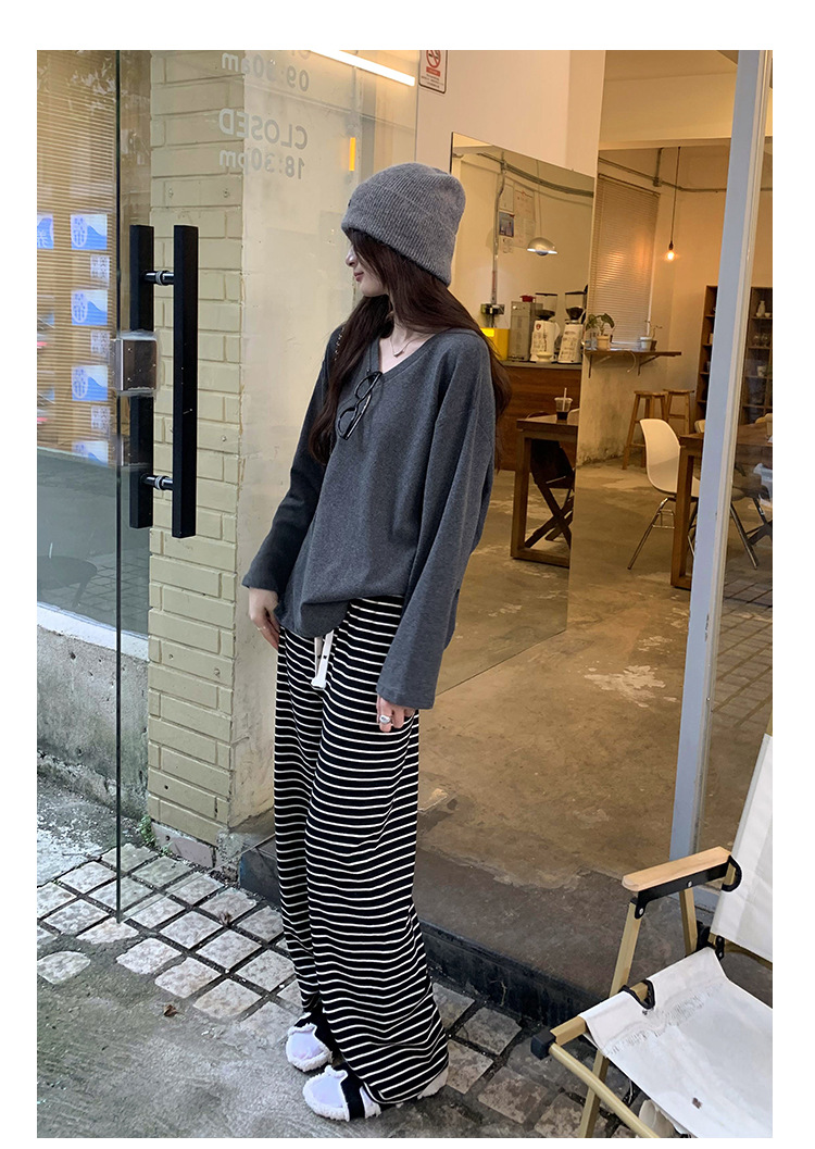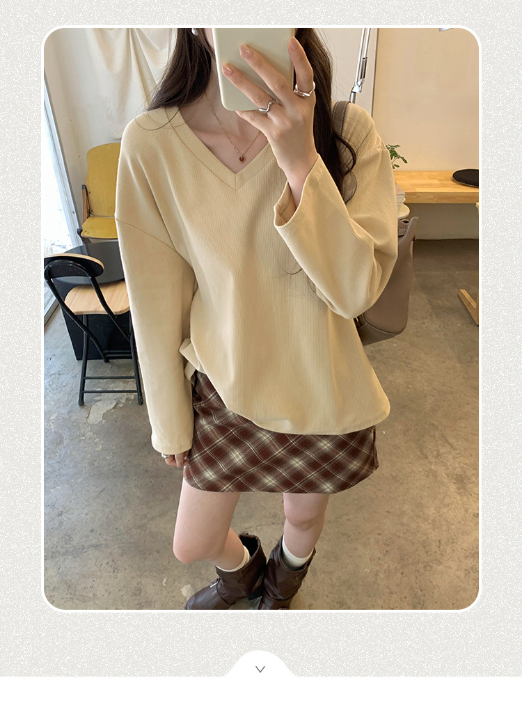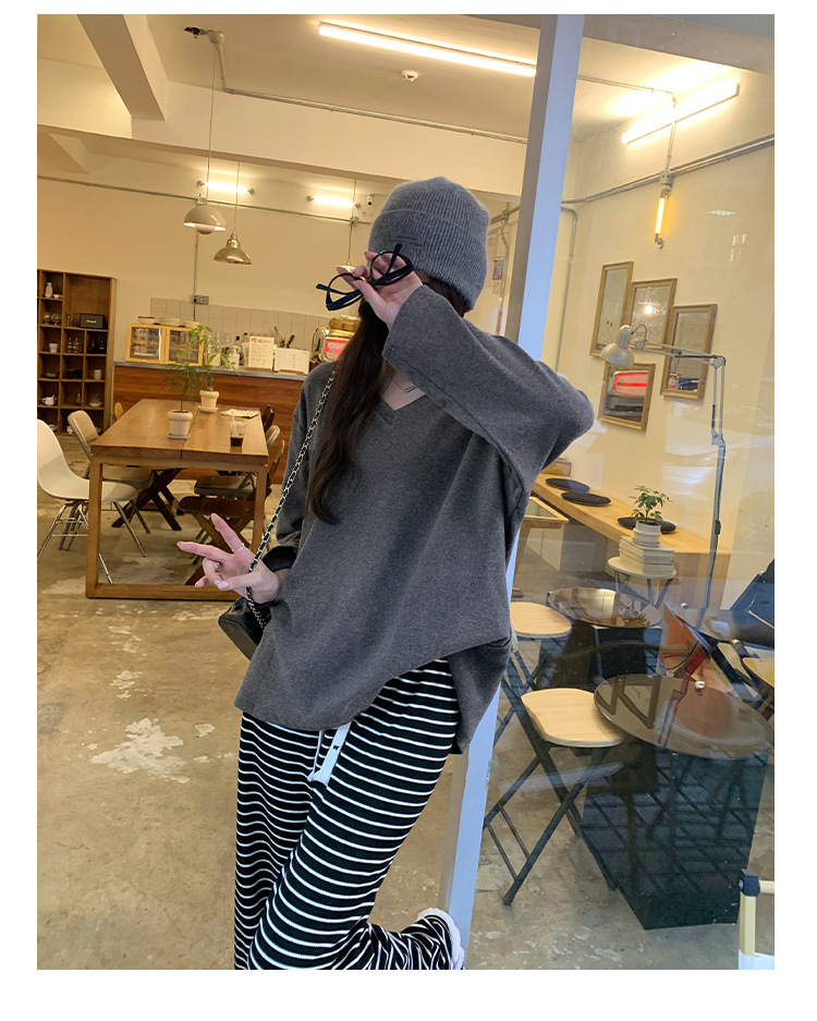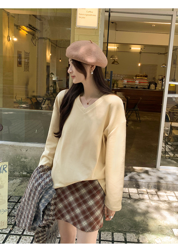 느슨한 게으르고 편안한 느낌 슈퍼 잘 생긴 V 넥 긴팔 티셔츠 여성의 2024 가을과 겨울 새로운 슬림 올 매치베이스 코트스토어 가기