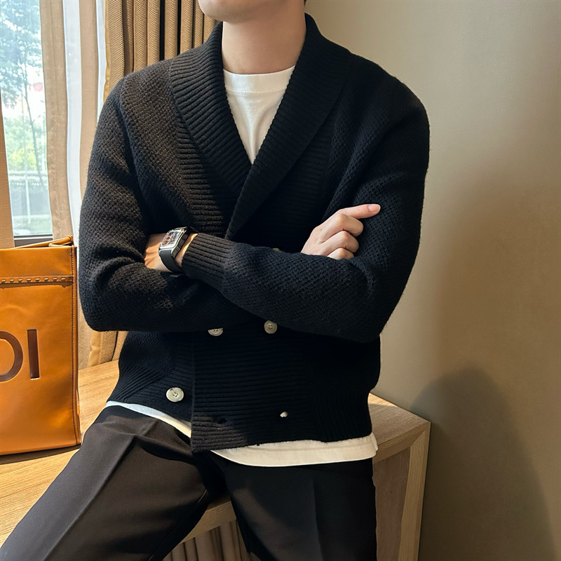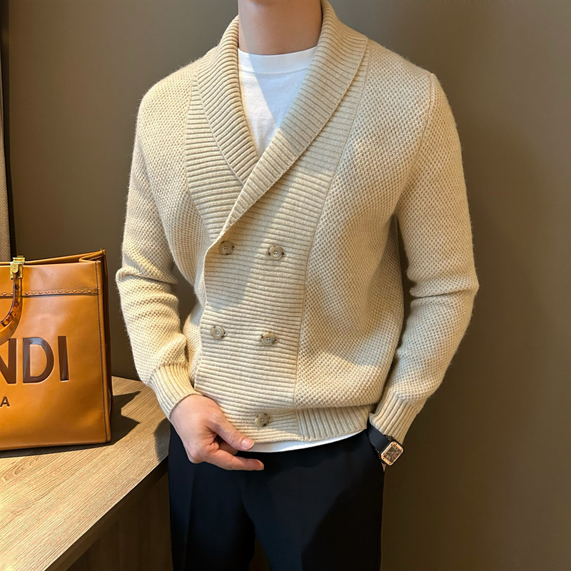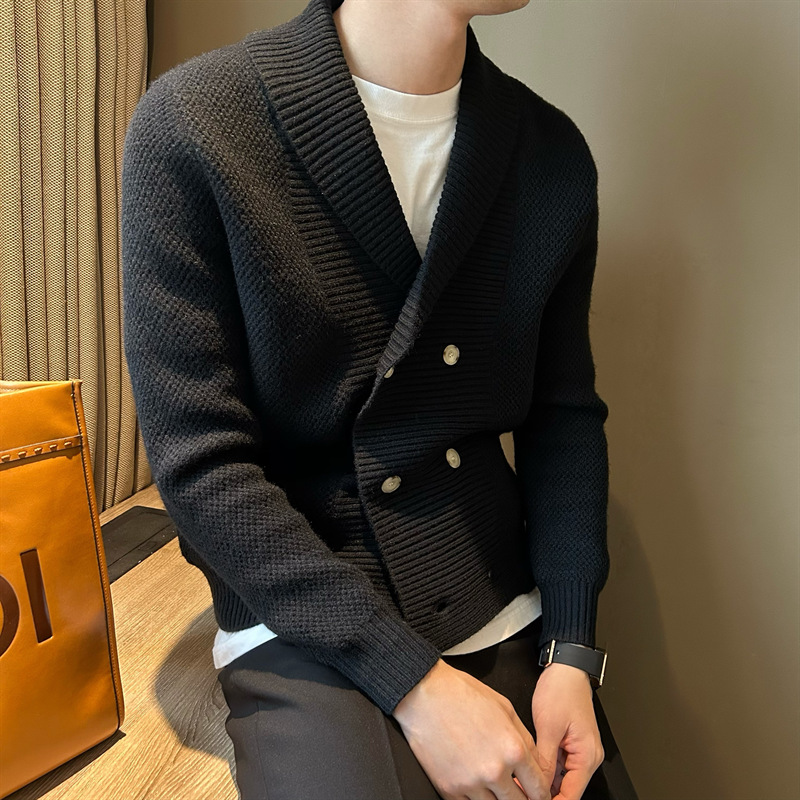 무거운 비즈니스 남성용 그늘 칼라 더블 브레스트 디자인 니트 재킷 스웨터 따뜻한 가을과 겨울 빈티지 캐주얼