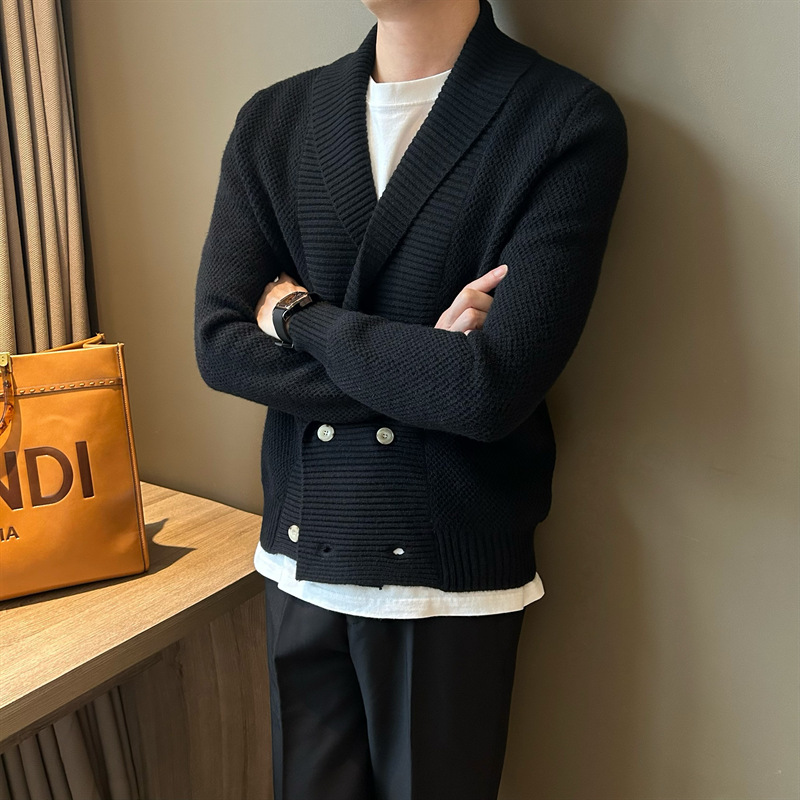 무거운 비즈니스 남성용 그늘 칼라 더블 브레스트 디자인 니트 재킷 스웨터 따뜻한 가을과 겨울 빈티지 캐주얼스토어 가기