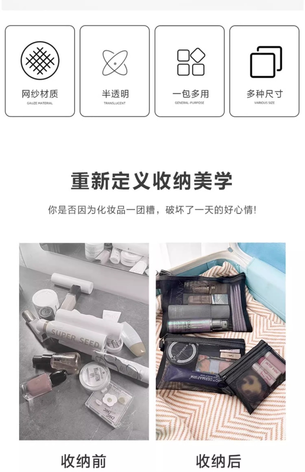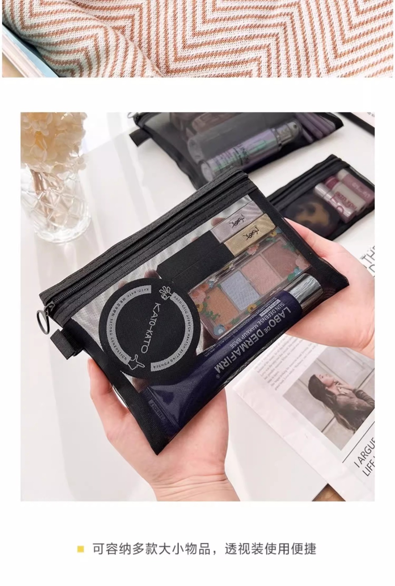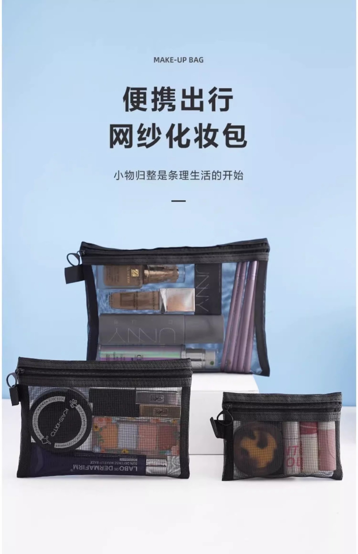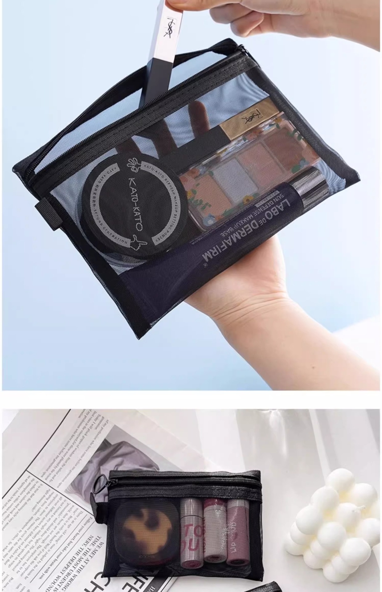 하이 얀 휴대용 화장품 가방 저장 여행 틈새 절묘한 세척 가방 일본 립스틱 투명 저장 가방 메쉬 가방